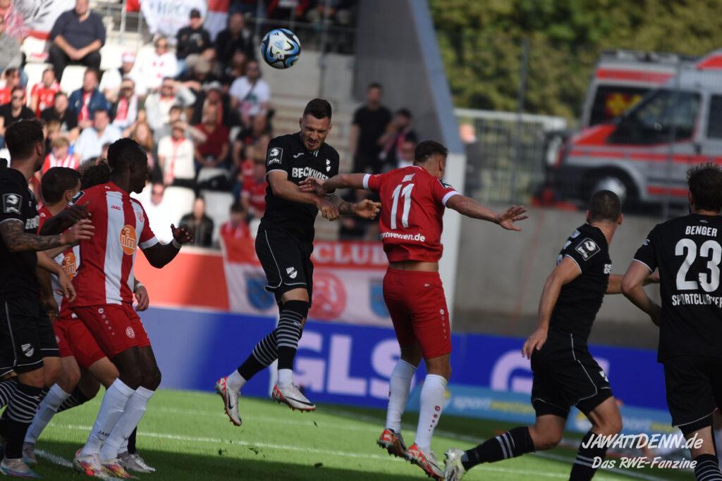 Dass spielerisch spätestens nach dem 0:3 alles schief ging, ist angesichts der negativen Eigendynamik des Spiels erklärlich. Wieso RWE jedoch in 90 Minuten keine einzige gelbe Karte sah und sich in Halbzeit 2 nicht wenigstens mit der gebotenen Zweikampfführung gegen die Klatsche zur Wehr setzte, sollte die zentrale Frage an alle Beteiligten sein. Insbesondere Gegentreffer Nummer 5 darf vielleicht sonntags in der Kreisliga, nicht aber im bezahlten Fußball fallen. Dabei geht es nicht darum, wie Björn Rother mit seinem zurecht mit Rot geahndeten Frustfoul kurz vor Schluss den Gegner kaputtzutreten, sondern eine energische Zweikampfführung an den Tag zu legen, wie es die Verler in Halbzeit 1 erfolgreich vormachten.