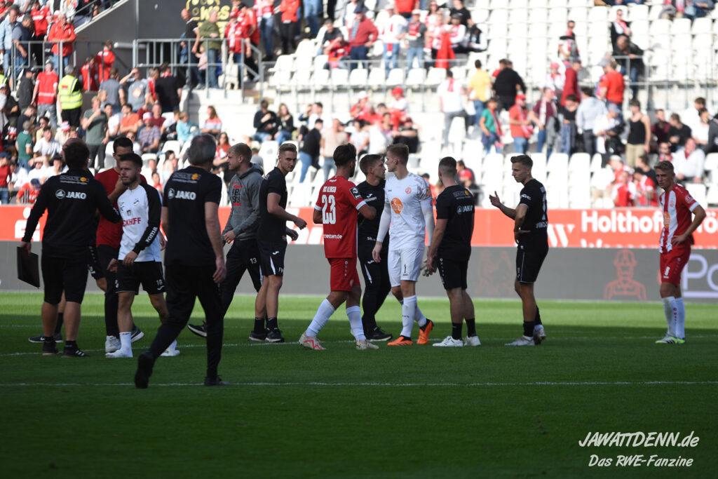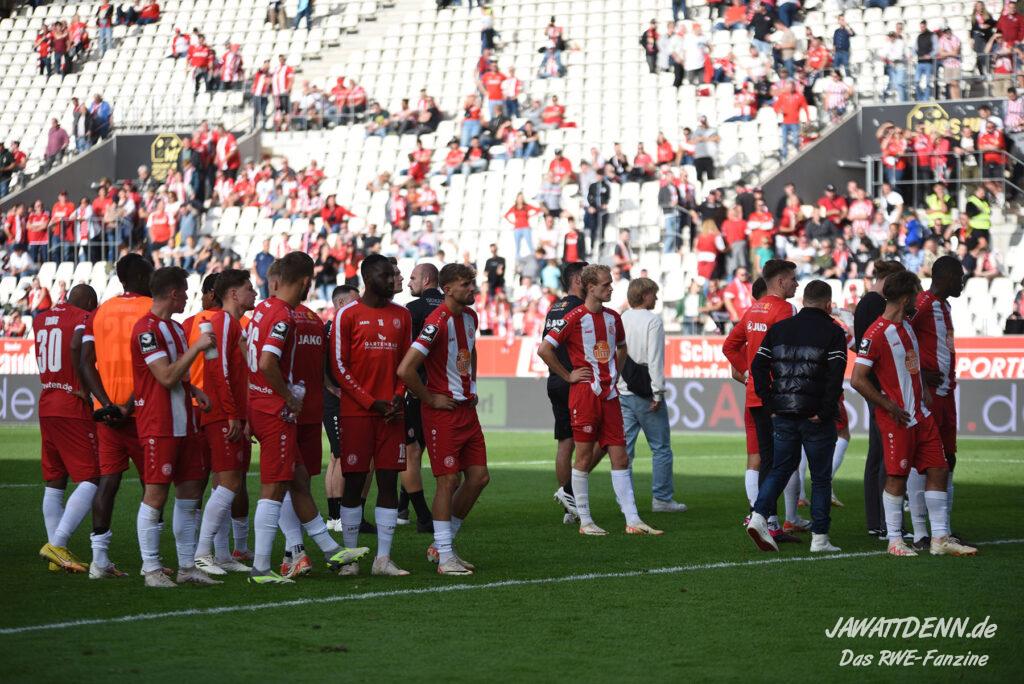 Der verwandelte Handelfmeter zum 0:2 durch Oliver Batista Meier löste eine Schockstarre auf dem Platz und anschließend auf den Rängen aus, RWE ließ sich in der Folge ohne nennenswerte Gegenwehr abschießen und übertraf das 0:4 in Unterhaching in negativer Sicht noch um einen weiteren Gegentreffer. 0:9 Tore in 2 Spielen innerhalb von nur vier Tagen werfen viele Fragen auf.