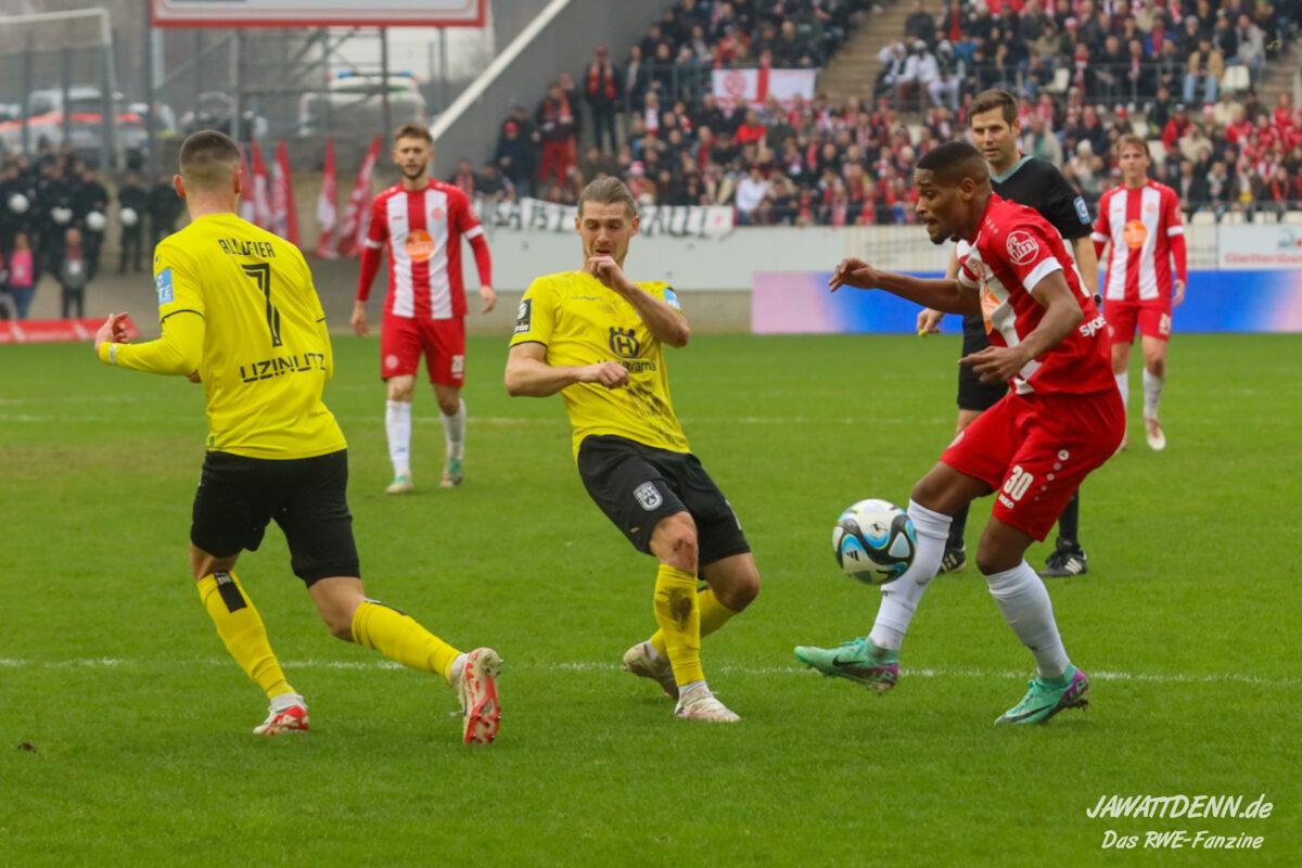 Ebenso wie RWE kann man im Grunde unbeschwert aufspielen, denn das eigentliche Ligaziel Klassenerhalt ist schon 3 Monate vor Ende der Spielzeit sichergestellt und könnte nur durch einen Ligaabgang in die andere Richtung „gefährdet“ werden. Christoph Dabrowski erwartet jedenfalls einen variablen Gegner, der sowohl starke Pressingsituationen kreieren als auch in gefährliches Umschaltspiel kommen wird. RWE wird hier genauso konzentriert aufbauen und gegenpressen müssen, wie es in der Partie in der Oberpfalz vor Wochenfrist zu sehen gewesen ist.