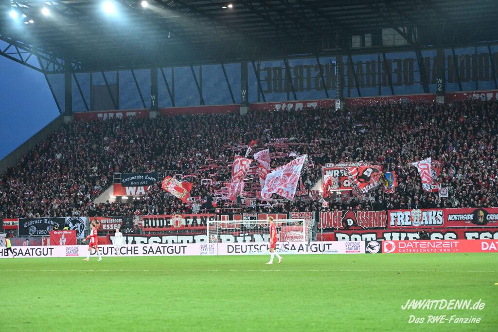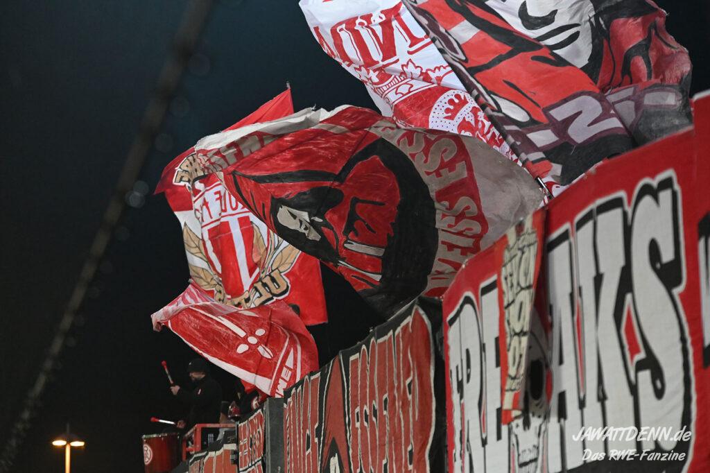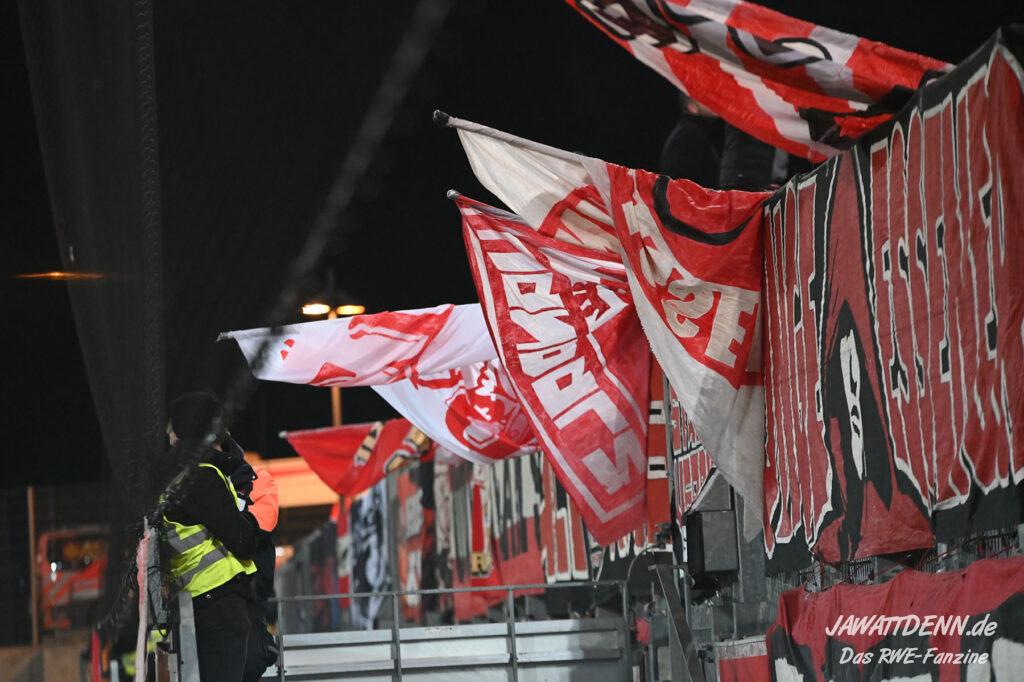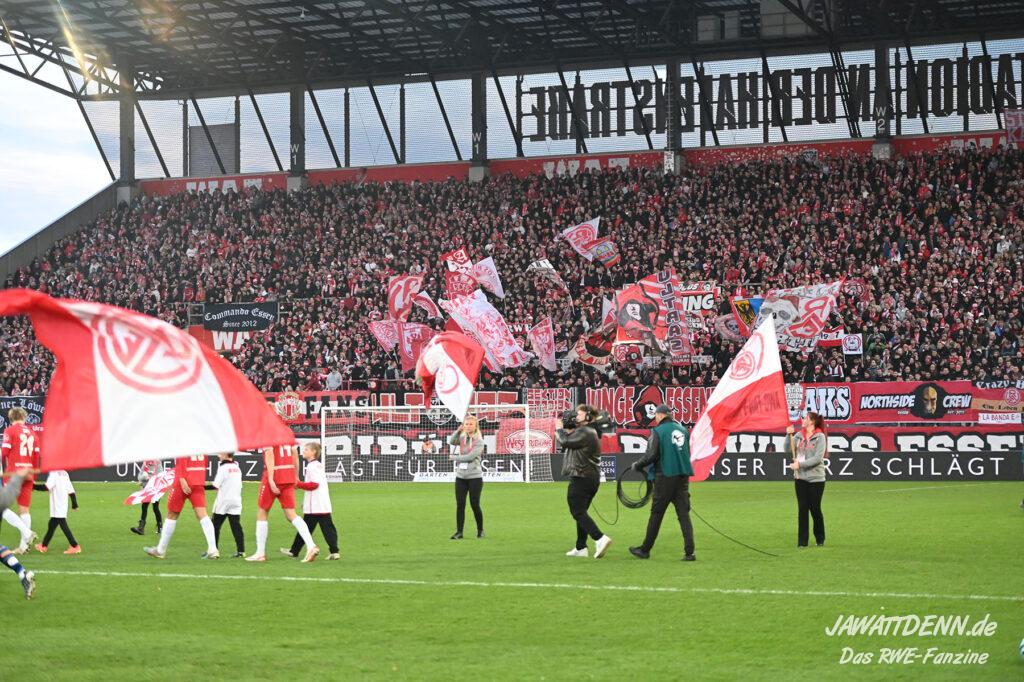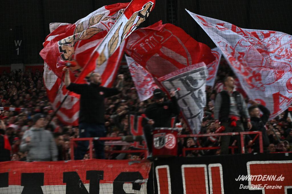 Es ist eher ein Aufregerchen angesichts eines ordentlichen Auftritts und des tadellos funktionierenden Drumherums. Allerdings war es schade, dass das Gedenken an den kürzlich verstorbenen Ex-RWE-Spieler und Trainer Diethelm Ferner in die Halbzeit gequetscht wurde. Während viele Menschen auf dem Weg in den Stadionumlauf waren oder die erste Halbzeit analysierten, ging die Würdigung völlig unter, sodass man hier künftig lieber die Ansprache verschieben sollte, wenn es nicht in das aktuelle Vorprogramm passt.