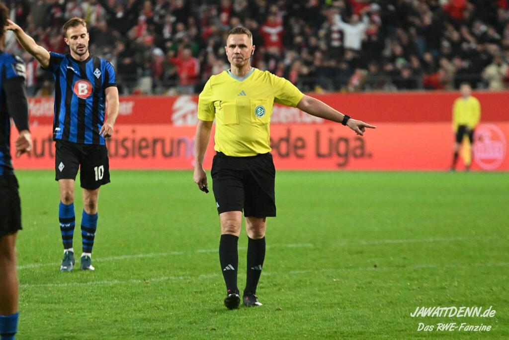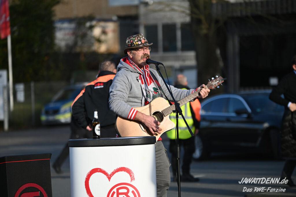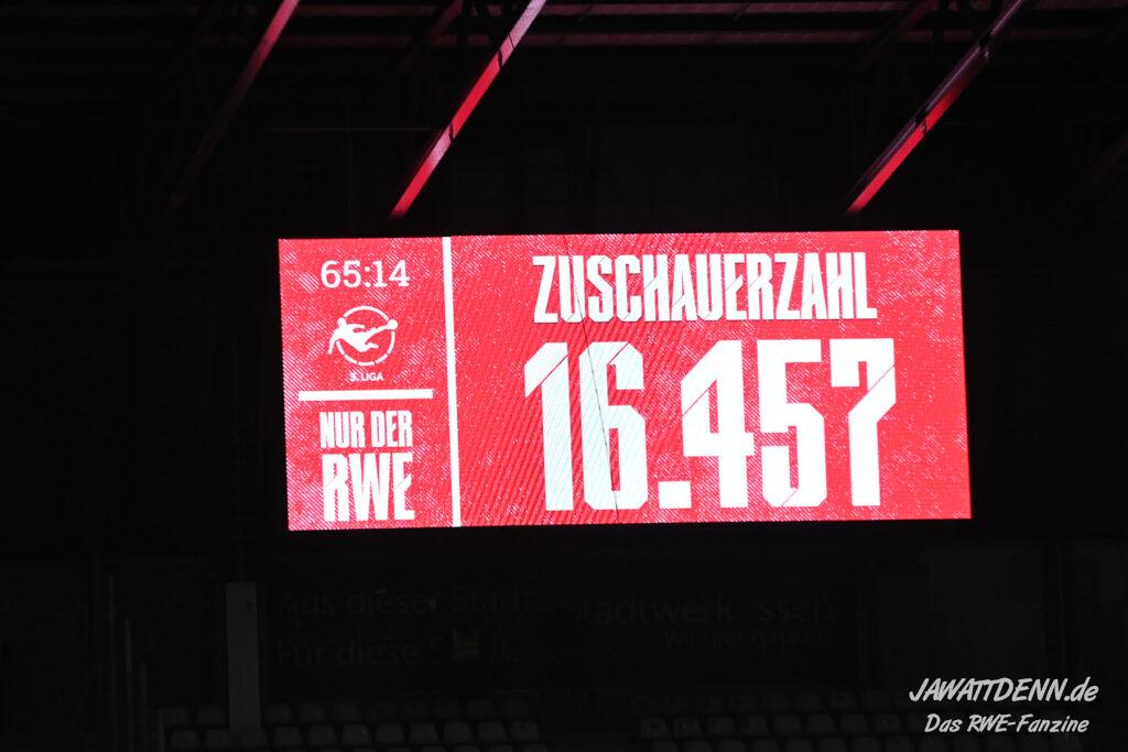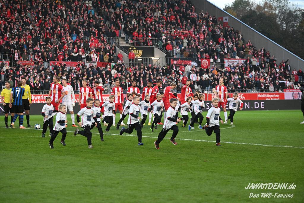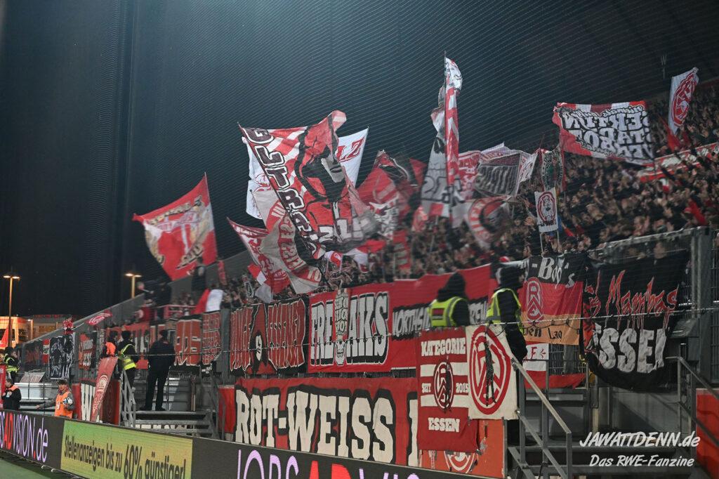 Es ist eher ein Aufregerchen angesichts eines ordentlichen Auftritts und des tadellos funktionierenden Drumherums. Allerdings war es schade, dass das Gedenken an den kürzlich verstorbenen Ex-RWE-Spieler und Trainer Diethelm Ferner in die Halbzeit gequetscht wurde. Während viele Menschen auf dem Weg in den Stadionumlauf waren oder die erste Halbzeit analysierten, ging die Würdigung völlig unter, sodass man hier künftig lieber die Ansprache verschieben sollte, wenn es nicht in das aktuelle Vorprogramm passt.