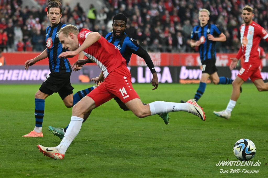 Es war trotz zweier wunderbar herausgespielter Tore kein Glanzspiel, das RWE uns gegen Mannheim anbot, sondern ein Arbeitssieg, bei dem insbesondere das Wort Arbeit betont werden muss. Mannheim rührte Beton an und in diesen Momenten wird es für nahezu alle Vereine der Liga schwer, Tore zu erzielen. Nichtsdestotrotz muss man sich nur in die vergangene Rückrunde zurückdenken, um den Unterschied zu bemerken, der selbst bei diesem überlegen geführten Sieg sichtbar ist.