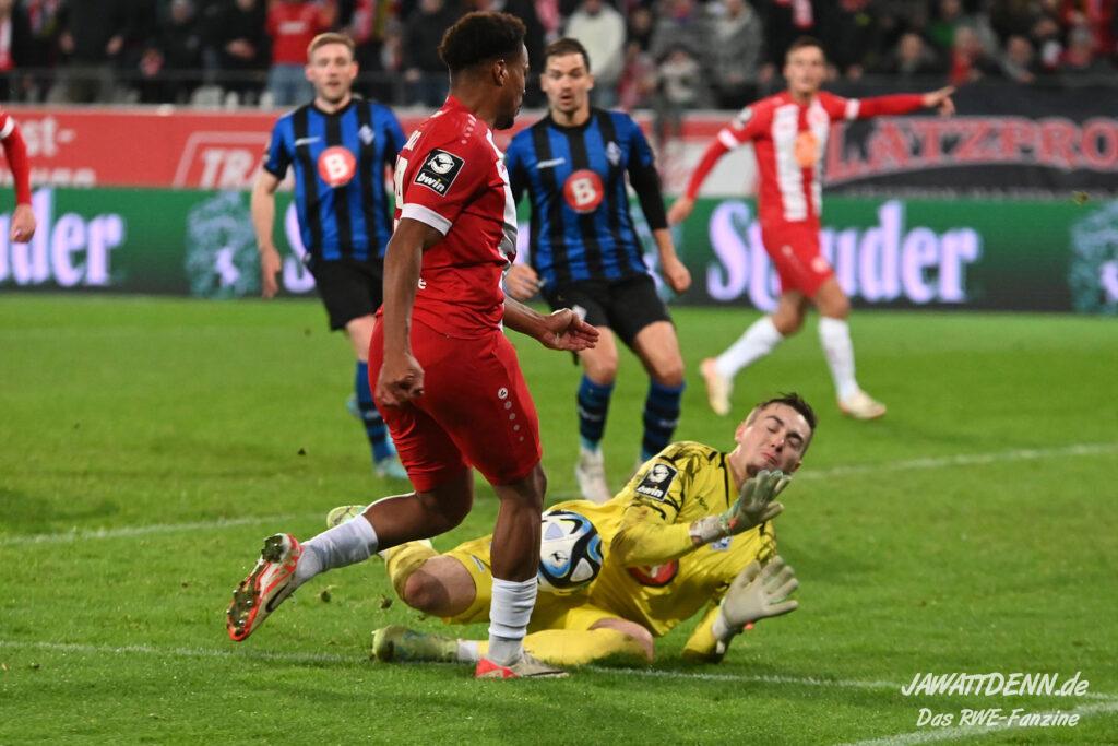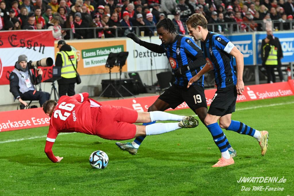 Wobei man zugestehen muss, dass die Essener Hintermannschaft die Räume schon auf hohem Niveau zustellt. In den 3. Liga-Highlights sieht man vielfach einfach herausgespielte Tore, die so gegen Essen seit Wochen nicht mehr erzielt werden.
