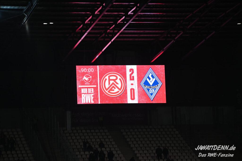 Rund um die Hafenstraße reiben sich Verantwortliche und Anhänger weiter die Augen. Nach Abschluss des letzten Spieltags bleibt RWE durch die Ulmer Niederlage in Münster auf dem dritten Platz, der am Ende der Saison automatisch zu zwei weiteren Spielen einladen würde. Mit Waldhof Mannheim reist zudem ein krisengeschüttelter Verein in das Ruhrgebiet. Dennoch sind dies alles keine Gründe zum Abheben.