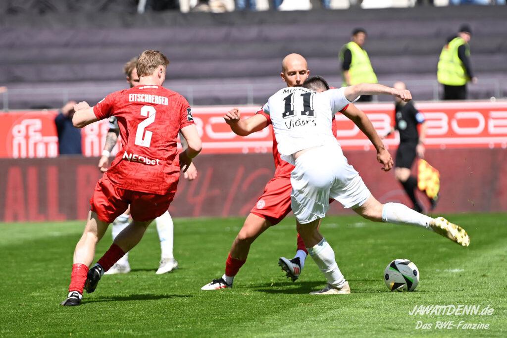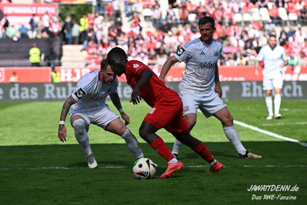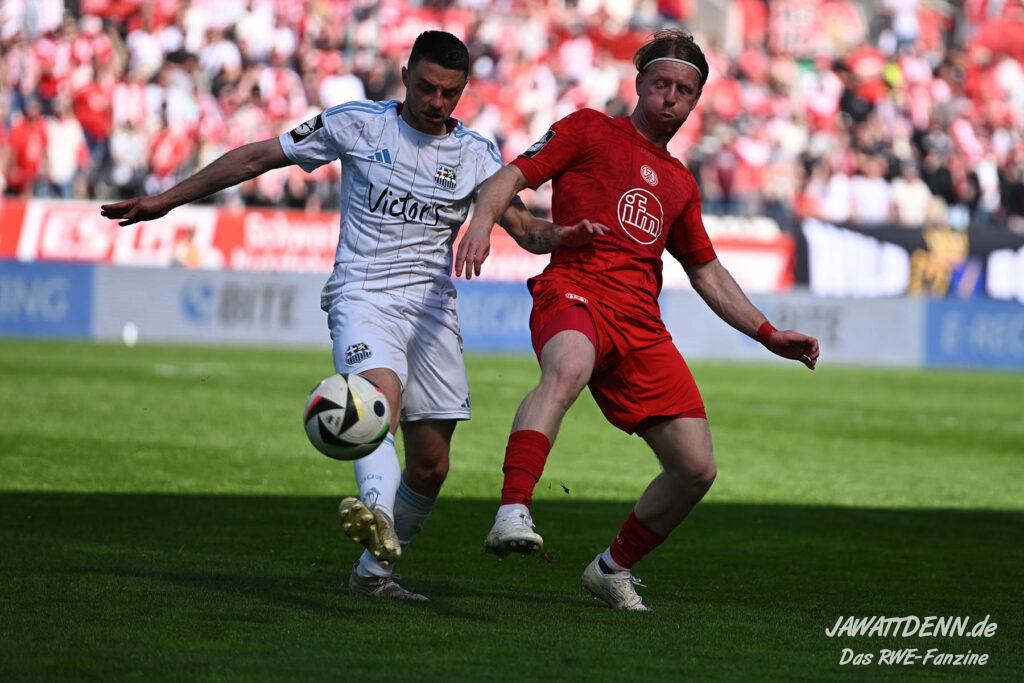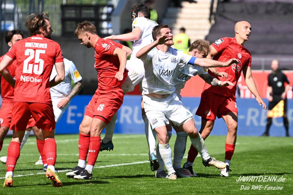 Auch wenn nicht mehr viel Ziele in dieser Drittligasaison für RWE erreicht werden können, wäre die Mannschaft in der Lage, die Position aus der letzten Spielzeit (Platz 7) zu toppen. Dies würde vielleicht die Leistung auf der gesamten Strecke etwas verzerren, wäre aber ein deutliches Ausrufezeichen zur kommenden Saison und ein Beweis dafür, dass an der Hafenstraße gerade viele Dinge richtig gemacht werden. Außerdem könnte ein Punktgewinn dafür sorgen, dass das Erreichen des Minimalziels vor dem eigenen Publikum gefeiert werden kann. Erfolge auf der Couch zu feiern macht wenig Spaß, da kann der diesjährige Endspielgegner um den Niederrheinpokal ein Lied von singen.
