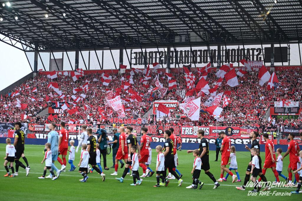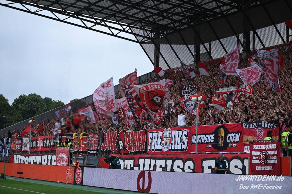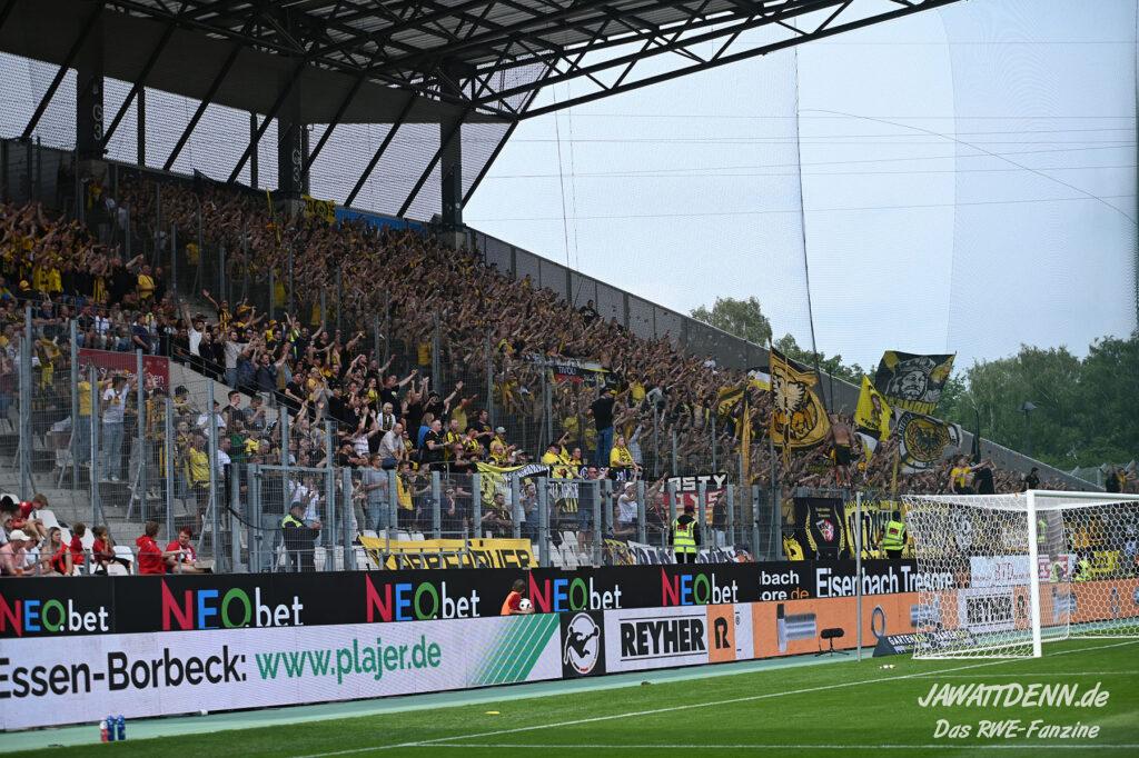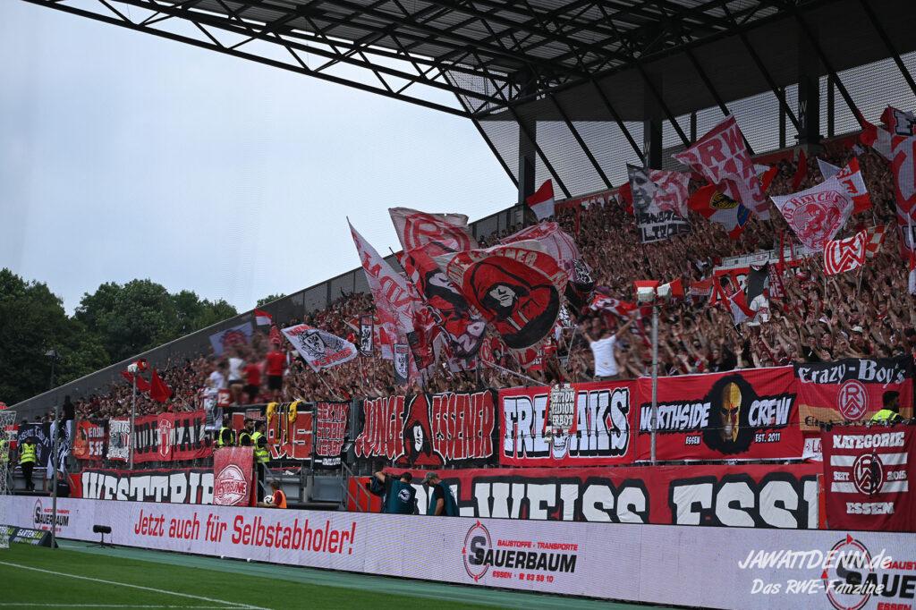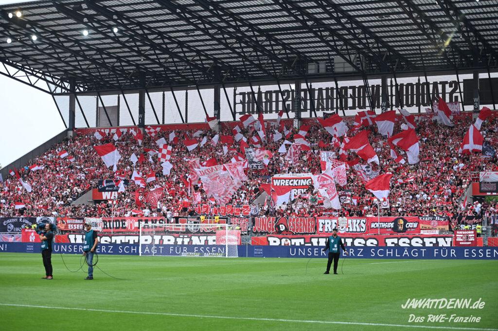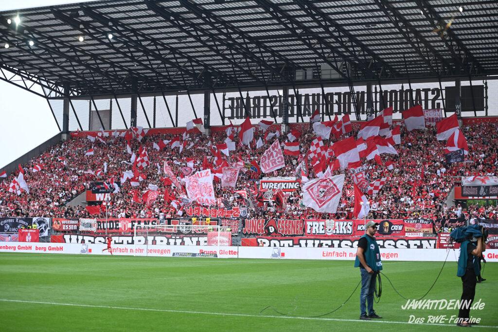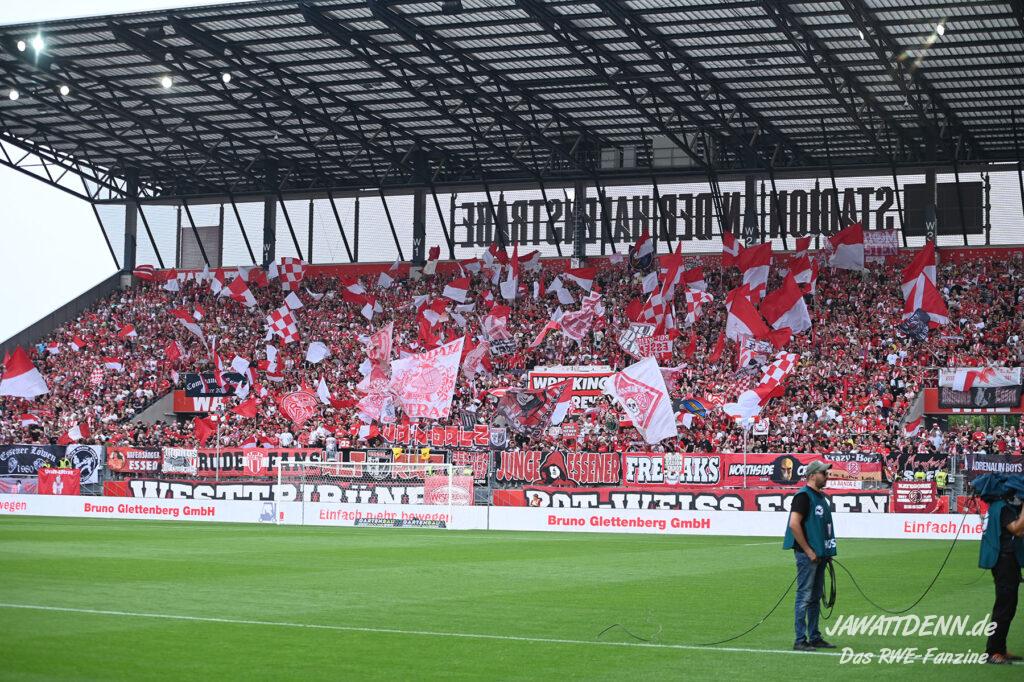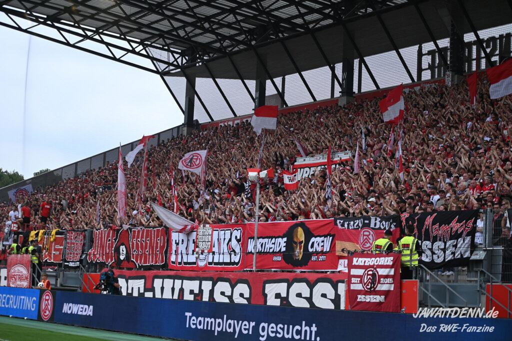 Zudem seien alle notorischen Schwarzseher darauf hingewiesen, dass RWE sich seit sechs Spielzeiten in Serie jeweils kontinuierlich verbessert hat. War es 2018/19 in der Regio West allerdings nicht schwer, die Vorjahresplatzierung (Platz 10) auf Rang 8 anzuheben, begann danach eine durchweg respektable Zeit. RWE kletterte das Podium der Regionalliga in den kommenden drei Spielzeiten von Platz 3 bis Platz 1 hoch, stieg auf und hielt in der Spielzeit 22/23 die Klasse, um sich im Vorjahr dann sehr deutlich zu steigern und Platz 7 zu erzielen. Es wird also seit Jahren nicht so schlechte Arbeit an der Hafenstraße 97 A geleistet, wie es Dauerzweifler scheinbar selber glauben. Die Stimmung im Stadion an der Hafenstraße war aber schon immer besser als in Social Media. Hier wurden unsere Spieler in der letzten Spielzeit stets auf einer Welle der Unterstützung getragen. So soll es auch am Samstag wieder gegen Alemannia Aachen sein. Packen wir es gemeinsam an!