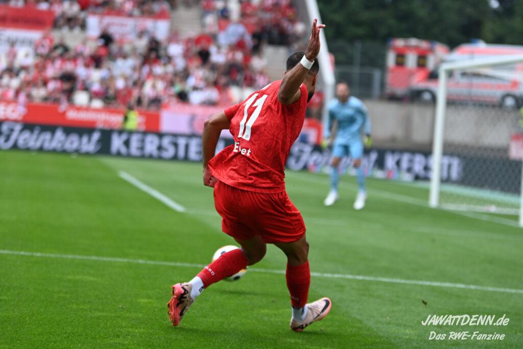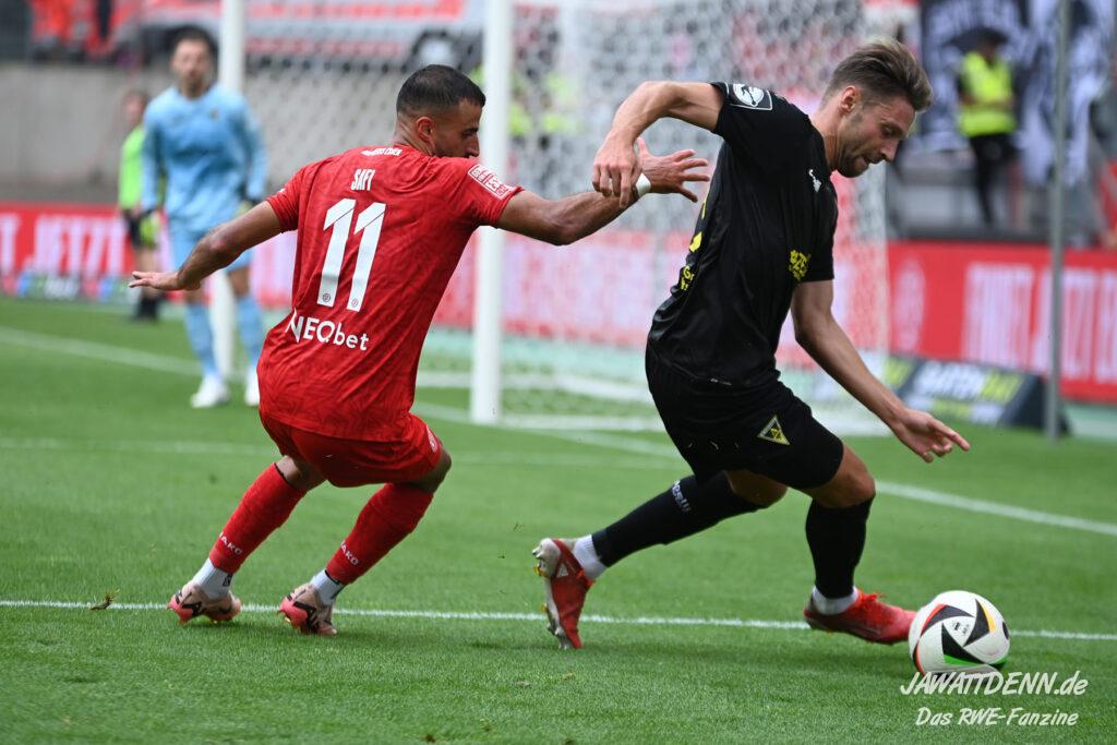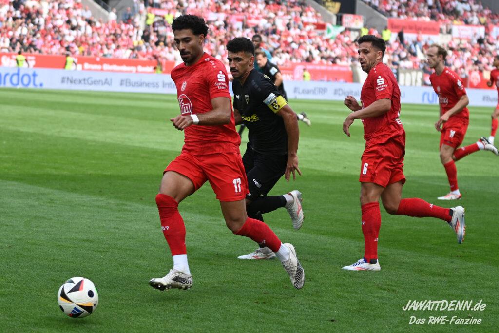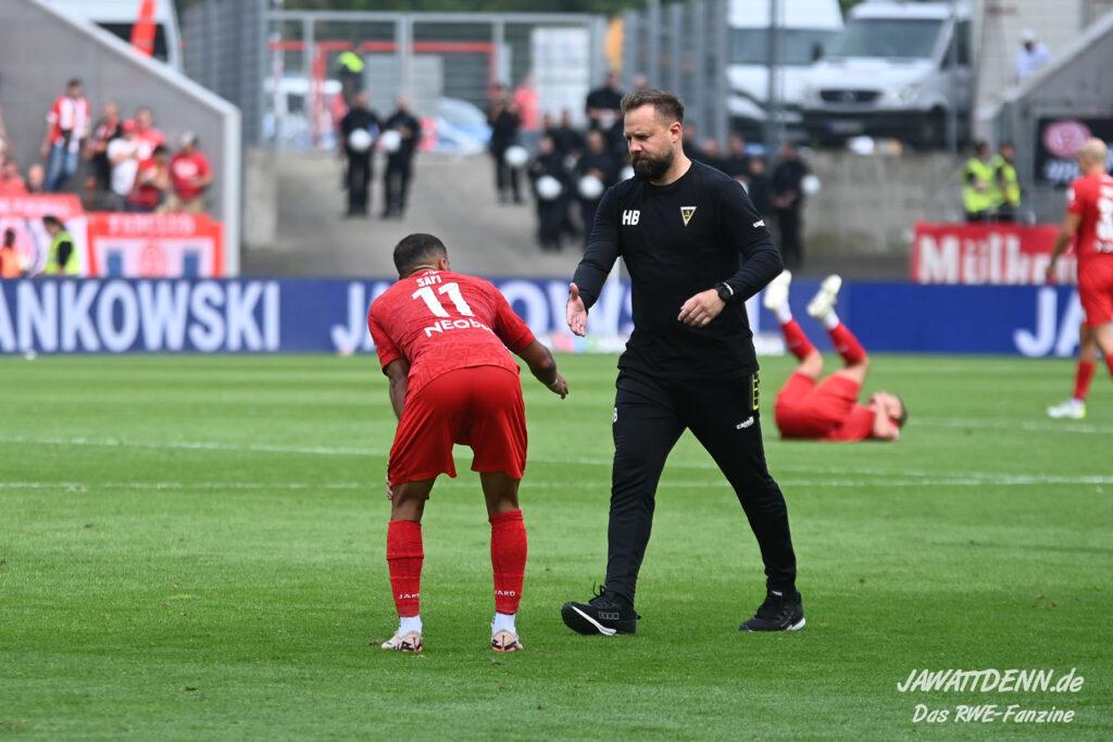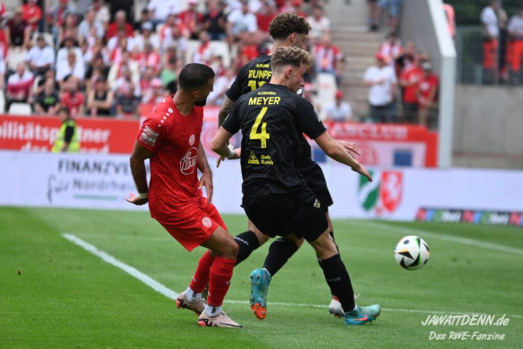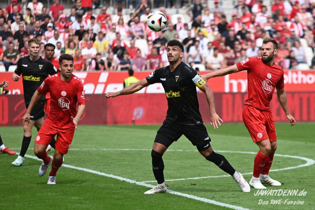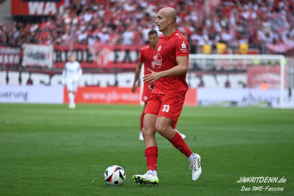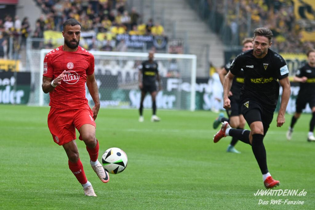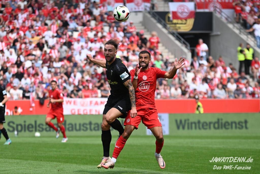Das Spiel, das RWE auszeichnet, viele schnelle Kontakte, den Ball in die Halbräume spielen und dann Richtung gegnerische Box zu treiben, war über die gesamte Distanz kaum zu sehen. So verwunderte es auch nicht, dass Ahmet Arslan scheinbar kaum mitspielte, in seine Räume gelangte der Ball häufig erst gar nicht.
