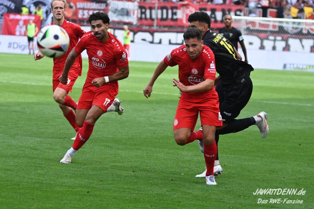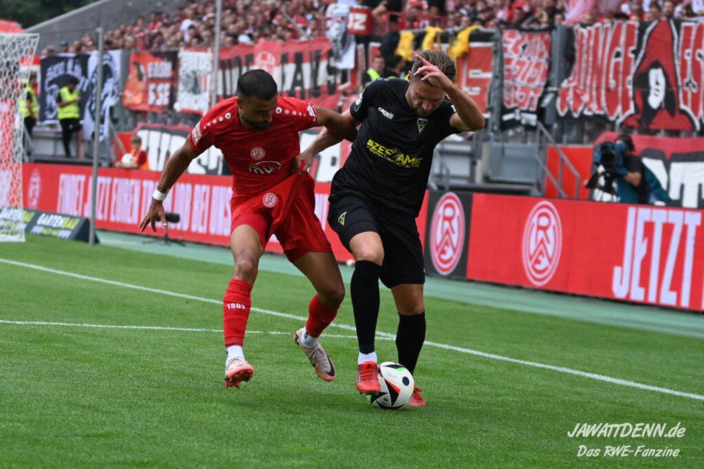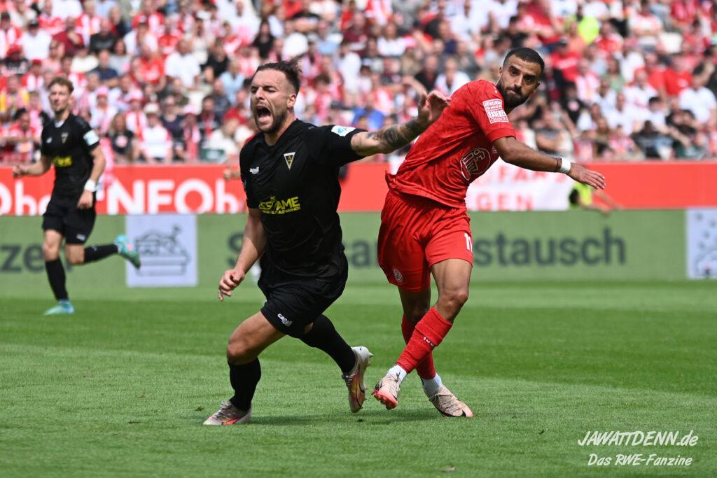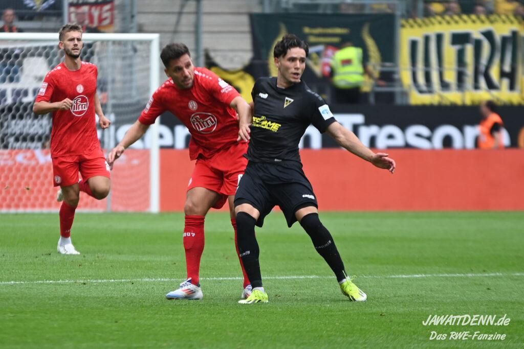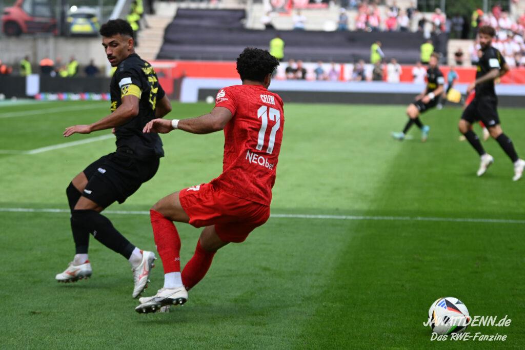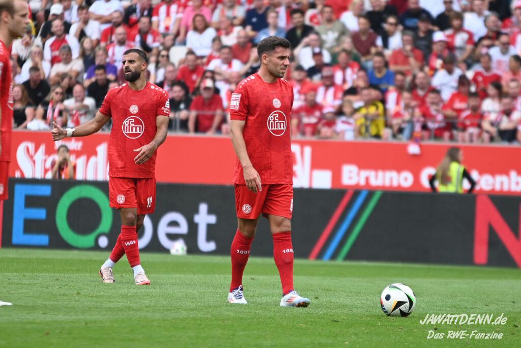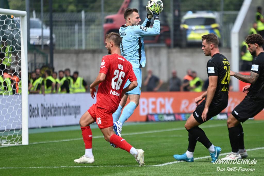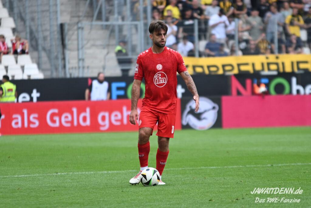 Das Spiel, das RWE auszeichnet, viele schnelle Kontakte, den Ball in die Halbräume spielen und dann Richtung gegnerische Box zu treiben, war über die gesamte Distanz kaum zu sehen. So verwunderte es auch nicht, dass Ahmet Arslan scheinbar kaum mitspielte, in seine Räume gelangte der Ball häufig erst gar nicht.