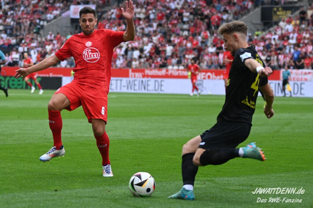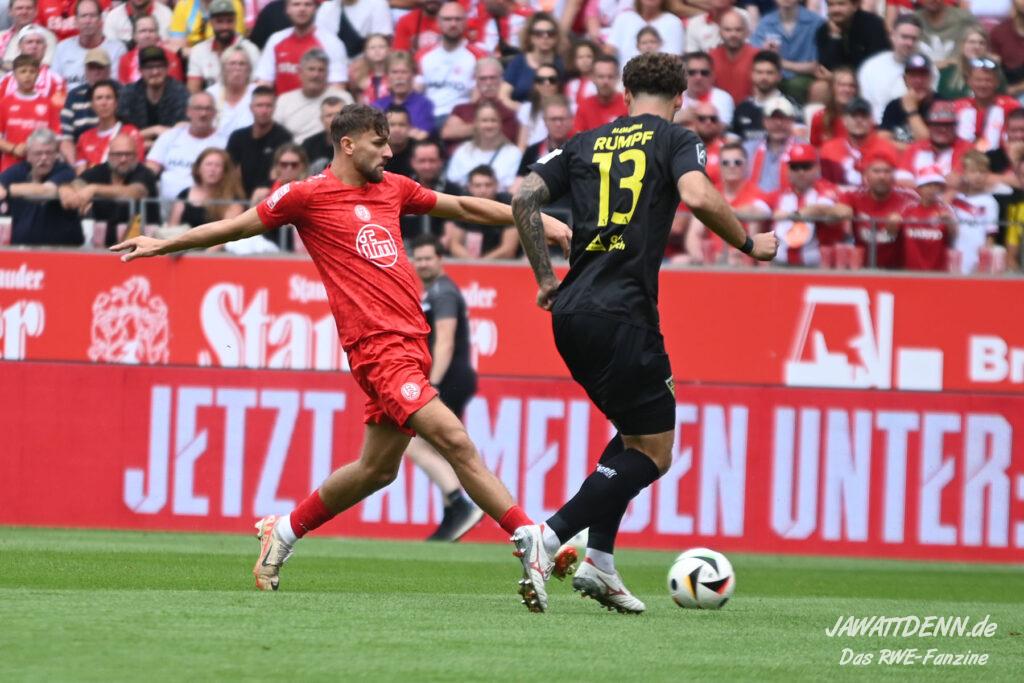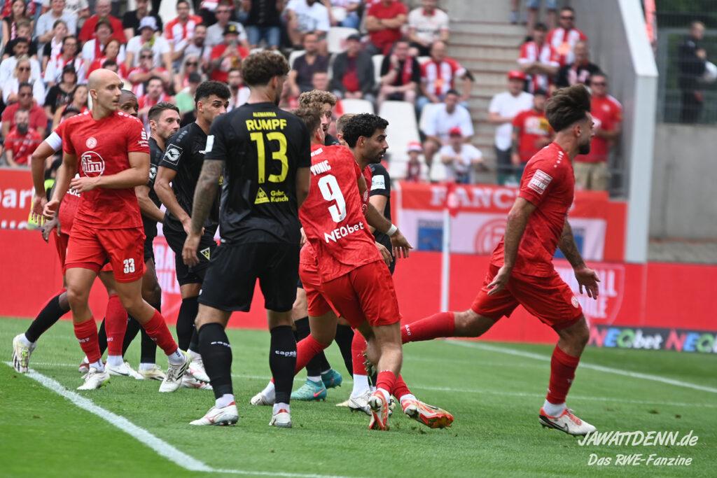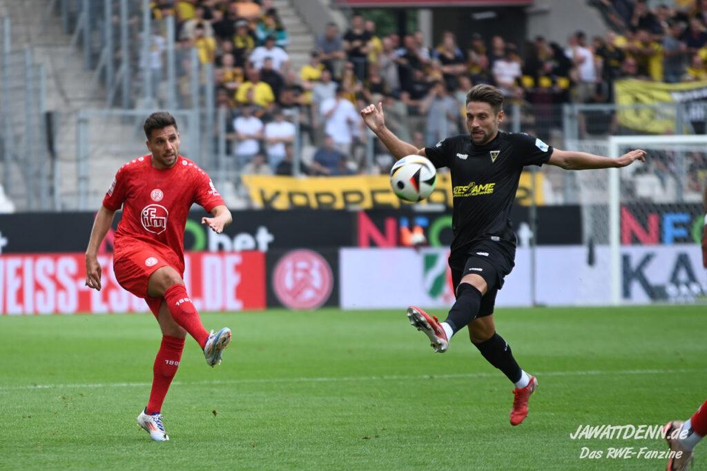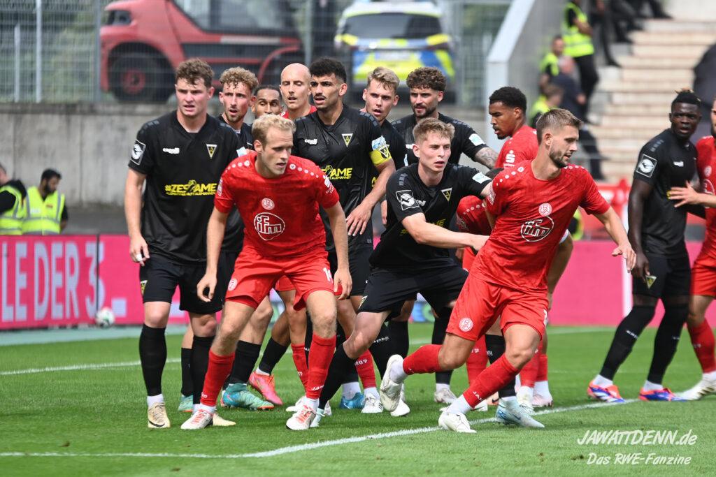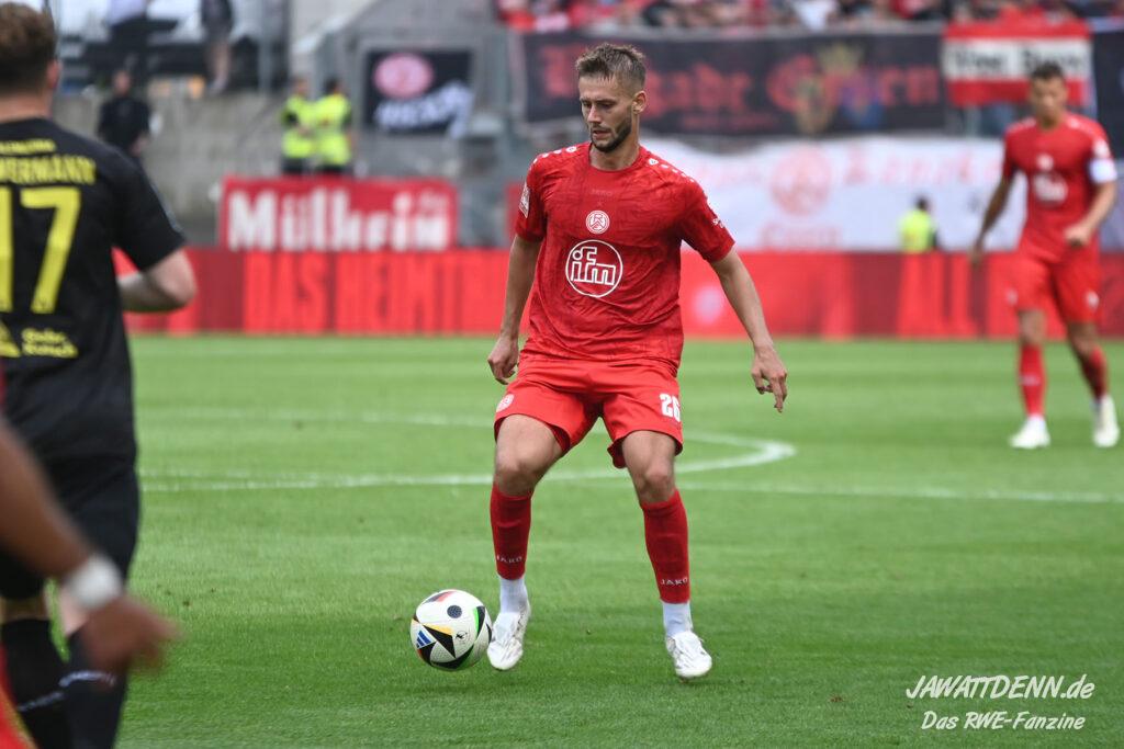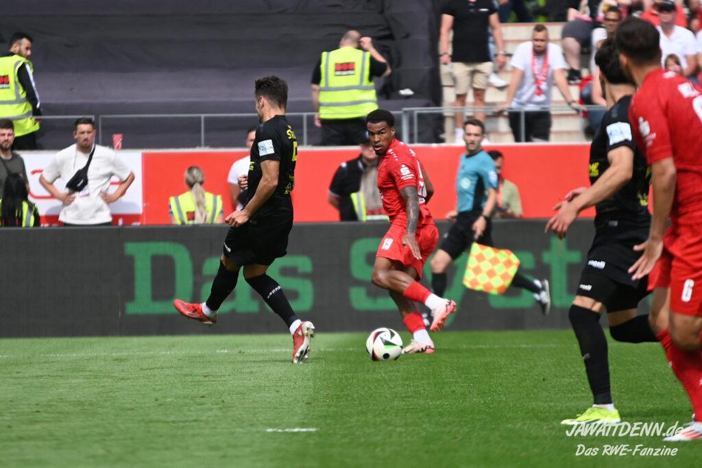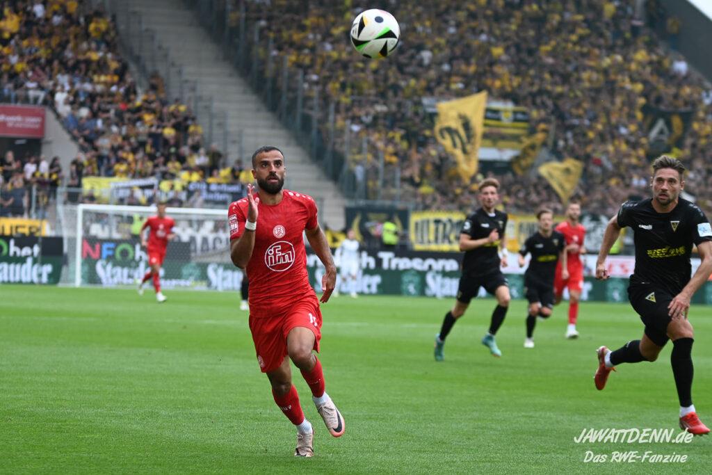 Das Spiel, das RWE auszeichnet, viele schnelle Kontakte, den Ball in die Halbräume spielen und dann Richtung gegnerische Box zu treiben, war über die gesamte Distanz kaum zu sehen. So verwunderte es auch nicht, dass Ahmet Arslan scheinbar kaum mitspielte, in seine Räume gelangte der Ball häufig erst gar nicht.