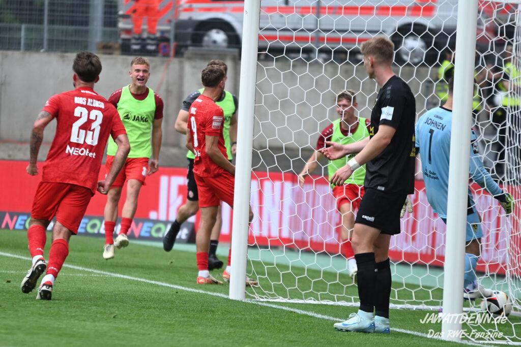 Aachen zerstörte Essens Spiel meistens im Ansatz und schlug offensiv eiskalt zu. Das wirkte reif für einen Aufsteiger. Erst als die Alemannia in den letzten 10 Minuten ihrer Intensität Tribut zollen musste und sich etwas zurückzog, kam RWE zu Chancen. Neuzugang Wintzheimer traf zunächst mit einem Drehschuss nur den Pfosten, das war Pech. Kurz darauf hatte erneut Wintzheimer eine gute Gelegenheit, scheiterte aber an Torhüter Johnen, der Abschluss war zu zentral. Essen muss sich fragen, warum es lange Zeit nicht gelang, die Alemannia derart in Bedrängnis zu bringen und man zudem in den Zweikämpfen weniger Intensität an den Tag legte als die Gäste.
