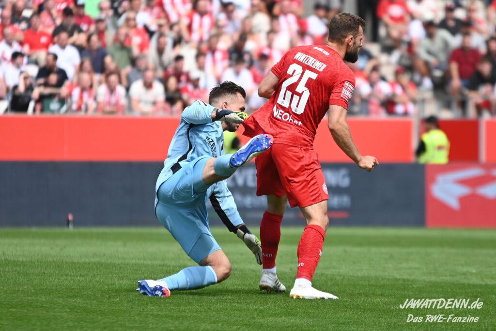 Irgendwann hätte man sich hier eine Systemumstellung auf ein 4-2-3-1 gewünscht, um RWE mehr Präsenz im Zentrum zu ermöglichen oder auch Lucas Brumme ganz konsequent auf seine Paraderolle auf der linken Außenbahn zu stellen.