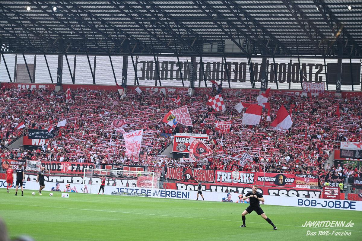 Bei RWE wurden in dieser Woche sportliche Dinge in den Hintergrund gekehrt. Jawattdenn.de berichtete schon vor Wochen, dass Sascha Peljhan und RWE entgegen der Aussagen von Aufsichtsratchef Dr. Andre Helf nicht in purer Harmonie auseinandergegangen waren. Nun wurden diese Dissonanzen von der WAZ noch einmal groß aufgearbeitet und es verwundert nicht, dass beim Gros der RWE-Fans der bekannt gewordene Umgang mit Sascha Peljhan für Zornesröte im Gesicht sorgte. Auf dem aktuellen Vorstand lastet Druck. Den könnte die Mannschaft mit einem Sieg über Bielefeld verringern, denn bekanntlich ist im Sport nichts so heilsam wie Erfolge. Dazu beitragen wollen und werden einmal mehr die RWE-Fans, die in den ausverkauften Heimbereichen wie eine geschlossene rot-weisse Wand hinter ihrer Mannschaft stehen.