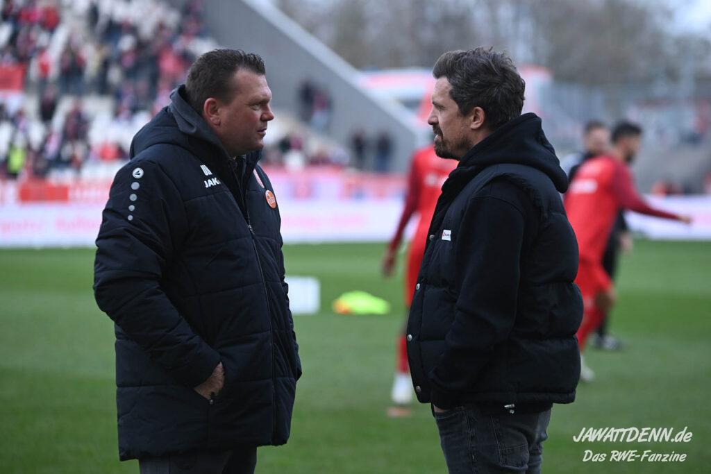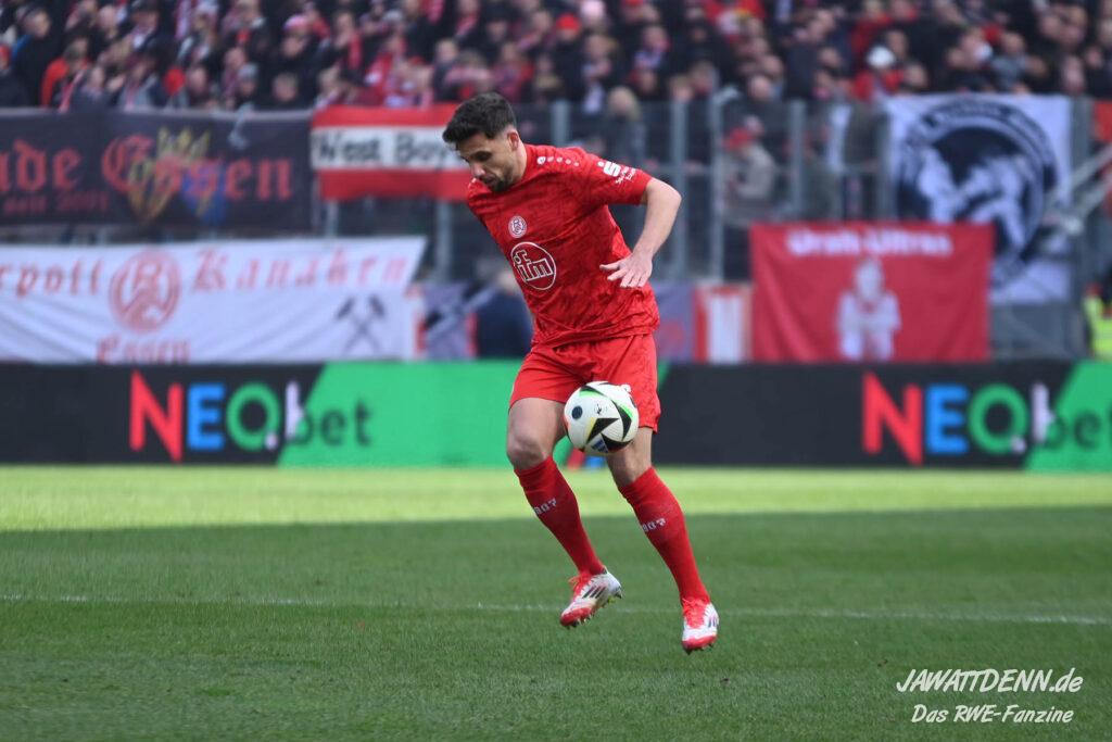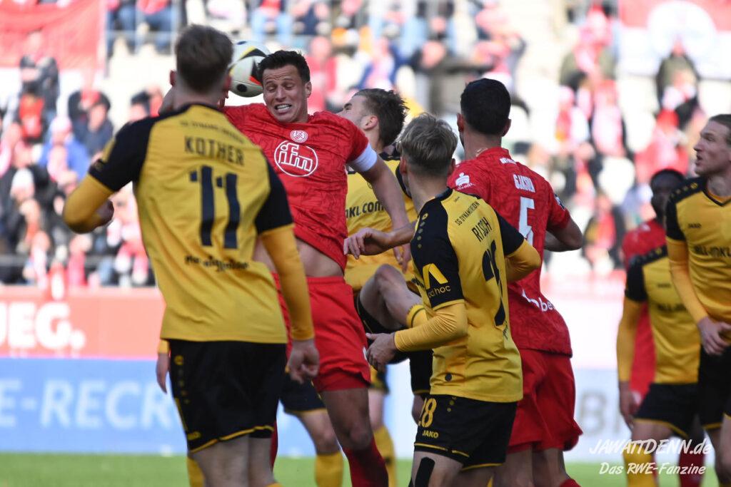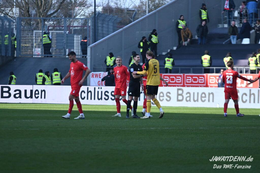 Nicht Fisch, nicht Fleisch. Sowohl Gästetrainer Thomas Stamm als auch RWE-Coach Uwe Koschinat wussten nach dem Schlusspfiff nicht so ganz, wie sie den jeweiligen Zähler für ihr Team einzuordnen hatten. Am Ende wirkte es so, als arrangierten sich beide Seiten mit der Punkteteilung, die tabellarisch nur bedingt weiterhilft. Essen ging durch Ahmet Arslan durch einen sehenswerten Torabschluss mit 1:0 in Führung (50.), der gebürtige Essener Lukas Boeder rettete dem Tabellenführer einen Punkt (66.). Große Torchancen fehlten danach auf beiden Seiten, sodass das Remis in Ordnung ging.