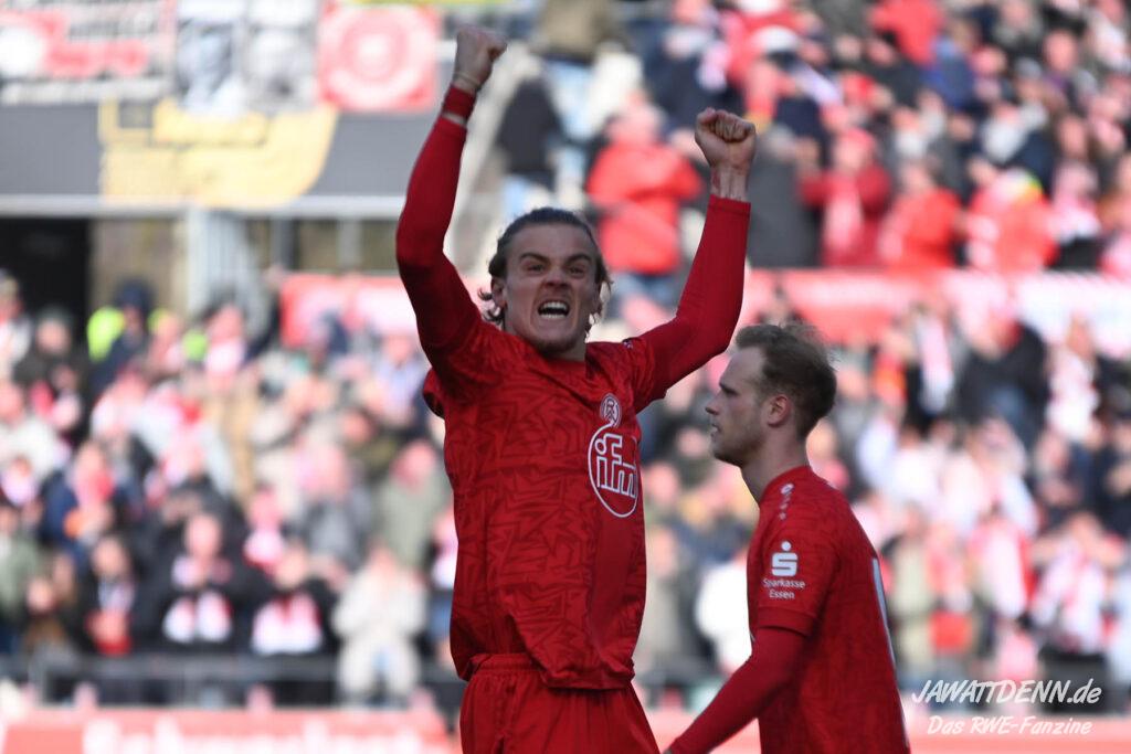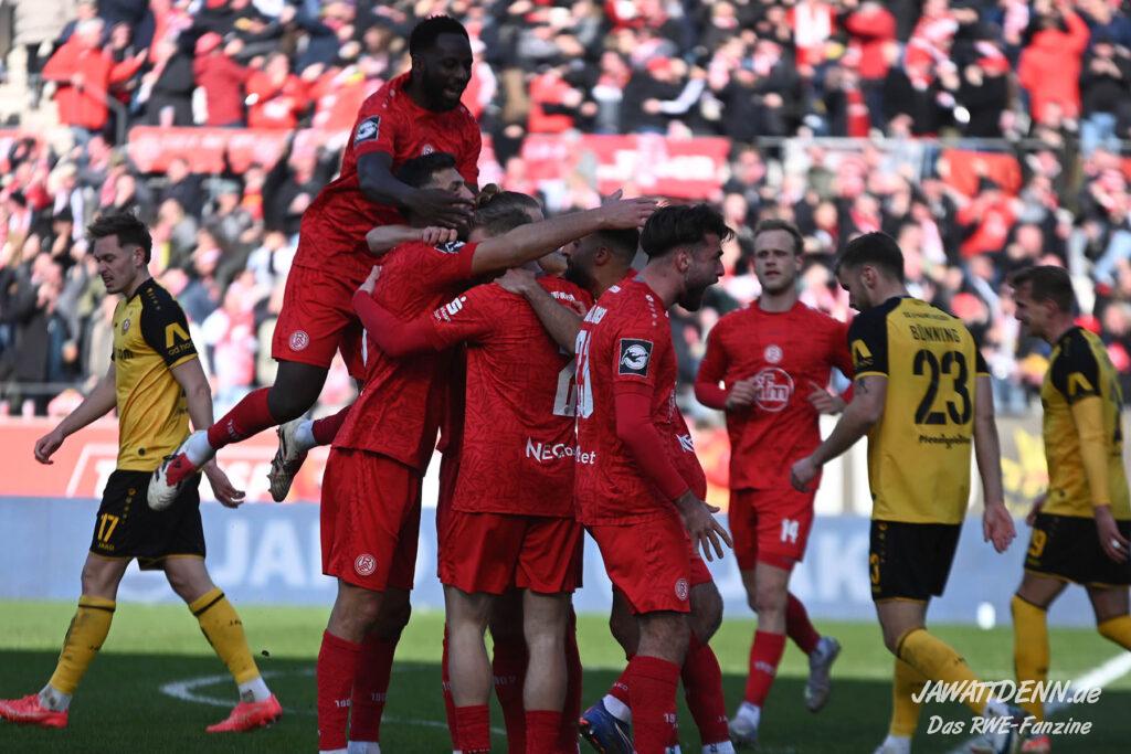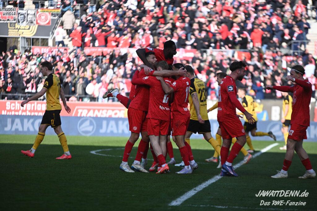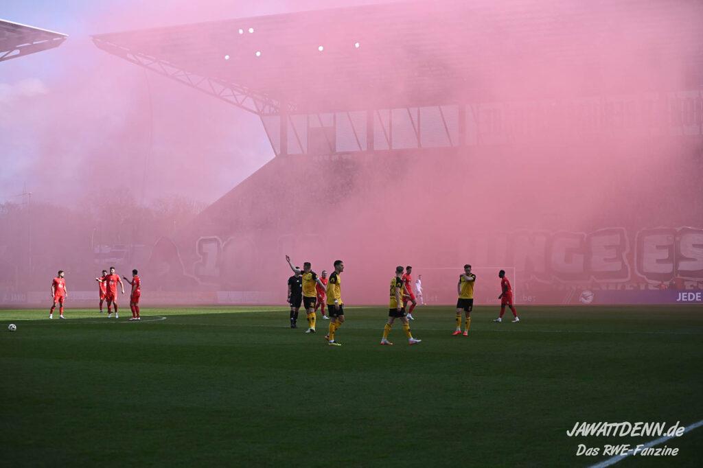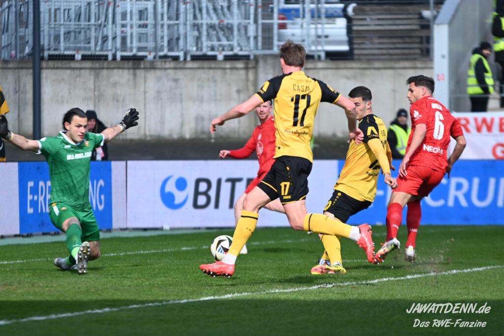 Hannover 2 wahrte seine Minimalchance auf den Klassenerhalt und zerstörte umgekehrt mit dem 3:2 über Wehen-Wiesbaden das letzte zarte Pflänzchen Aufstiegshoffnung bei den Hessen. Big Points gelangen 1860 München gegen das nun immer deutlicher abgeschlagene Schlusslicht Unterhaching im bayerischen Derby (2:1), was RWE auf Platz 12 zurückwirft. Der BVB 2 punktete beim Remis gegen Viktoria Köln (1:1) und einzig das 0:1 des VFL Osnabrück gegen Arminia Bielefeld war vollends erfreulich aus Essener Sicht.