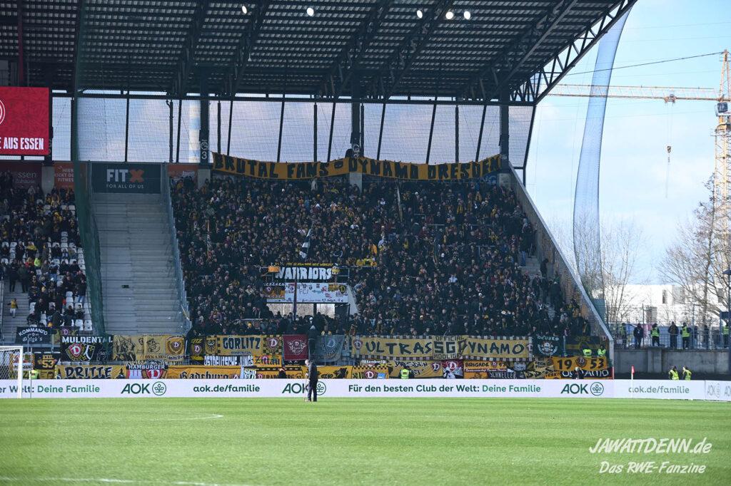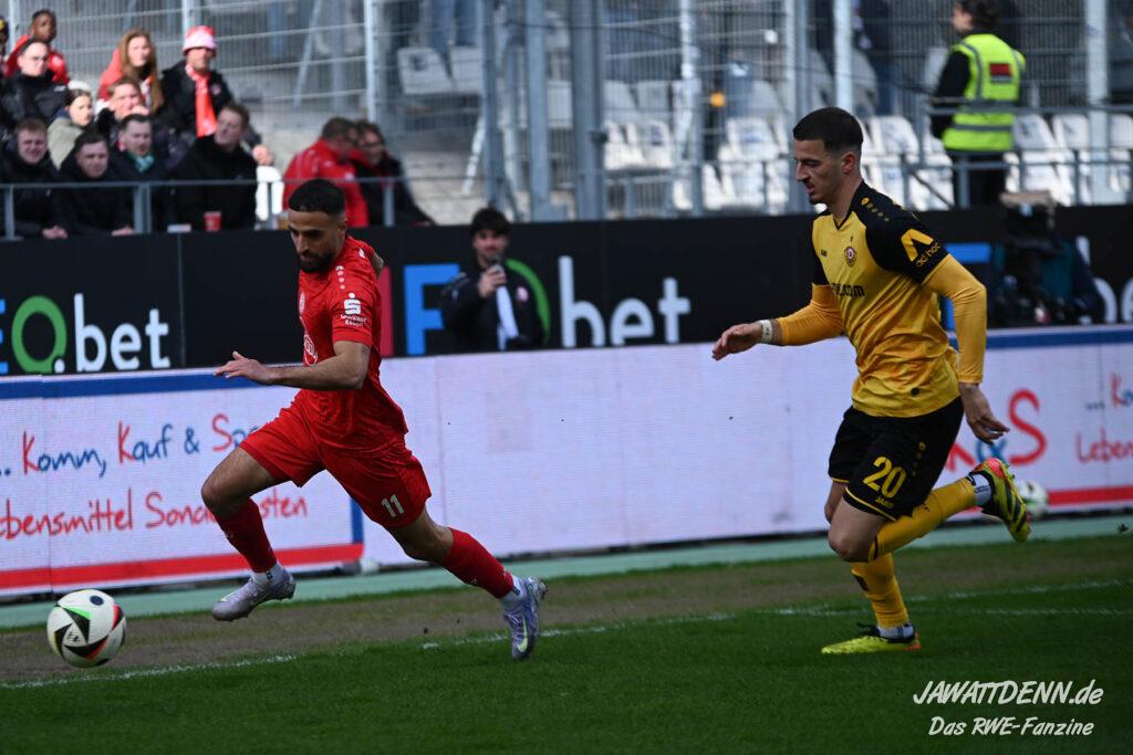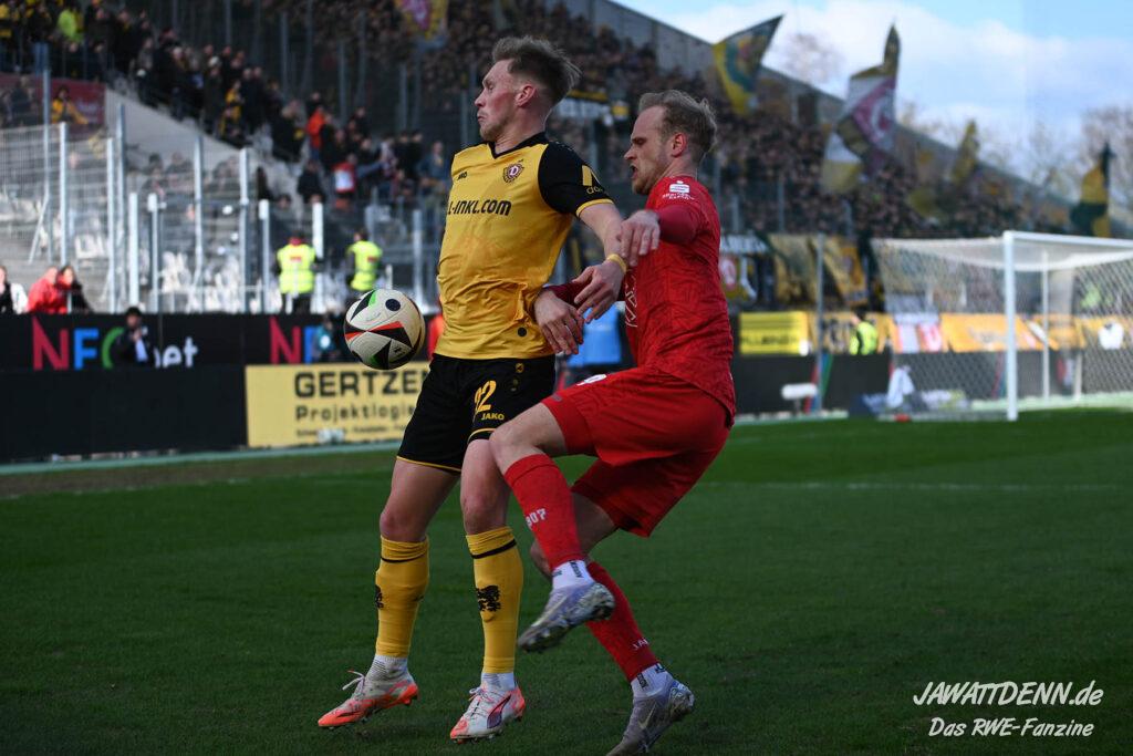 RWE hätte einen Dreier gegen den Spitzenreiter ziehen können. Dafür hätte man aber offensiver klarer agieren müssen. In den ersten gut 20 Minuten war Essen am Drücker gegen nicht vollends konzentrierte Dresdner. Aber es fehlte immer der letzte Pass und die letzte Überzeugung. Extrem ärgerlich war, dass Essen 1:0 in Führung liegend ein Geschenk von Gästekeeper Schreiber nicht annahm. Diesem unterlief beim Abstoß ein sogenannter Doppelkontakt und RWE bekam einen indirekten Freistoß aus nur gut 5 Meter Torentfernung. Martinovic spielte aber schlecht auf Arslan, der nur einen Flachschuss in die Mauer und den Ball nicht hoch in den Kasten setzen konnte. Im zweiten Spielabschnitt waren die Umschaltmomente zudem häufiger verheißungsvoll, die Pässe landeten aber nicht in der Tiefe, sondern im Nirgendwo.