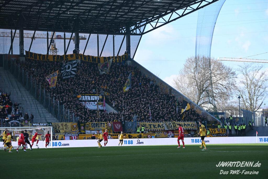 Wie groß die Distanz auf den Beginn der Abstiegsränge am Ende des Spieltages sein wird bleibt abzuwarten. Denn heute geht es in gleich 3 Partien in dieser Frage richtig zur Sache. Ab 13:30 Uhr drücken wir Energie Cottbus beim SV Sandhausen, ab 16:30 Uhr Erzgebirge Aue gegen Waldhof Mannheim und abschließend ab 19:30 Uhr Hansa Rostock bei Alemannia Aachen kräftig die Daumen. Laufen diese Spiele optimal für RWE, wird der Vorsprung vor der Länderspielpause weiterhin 4 Zähler betragen. Umgekehrt könnte es nur noch ein 2 Punkte Polster sein. Da ist der erneut konzentrierte RWE-Auftritt gegen DD ein gewisser Seelen-Balsam, dass Essen in der richtigen Art und Weise auf die Zielgerade geht.