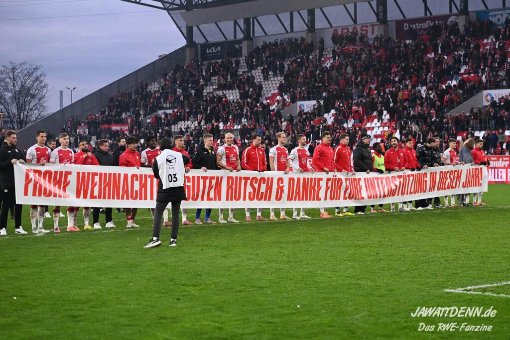 So ein letzter Spieltag des Jahres hat einen besonderen Reiz. Man sieht die rot-weissen Freunde noch einmal im eigenen Wohnzimmer und die Hoffnung ist groß, dass RWE ein Jahr, in dem bereits 70(!) Punkte gesammelt werden konnten, mit einem Erfolg abschließt. So werden wahrscheinlich wieder über 17.000 Zuschauer den Weg ins Stadion finden und gemeinsam feiern. Auf einen Dreier und dann wird die Freude steigen auf ein hoffentlich genauso erfolgreiches rot-weisses Jahr 2026.