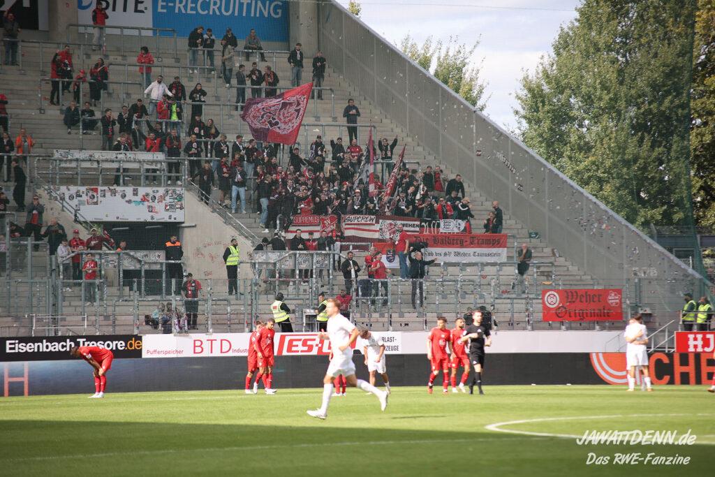 Natürlich sind als spezifische Knackpunkte die ersten beiden Gegentore zu nennen, denn in einer Phase optischer Überlegenheit konnten die Gäste nach Ballverlust von Thomas Eisfeld wie aus dem berühmten Nichts mit zwei Pässen die rot-weisse Defensive entblößen und durch Fatih Kaya in Führung gehen. Einen Pausentee und zwei personelle Wechsel später dauerte es knapp 60 Sekunden, ehe der gerade eingewechselte Jimmy Kaparos den Ball nahe der eigenen Eckfahne verlor und erneut Fatih Kaya mit seinem zweiten Treffer dem rot-weissen Aufbäumen früh den Stecker zog. Auch beim dritten Treffer durch Tarik Gozusirin kam RWE immer einen Schritt zu spät und offenbarte dabei zum wiederholten Male in dieser Saison eine fehlende Zweikampfintensität, mit der in Liga 3 keine Punkte zu holen sind.