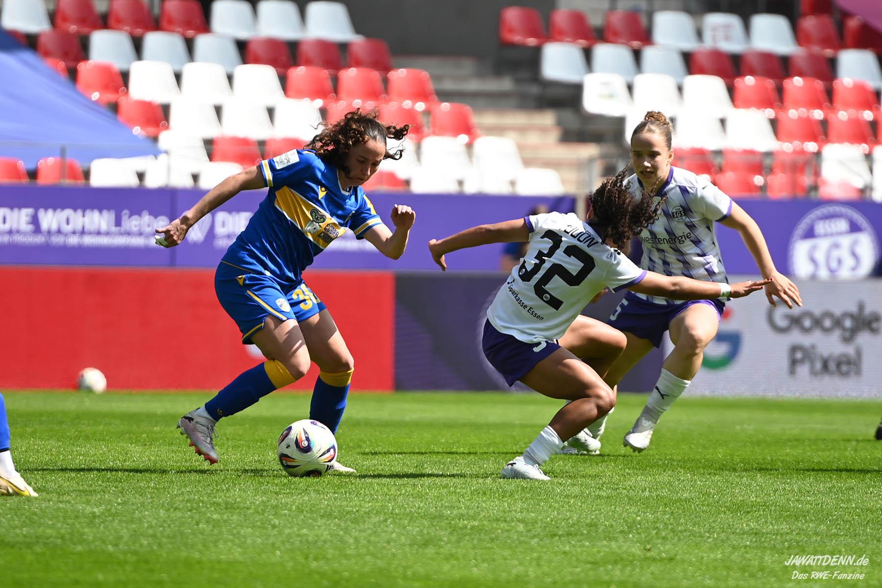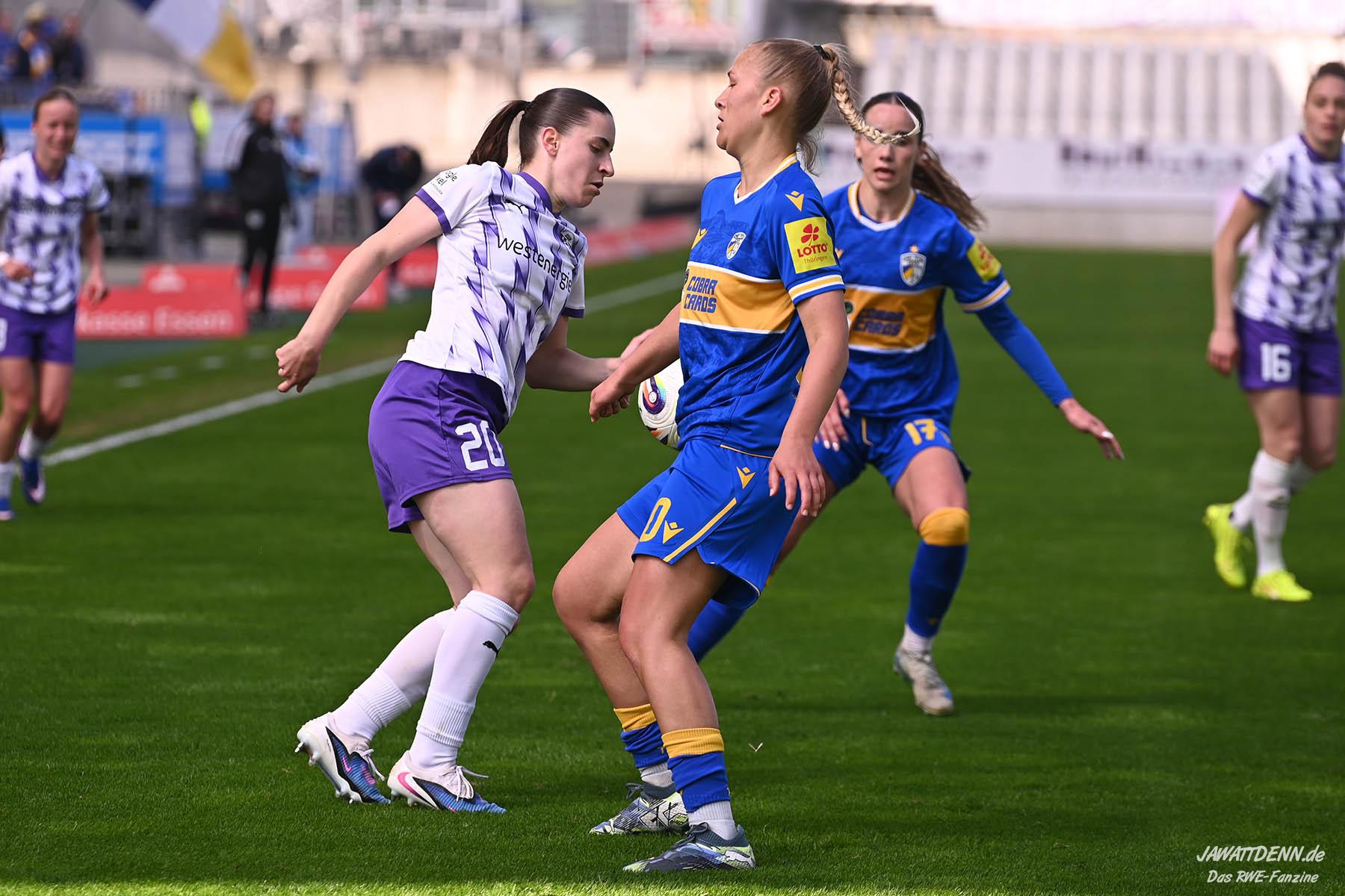 Leichtes Aufatmen bei der SGS Essen. Im Kellerduell holen die Frauen wichtige 3 Punkte um nicht den Anschluss zu verlieren. 3 Spiele sind noch zu spielen und es sind „nur“ 3 Punkte auf das rettende Ufer. Unsere Galerie von heute ist online.