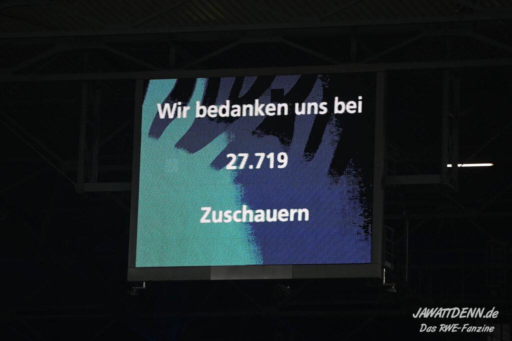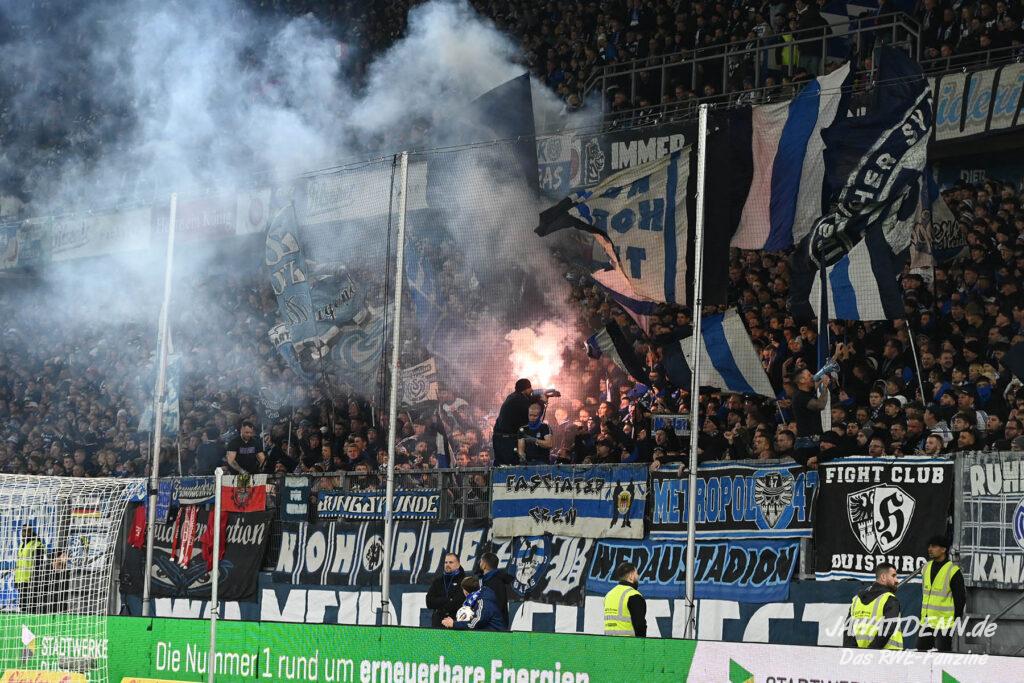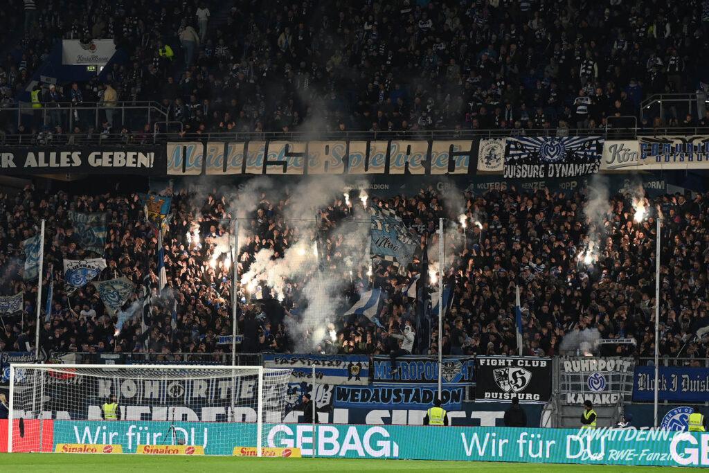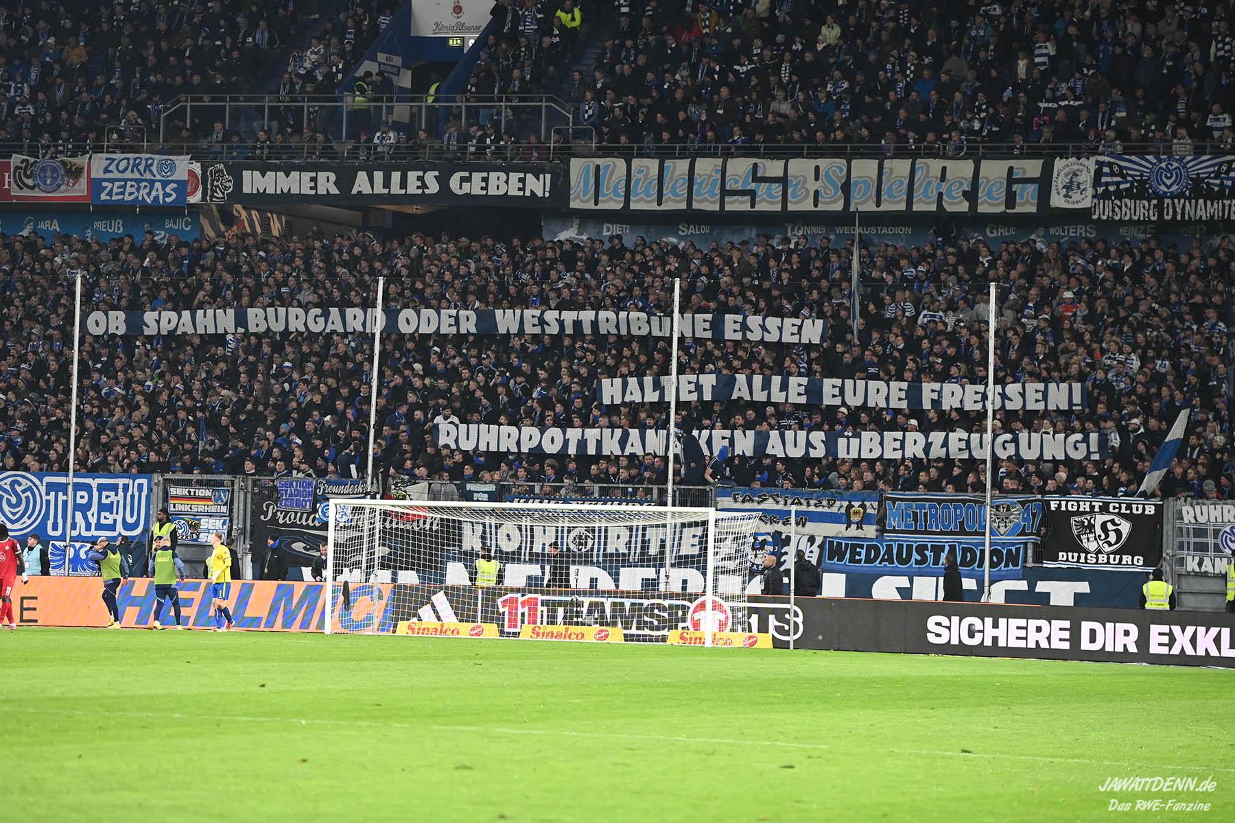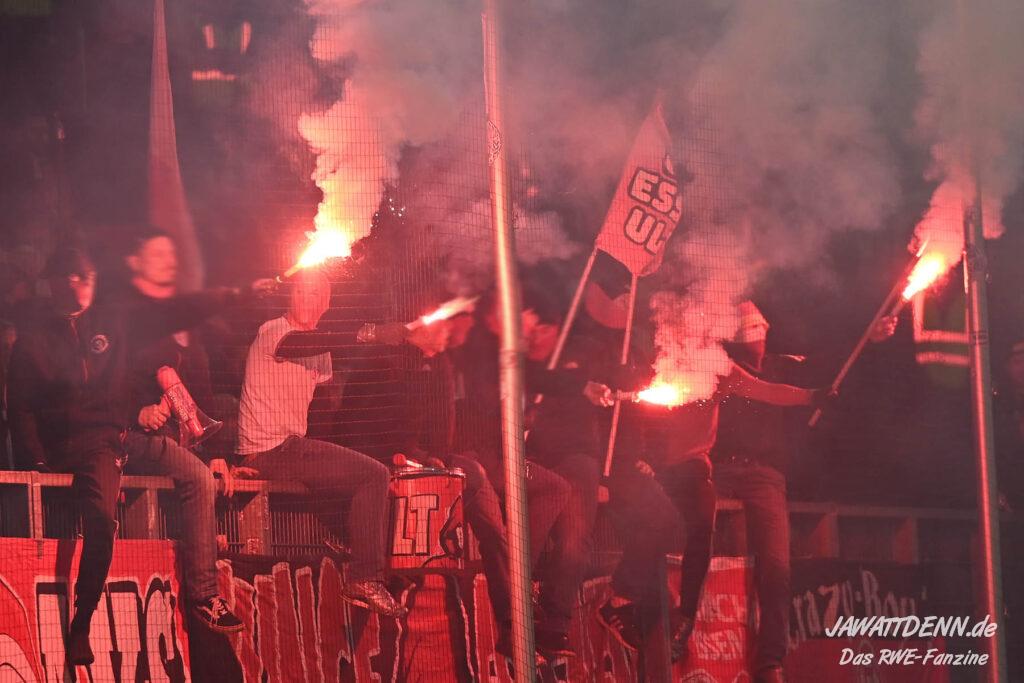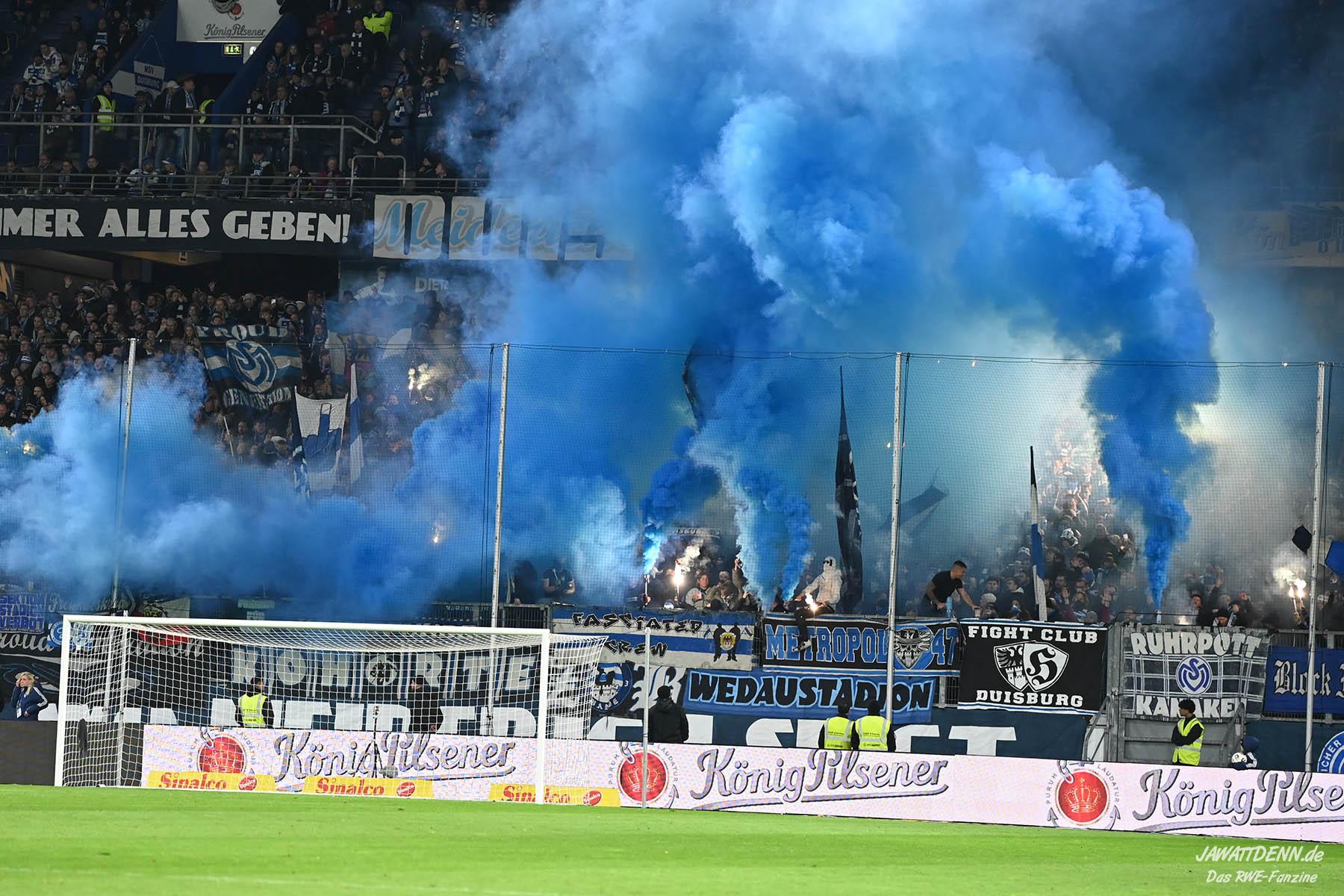 Bei den eigenen Reihen soll es dann auch weitergehen. Im Vorprogramm wurde ein Gespräch mit einem 15-jährigen Mädchen geführt, die dem MSV die Daumen hält und die einen Kampf gegen ihre Krebserkrankung führt. In diesem Fall waren es einige RWE-Anhänger, die hier ernsthaft den Gesang „Halt dein Maul!“ anstimmten. Wer sehen wollte, wie weit die Abstumpfung mancher Menschen geht, der hat das Extrem in dem Moment vorgeführt bekommen. Auch wenn vielleicht nicht jeder mitbekommen haben sollte, warum das Interview geführt wurde, machte es die Sache kaum besser. Wenn der Hass selbst vor Kindern nicht mehr halt macht, dann befindet man sich definitiv weit außerhalb des akzeptablen Bereichs.