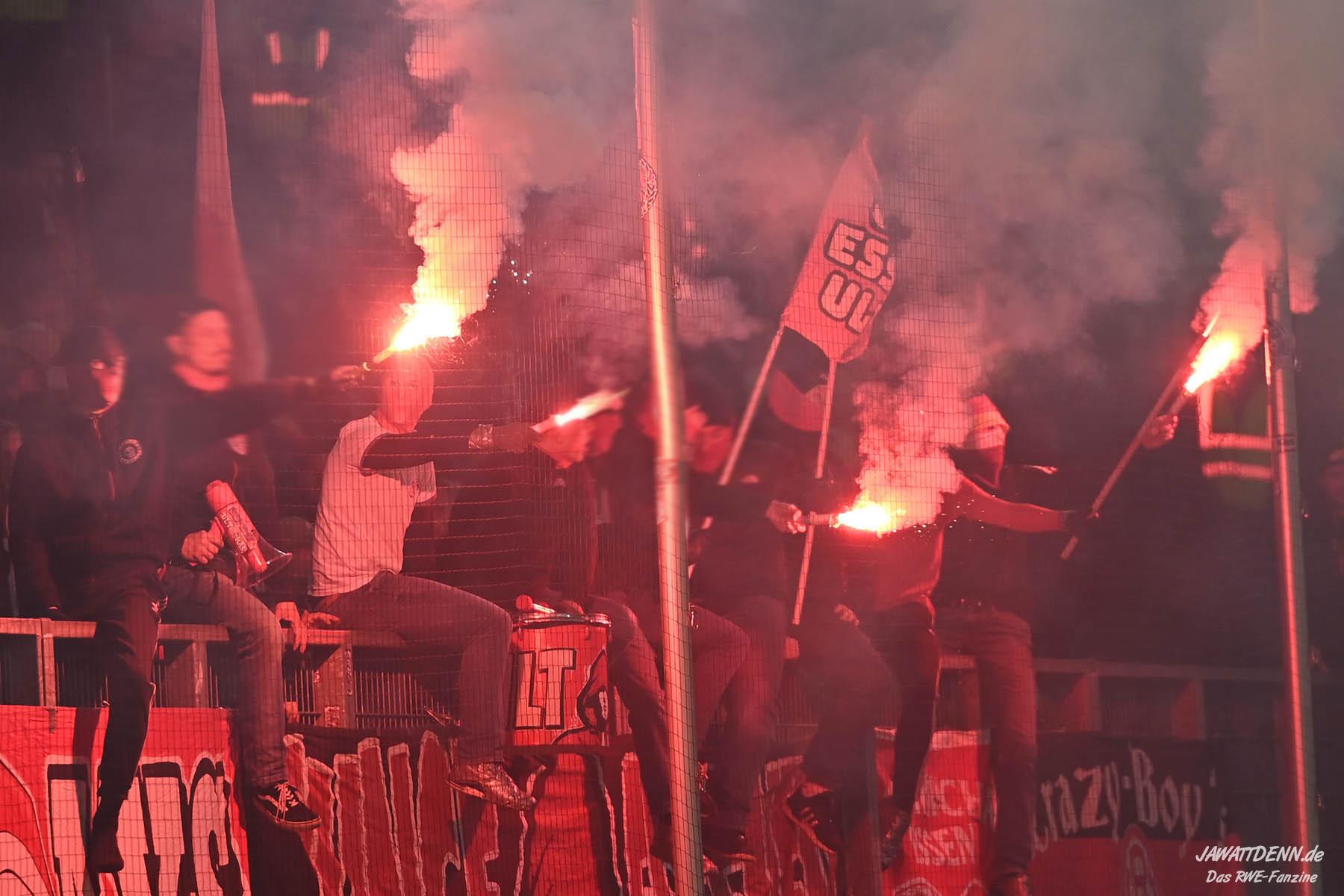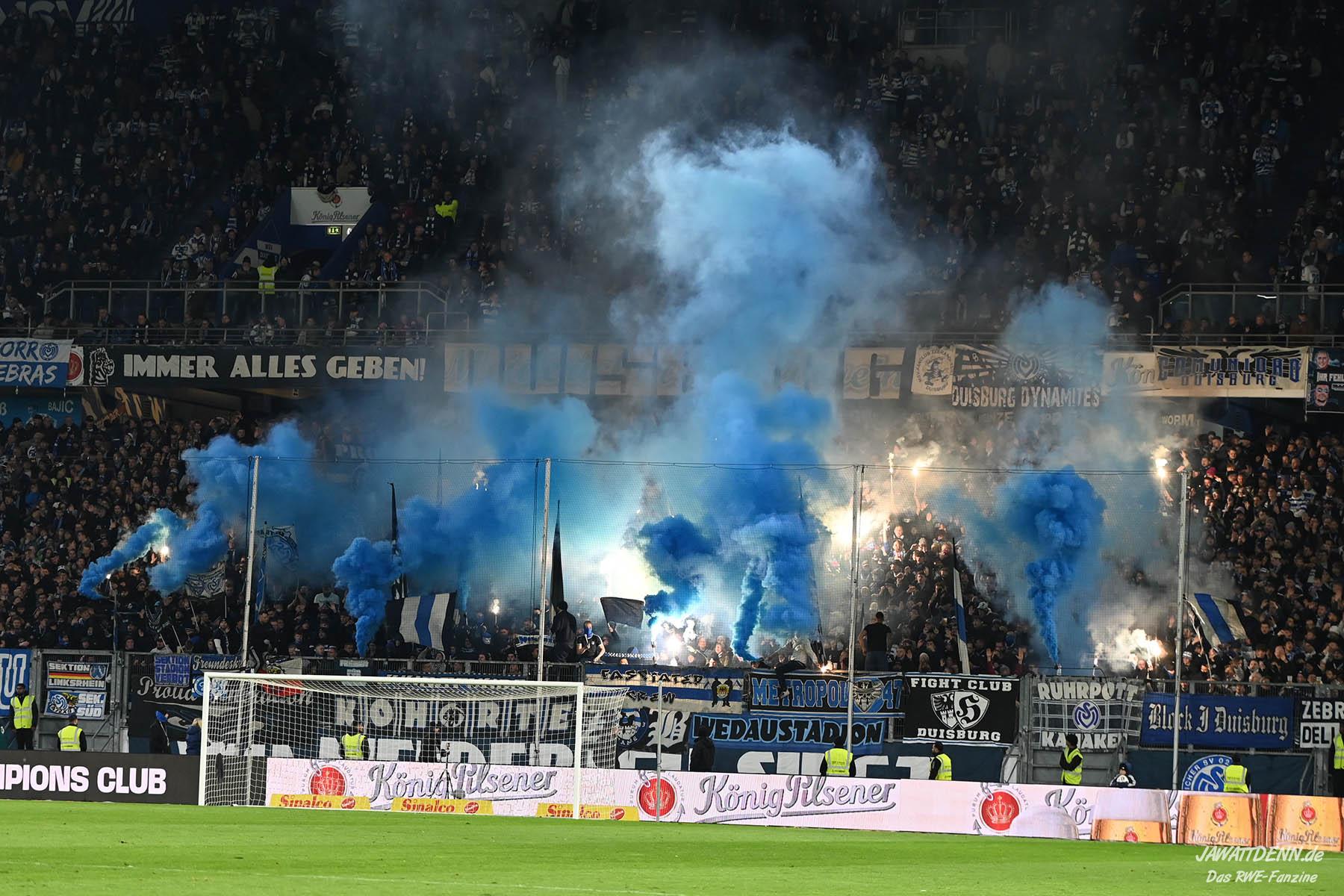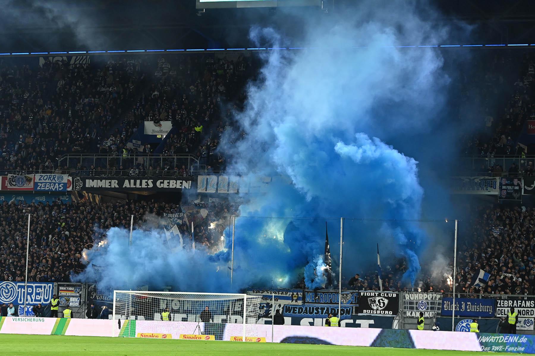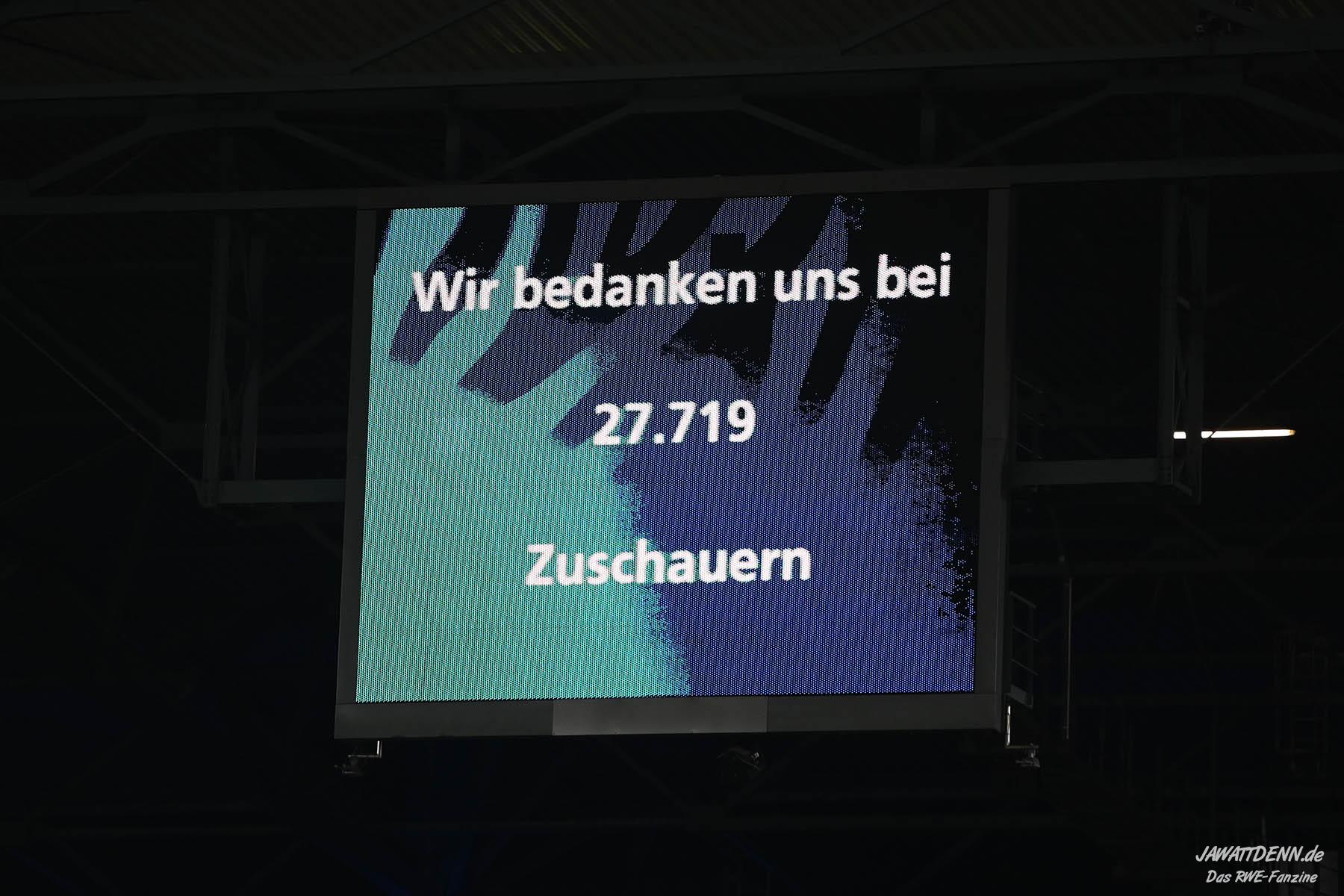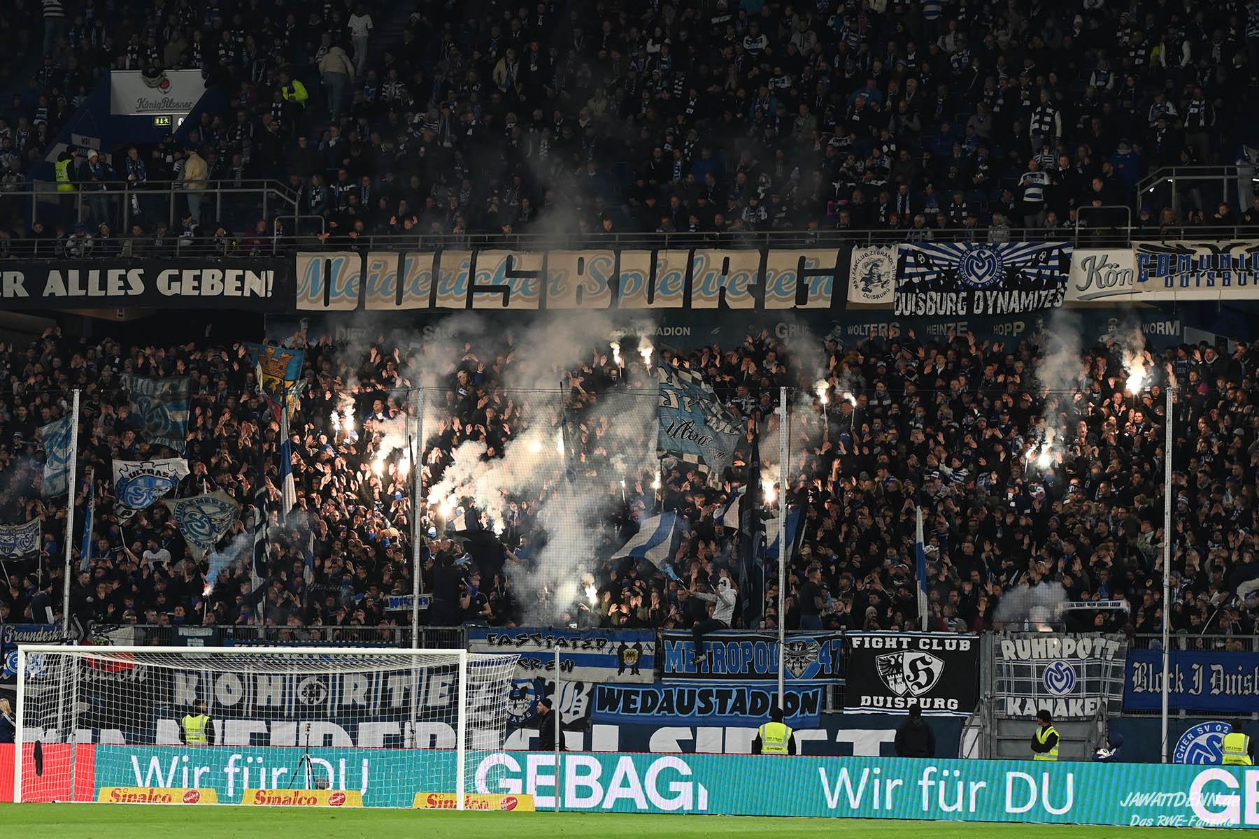 Bei den eigenen Reihen soll es dann auch weitergehen. Im Vorprogramm wurde ein Gespräch mit einem 15-jährigen Mädchen geführt, die dem MSV die Daumen hält und die einen Kampf gegen ihre Krebserkrankung führt. In diesem Fall waren es einige RWE-Anhänger, die hier ernsthaft den Gesang „Halt dein Maul!“ anstimmten. Wer sehen wollte, wie weit die Abstumpfung mancher Menschen geht, der hat das Extrem in dem Moment vorgeführt bekommen. Auch wenn vielleicht nicht jeder mitbekommen haben sollte, warum das Interview geführt wurde, machte es die Sache kaum besser. Wenn der Hass selbst vor Kindern nicht mehr halt macht, dann befindet man sich definitiv weit außerhalb des akzeptablen Bereichs.