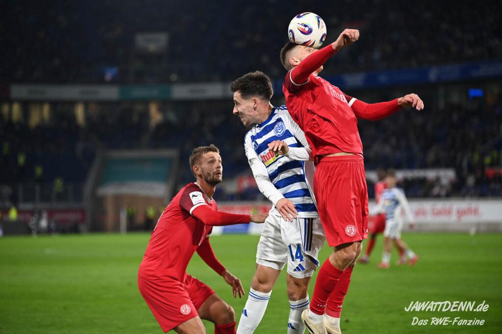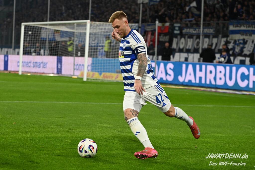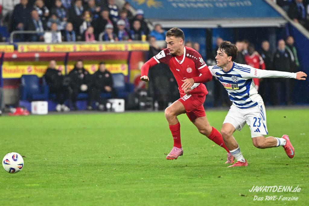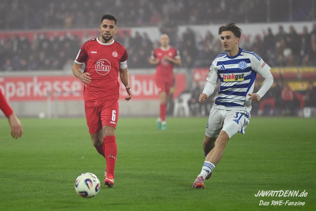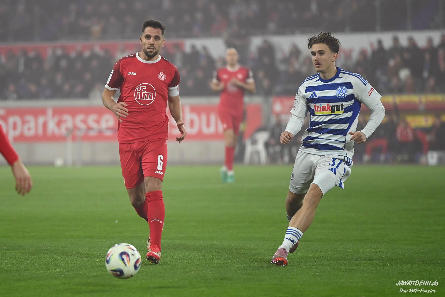 So wurde aus dem MSV im Sommer 24/25 kein normaler Aufsteiger, der sich zurück in die Dritte Liga spielte. Trainer Dietmar Hirsch und Michael Preetz gaben noch vollmundig bekannt, man bleibe bescheiden und setze auf die Mannschaft, die für Stadt und Verein ihre Herzen auf dem Platz gelassen habe. Dies ist aber einmal mehr nur die halbe Wahrheit. Mit Christian Viet und Rasim Bulic kamen zweitligaerfahrene Spieler aus Regensburg, die sich von den Marktwerten in der Dritten Liga gleich oben einreihten. Conor Noß konnte zuvor immerhin in Österreich Erstligaluft schnuppern, bei Florian Krüger bissen sich der letztjährige Relegationsteilnehmer aus Saarbrücken die Zähne aus, ihn aus Belgien dauerhaft loseisen zu können. Die Duisburger Verantwortlichen verfolgen eine kluge Strategie, die zum Durchmarsch in die Liga zwei führen soll.
