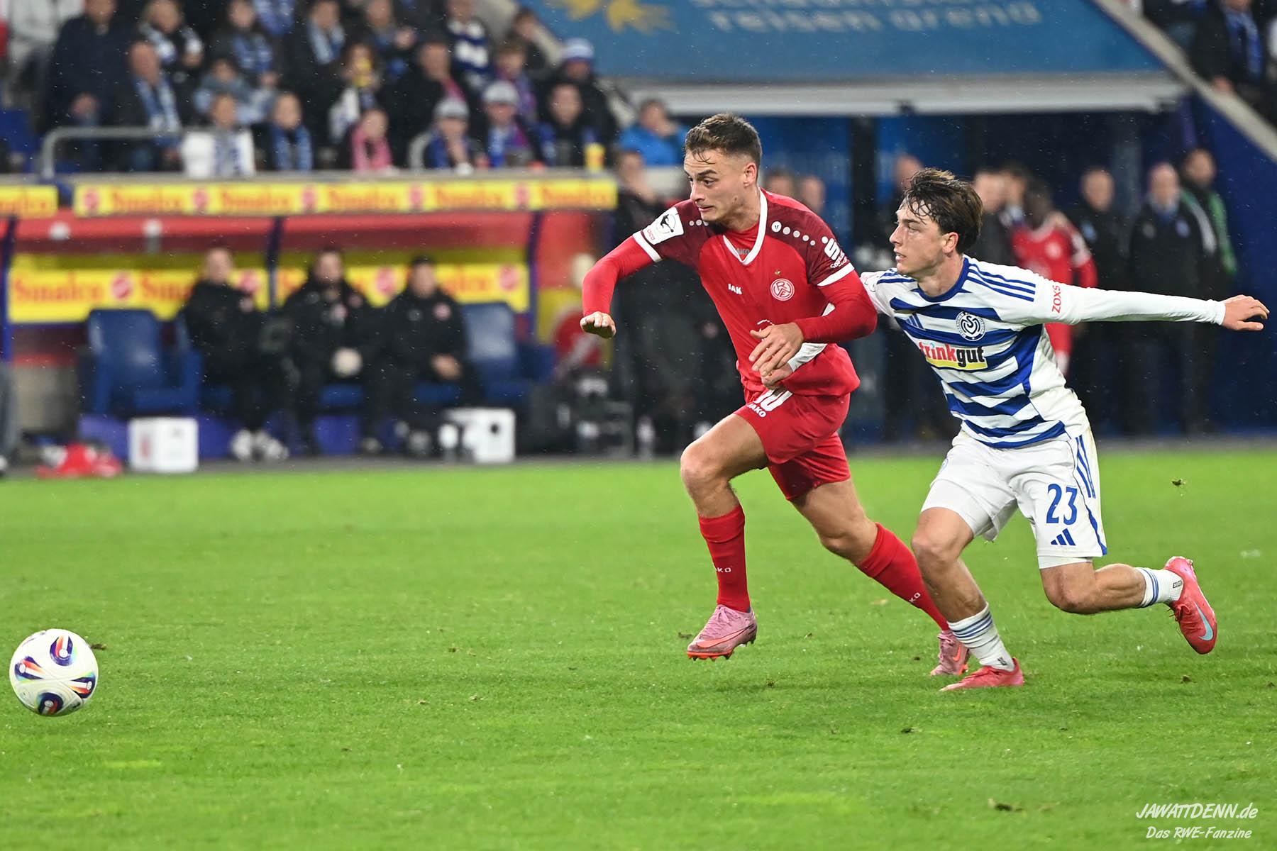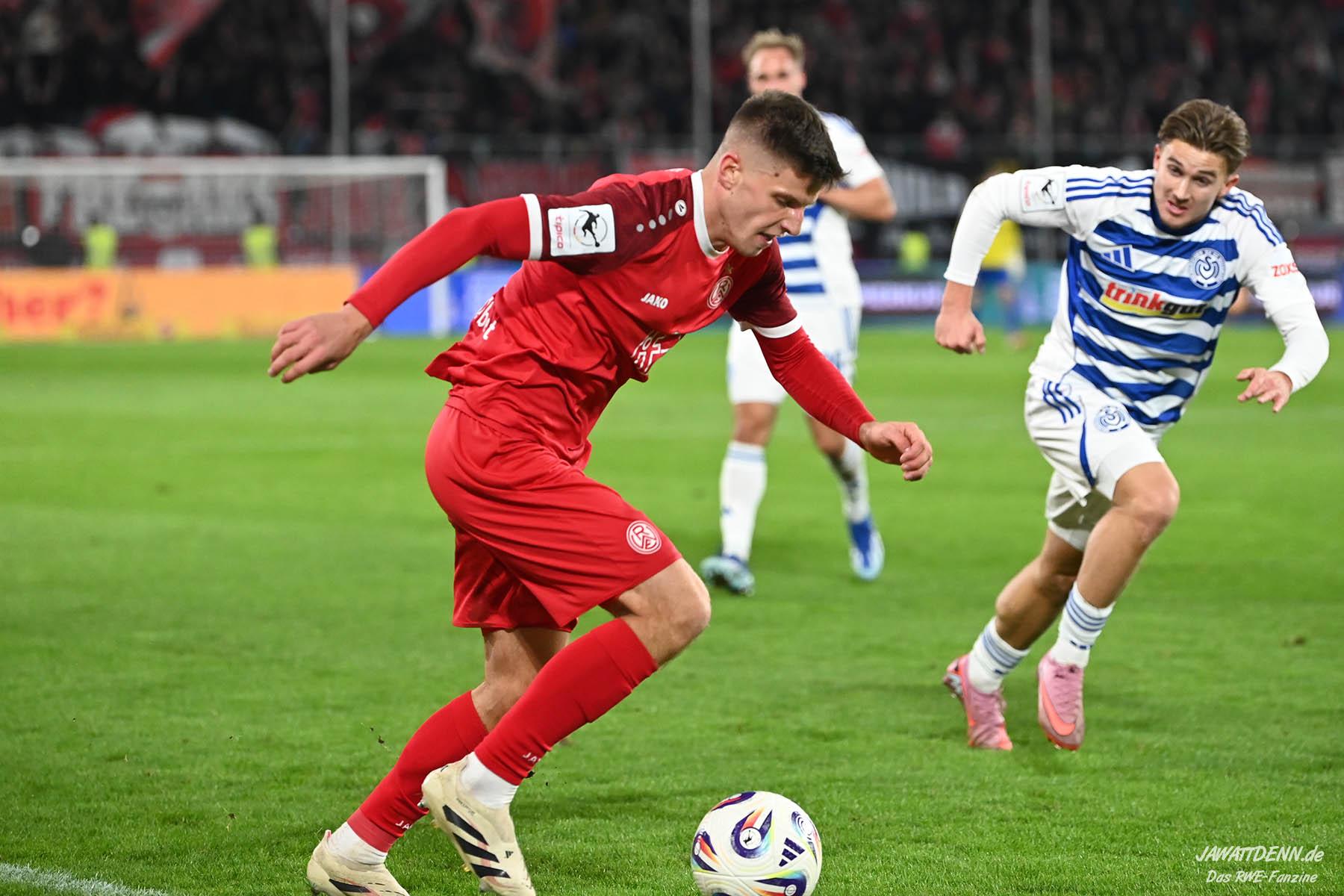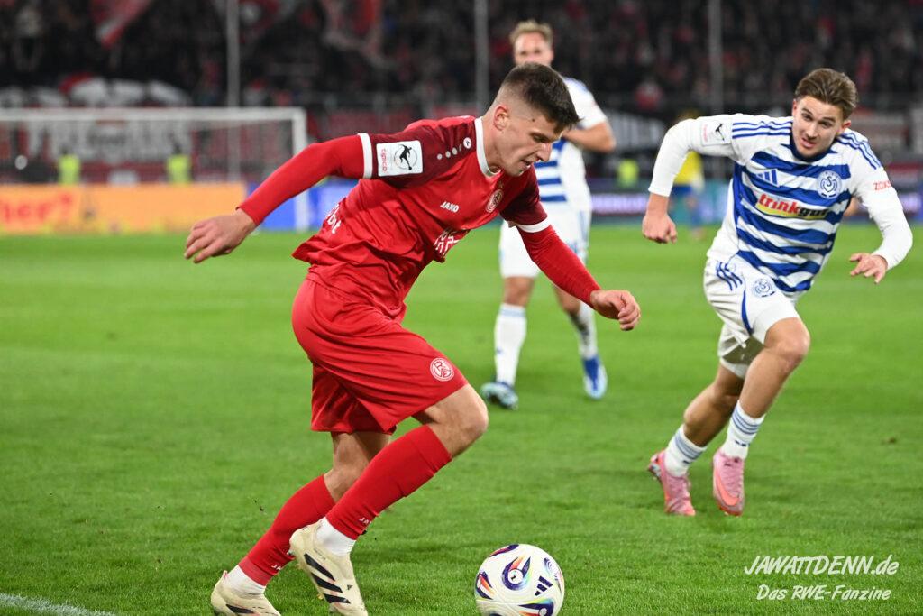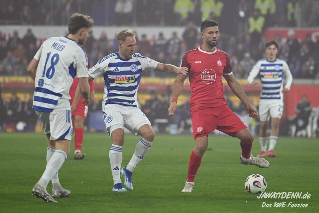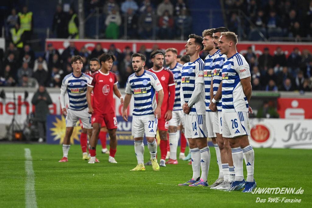 So wurde aus dem MSV im Sommer 24/25 kein normaler Aufsteiger, der sich zurück in die Dritte Liga spielte. Trainer Dietmar Hirsch und Michael Preetz gaben noch vollmundig bekannt, man bleibe bescheiden und setze auf die Mannschaft, die für Stadt und Verein ihre Herzen auf dem Platz gelassen habe. Dies ist aber einmal mehr nur die halbe Wahrheit. Mit Christian Viet und Rasim Bulic kamen zweitligaerfahrene Spieler aus Regensburg, die sich von den Marktwerten in der Dritten Liga gleich oben einreihten. Conor Noß konnte zuvor immerhin in Österreich Erstligaluft schnuppern, bei Florian Krüger bissen sich der letztjährige Relegationsteilnehmer aus Saarbrücken die Zähne aus, ihn aus Belgien dauerhaft loseisen zu können. Die Duisburger Verantwortlichen verfolgen eine kluge Strategie, die zum Durchmarsch in die Liga zwei führen soll.