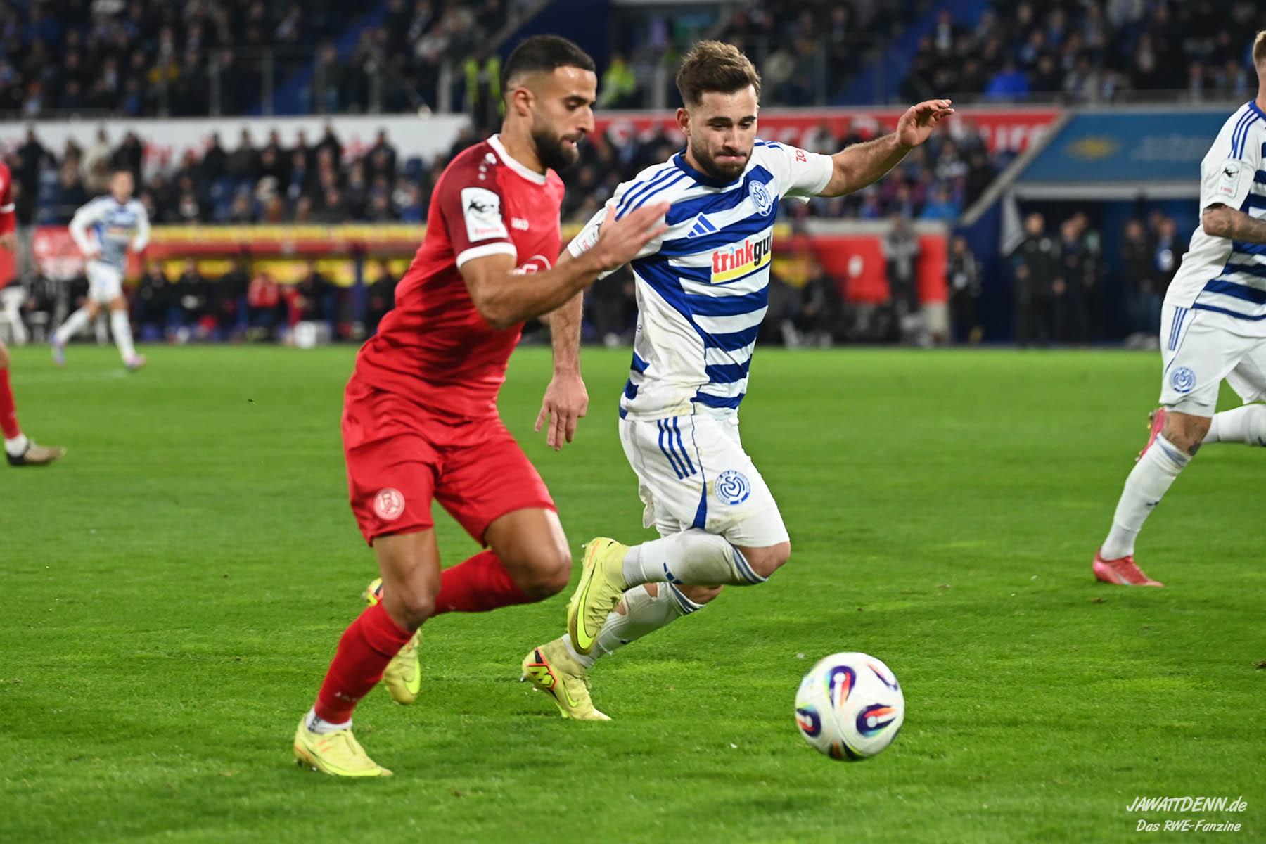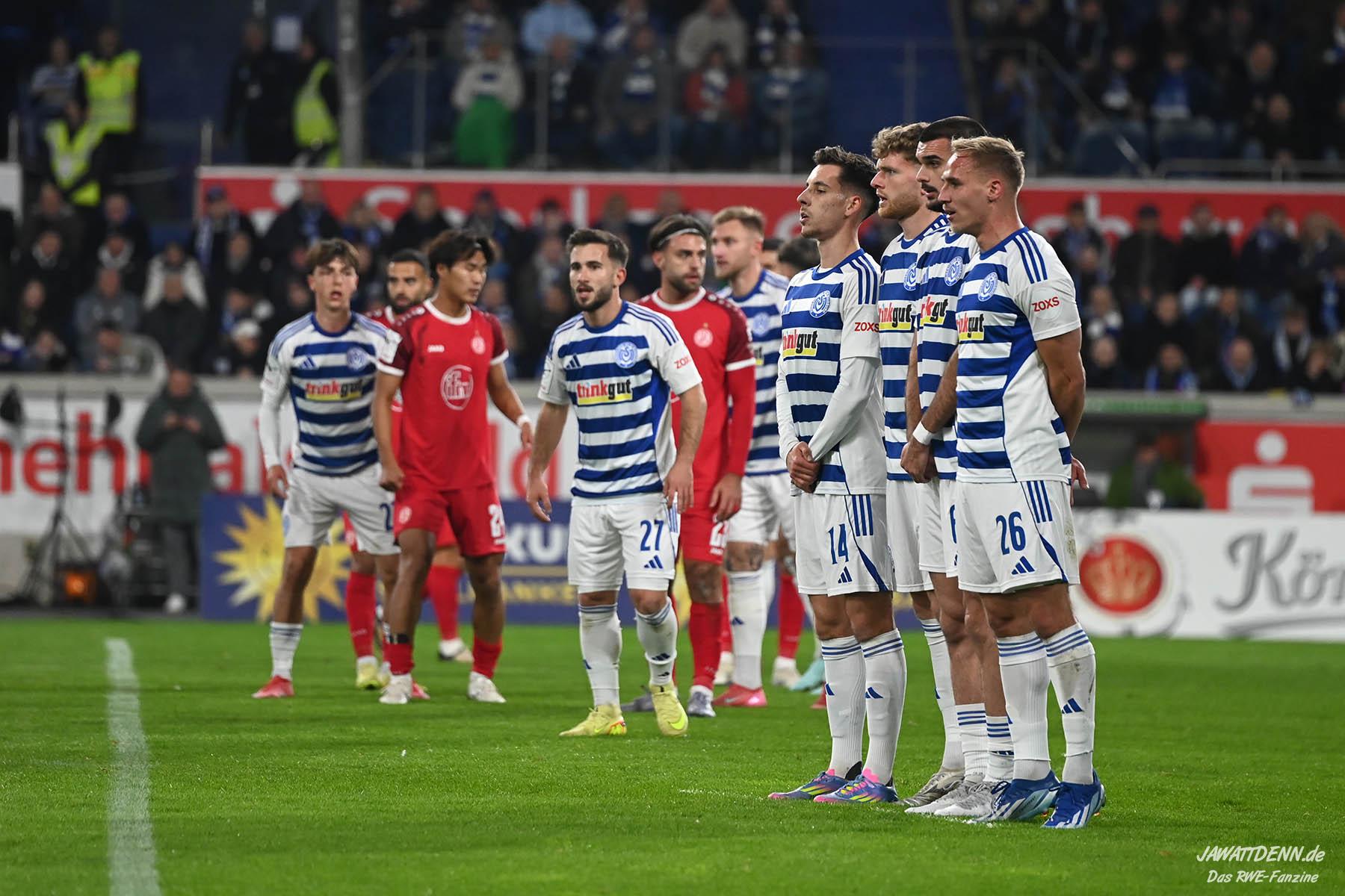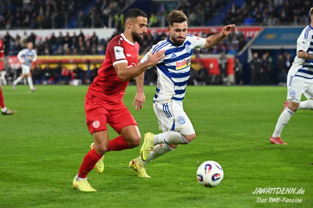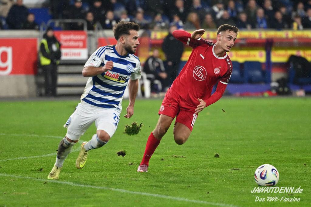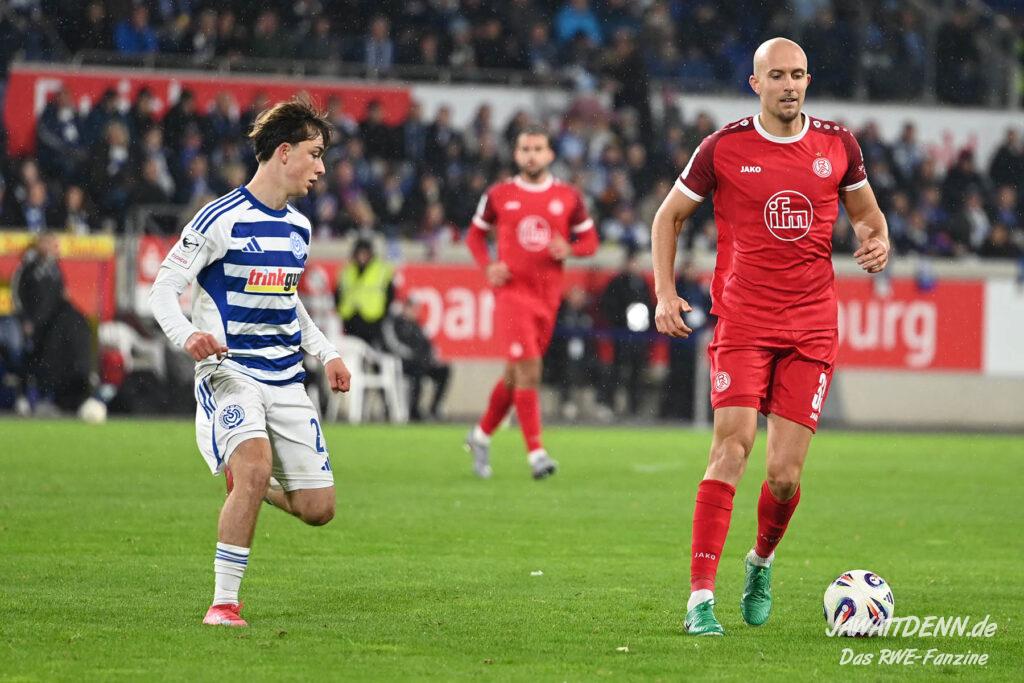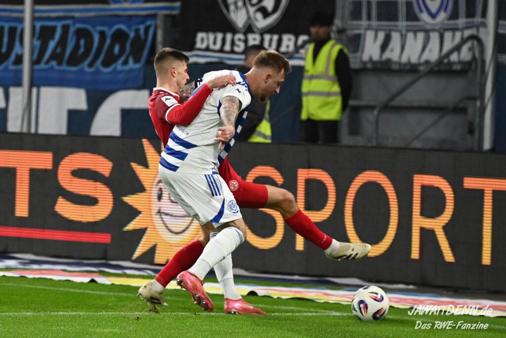 Links droht der Ausfall von Lucas Brumme, der im letzten Heimspiel gegen Köln ausgewechselt werden musste und sich noch über die Woche noch nicht vollständig auskurieren konnte. So ergibt sich eine Startchance für Francis Bouebari, der gegen den MSV besonders gefordert sein wird. Bei der Besetzung des defensiven Mittelfelds wird die Entscheidung von Uwe Koschinat nicht so einfach sein. Gegen einen sehr kampfstarken Gegner wie dem MSV wird ein Spieler vom Typ Klaus Gjasula gefragt sein, der im Pokalfinale gegen die Zebras schon eine ordentliche Partie ablieferte. Aber Tom Moustier, der im Training am Freitag seine Einsatzbereitschaft signalisierte, und Torben Müsel gaben ein starkes Duo gegen Viktoria Köln ab, wären allerdings eher eine spielerische Lösung, die im Derby vielleicht nicht unbedingt gefordert ist. Die Tendenz geht zu einem Einsatz von Klaus Gjasula, der neben Moustier oder Müsel auflaufen darf. Im offensiven Mittelfeld gibt es kein Vorbeikommen an Ahmet Arslan, der endlich in den letzten beiden Pflichtspielen jeweils einmal aus dem Spiel heraus traf. Auch auf den beiden Angriffsseiten scheinen Marvin Obuz und Kaito Mizuta gesetzt zu sein. In der Sturmspitze waren wie bereits erwähnt Ramien Safi und Jannik Mause angeschlagen, möglicherweise ergibt sich hieraus eine Chance für Marek Janssen. Doch hier lässt sich Uwe Koschinat nicht in die Karten schauen, wahrscheinlich muss der Trainer sowieso kurzfristig entscheiden, welcher Stürmer den besten Fitnesszustand für Sonntag hat.