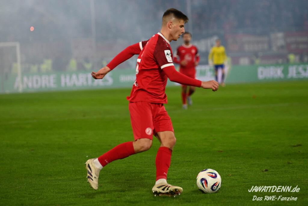 Hierbei sind vor allem zwei Namen zu nennen. Tobias Kraulich avancierte zum besten Mann auf dem Platz zeigte sich ideen- und spielstark, fand immer wieder den gut postierten eigenen Mann bis hin im letzten Drittel. Ein Innenverteidiger, der den Takt angab. Was viele RWE-Fans schon länger wussten, dürfte nun auch Uwe Koschinat hoffentlich endgültig klar sein. Ein Kraulich gehört bei jedem Trainer, der ein Leistungsprinzip nicht nur behauptet, sondern auch umsetzt auf das Feld. Unfassbar, dass Koschinat durch die Verletzung von Michael Schultz quasi dazu gezwungen werden musste.