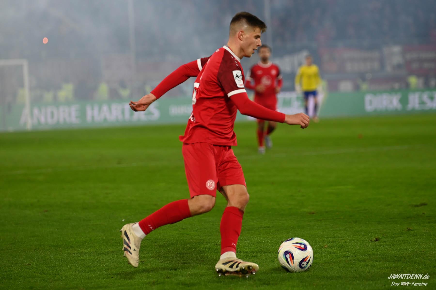 Wenn Defensivspezialisten namentlich als herausragend genannt werden, sagt das umgekehrt auch etwas über die Offensivbemühungen aus. Aus viel Ballbesitz machte RWE vorne wenig, für den Ausgleich musste ein Megapatzer des gegnerischen Torhüters herhalten und obwohl dieser auch danach nicht unbedingt Sicherheit ausstrahlte, wurde Braune nicht weiter durch die Essener gestresst.