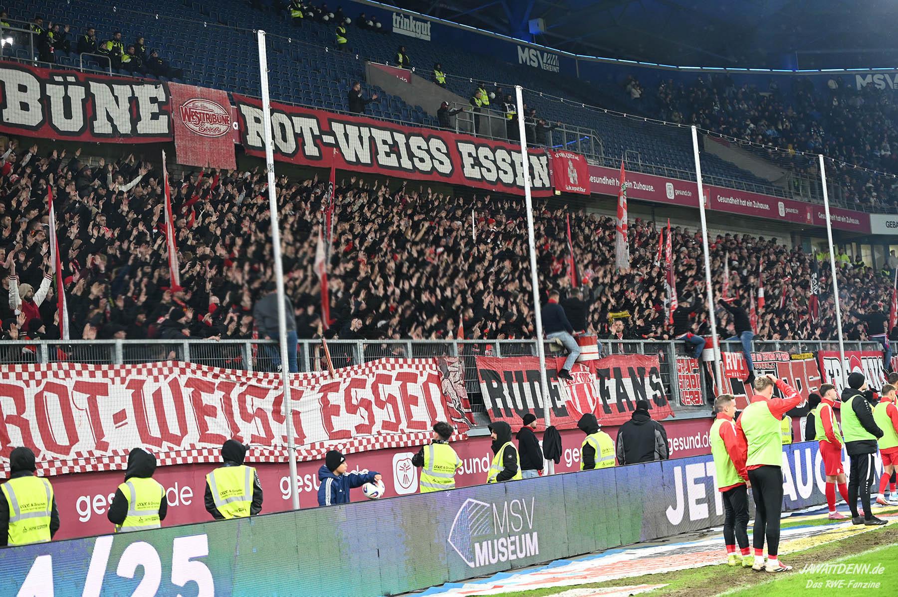 Eine Niederlage im Derby wären beim derzeitigen Saisonverlauf für beide Teams zu verschmerzen. Duisburg spielt bislang eine sehr erfolgreiche Runde, mit der Betrachter von außen nie gerechnet hätten. Auch RWE ist auf dem Weg, von den Punkten her eine starke erste Hälfte der Spielzeit zu zeigen und sich alle Optionen offen zu halten, in den Kampf um die Aufstiegsplätze eingreifen zu können. Dennoch täte es den Fanseelen beider Klubs gut, den Revierrivalen zu schlagen. Duisburg wurde dreimal in Folge von den Essener geschlagen, RWE hatte in den Prestigeduellen gegen Aachen und RWO das Nachsehen. Möge die Mannschaft von der Hafenstraße alles in die Waagschale werfen, um auch diesmal den Zebras zu zeigen, wo es lang geht!