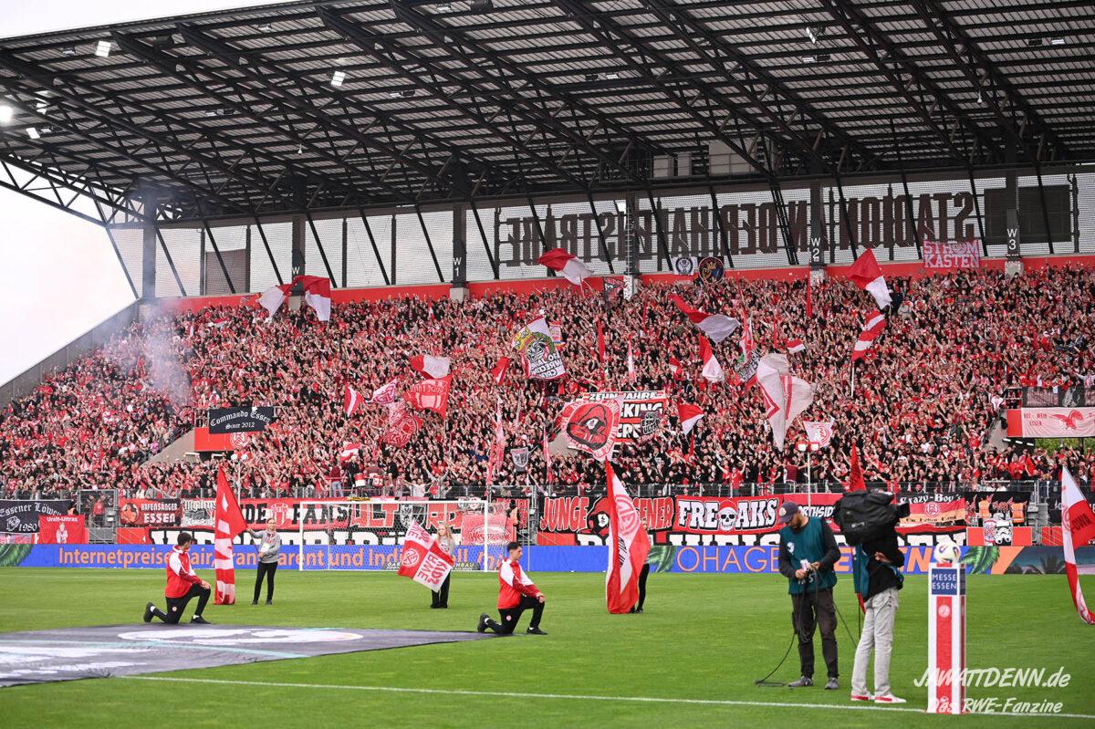 So schnell kann es gehen in Liga drei. Nach den zwei Niederlagen in den Spitzenspielen gegen den VfL Osnabrück und Hansa Rostock sah es ganz danach aus, als ob sich RWE aus dem Aufstiegsrennen verabschieden würde. Doch die beiden Siege gegen Waldhof Mannheim und gegen Hoffenheim 2 lassen den Traum vom Aufstieg in Liga zwei noch am Leben. Die Mannschaft hat eindrucksvoll bewiesen, trotz enormer Stresssituationen wie dem widerlichen Böllerwurf und dem Rückstand bzw. Ausgleich in Hoffenheim jedem Druck standzuhalten. Diese Qualitäten sind im Kampf um den Aufstieg enorm wichtig.
