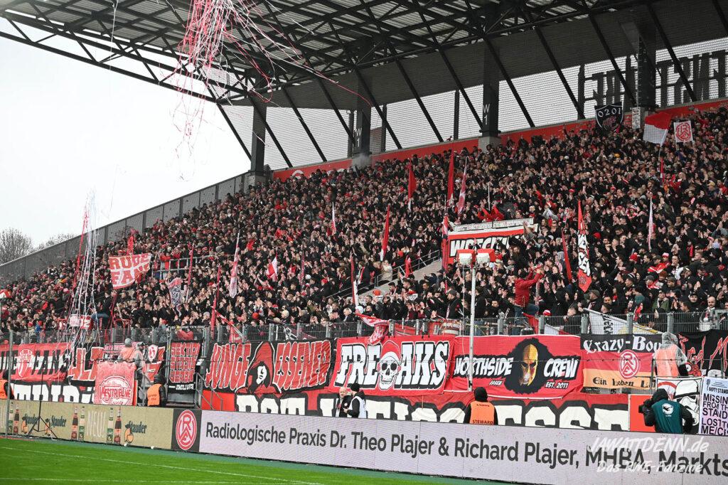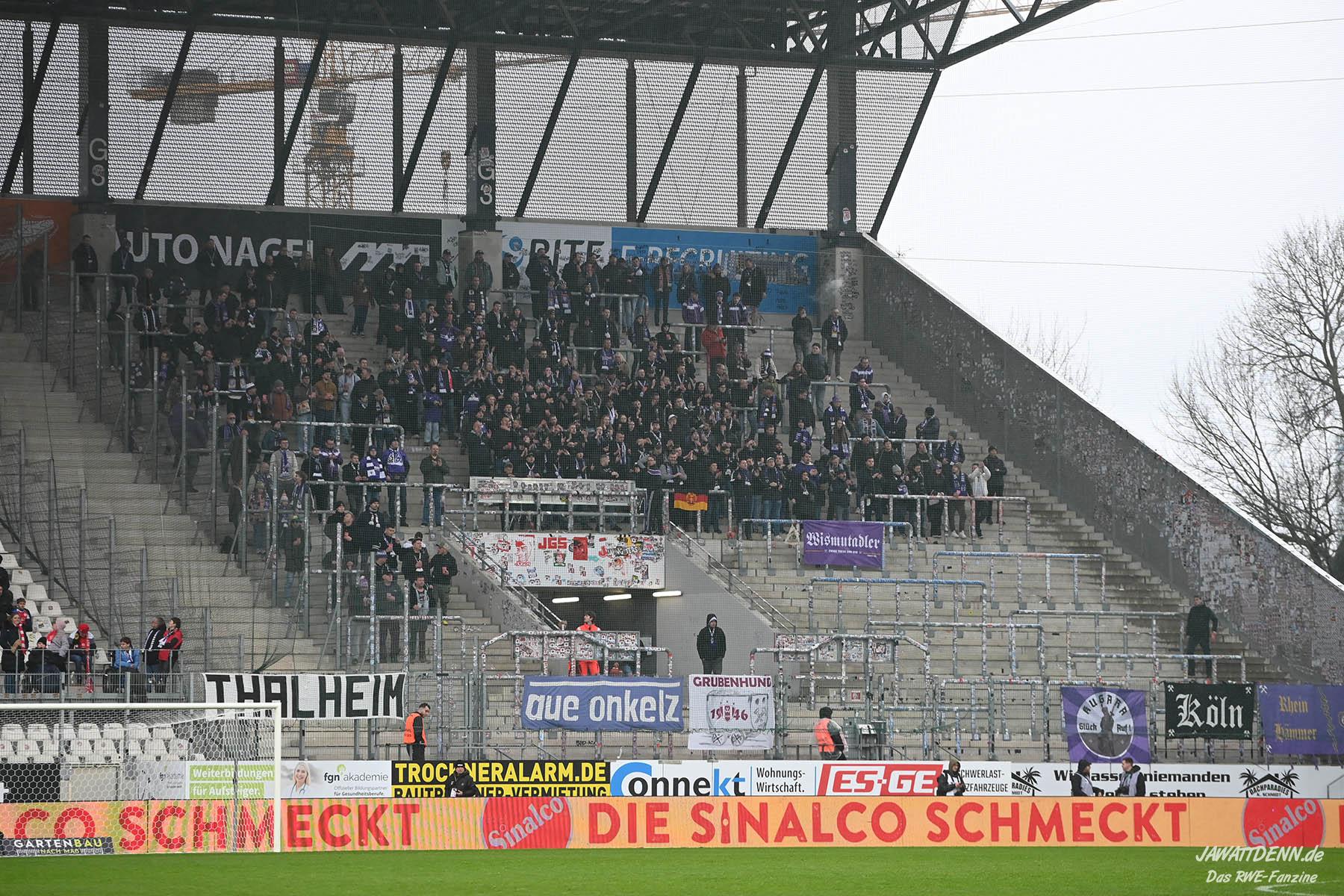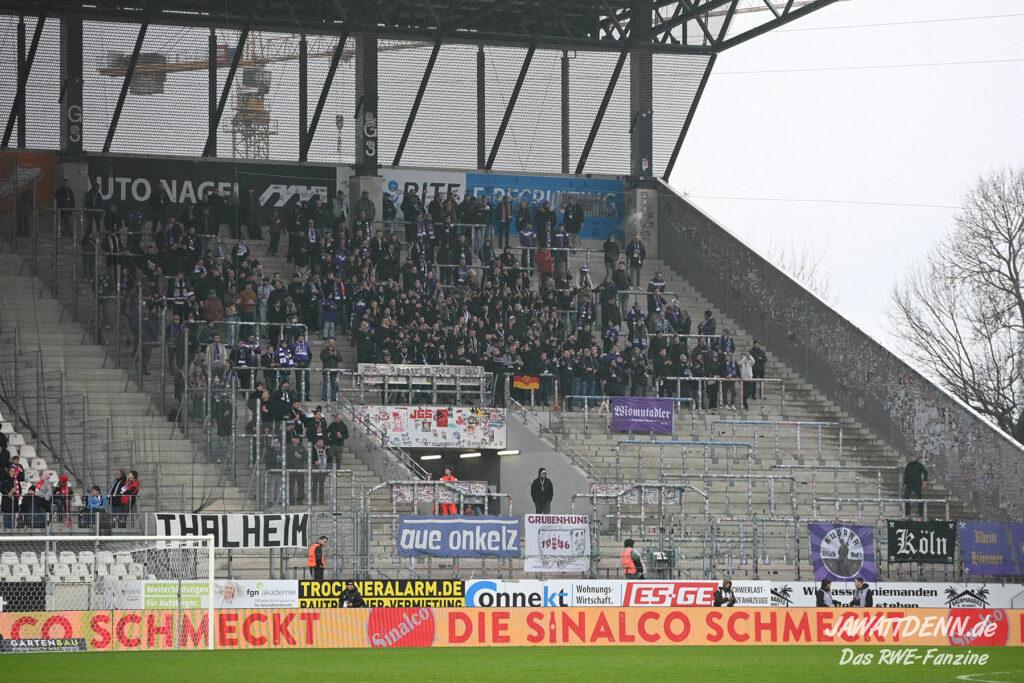 Mit einem deutlichen Sieg gegen Erzgebirge Aue hätte die Hafenstraße noch einmal so richtig angezündet werden können. Dennoch ist die Ausgangssituation durch die drei Siege in Folge hervorragend. Doch Uwe Koschinats Ziel von 54 Punkten aus 30 Spielen ist noch nicht erreicht. Dazu muss aber zunächst Viktoria Köln besiegt werden. Dies ist eine traditionell schwere Aufgabe, der letzte Sieg am Höhenberg datiert aus dem Jahre 2014. Die Kölner werden nach den letzten Niederlagen mit viel Wut im Bauch spielen und sich darauf freuen, den Essenern in die Aufstiegssuppe spucken zu wollen. Die Unterstützung der Zuschauer ist dafür den Essenern auf der gehobenen Bezirkssportanlage gewiss. Wie in dem Aufruf der Aktiven Fanszene beschrieben, ist das Ziel trotz mancher Dellen im Spiel auf dem Rasen nur gemeinsam möglich. Dafür wäre ein weiterer Sieg in Köln vor dem Derby gegen den MSV ein wichtiger Faktor. Packen wir es gemeinsam an!