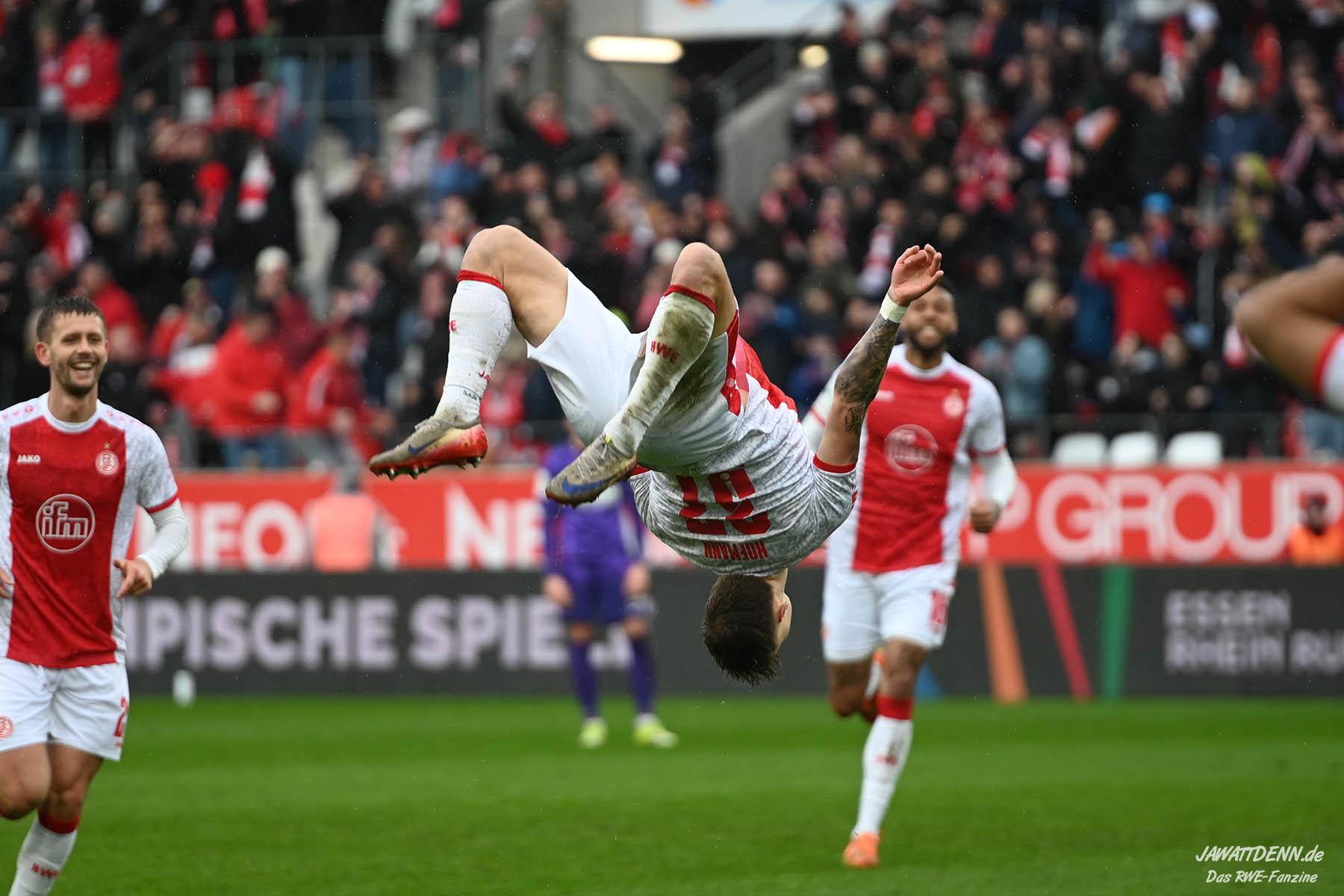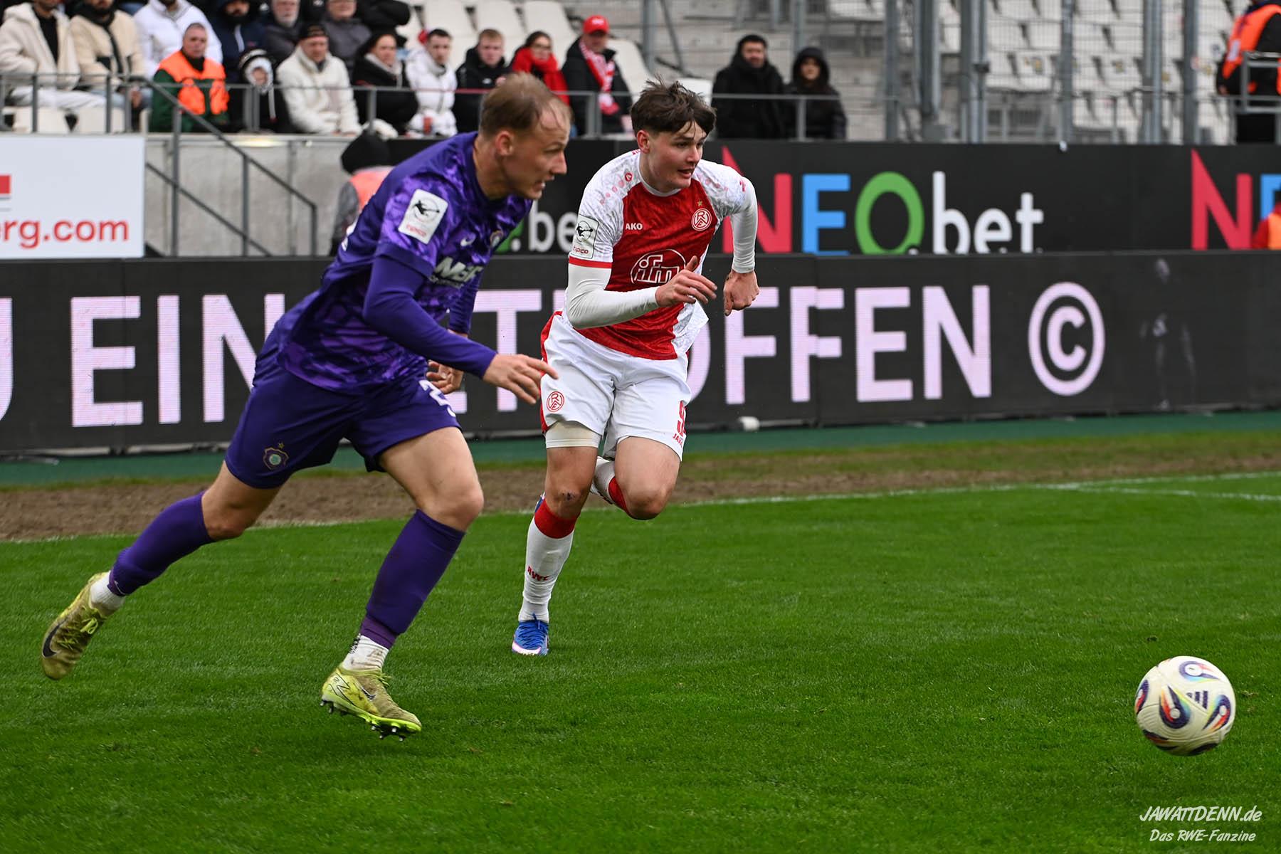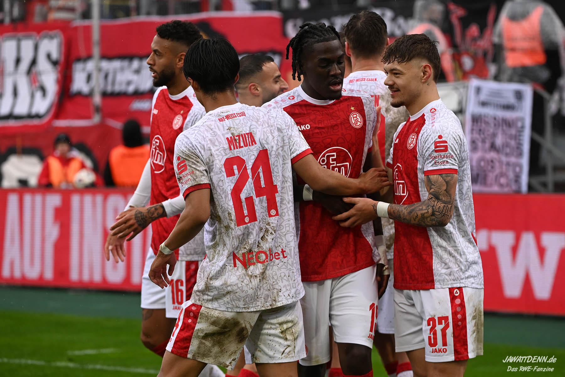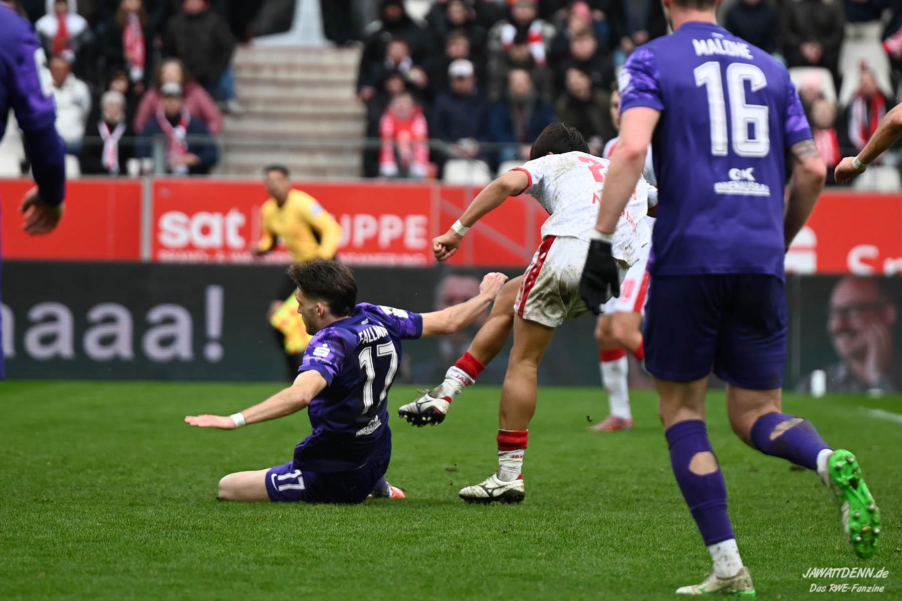 Aufstiegstraum vs. Abstiegsalbtraum – Am Ende siegt der Aufstiegstraum. Mit 4:2 gewinnt RWE gegen die von Christoph Dabrowski trainierten Auer. Neben Traumtoren auf RWE-Seite, gab es eine echt schwache zweite Halbzeit, ehe Mizuta mit dem 4:2 den Schlusspunkt setzte. Unsere Galerie und der Spielbericht sind online.