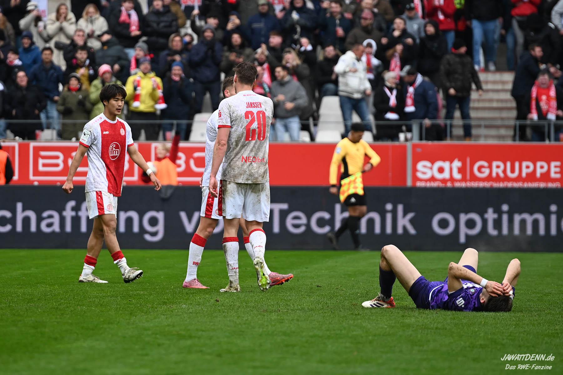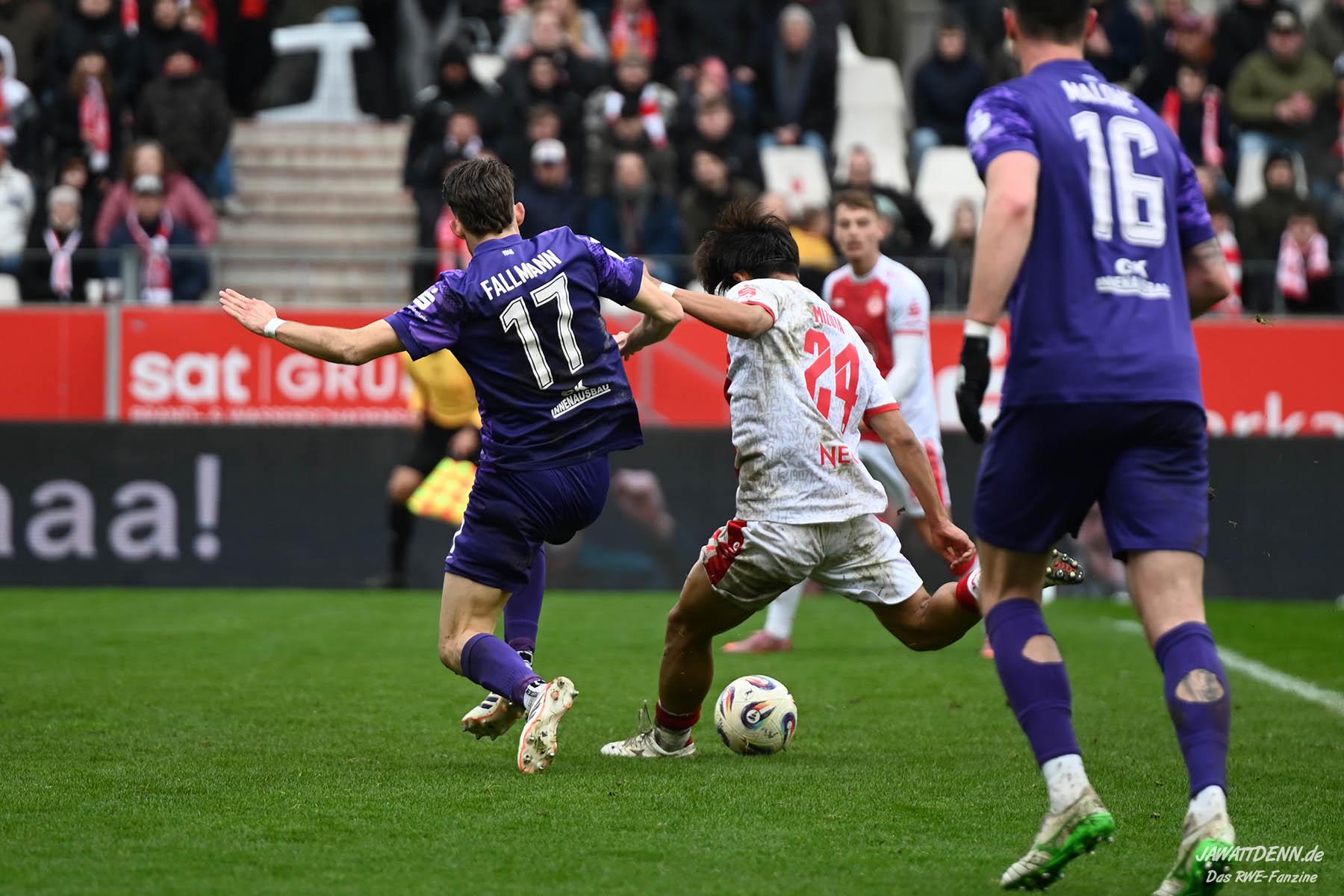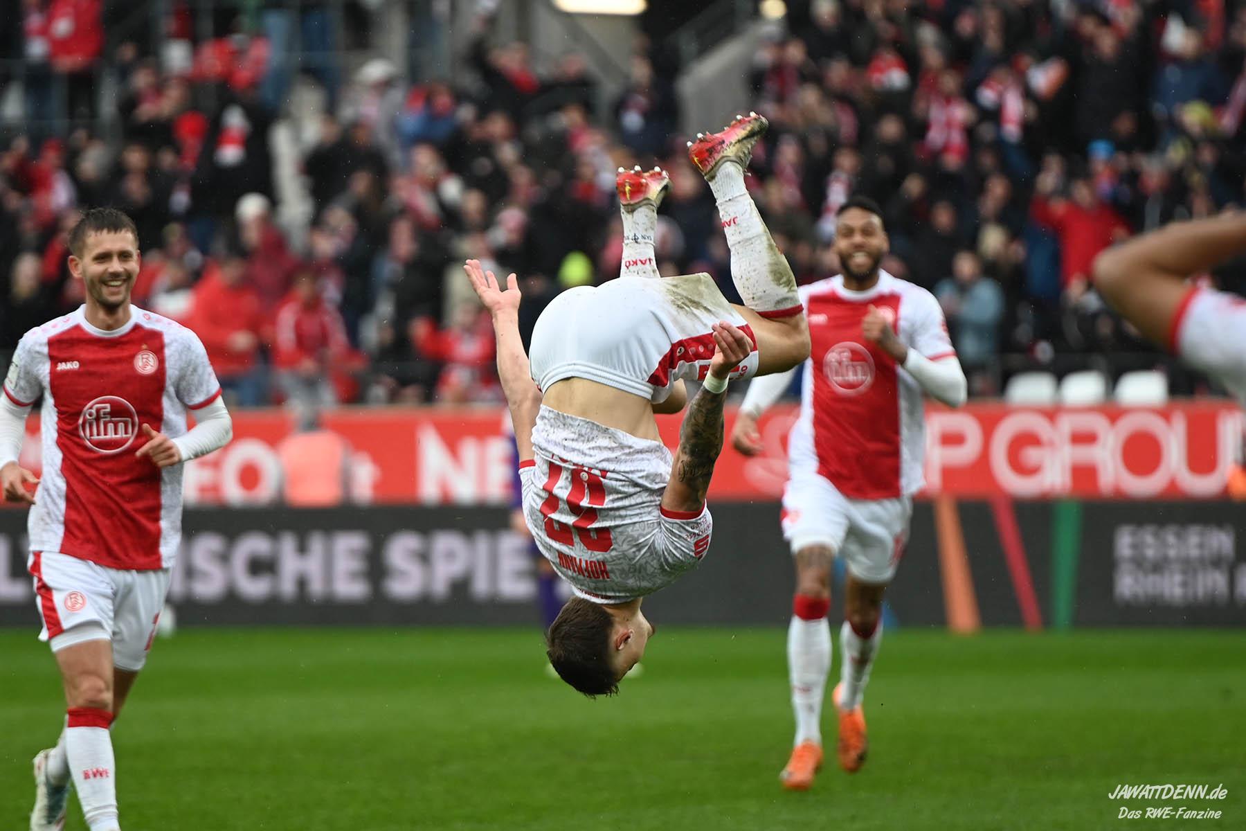 Aufstiegstraum vs. Abstiegsalbtraum – Am Ende siegt der Aufstiegstraum. Mit 4:2 gewinnt RWE gegen die von Christoph Dabrowski trainierten Auer. Neben Traumtoren auf RWE-Seite, gab es eine echt schwache zweite Halbzeit, ehe Mizuta mit dem 4:2 den Schlusspunkt setzte. Unsere Galerie und der Spielbericht sind online.