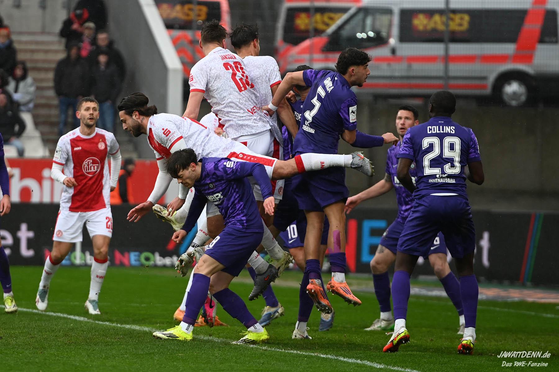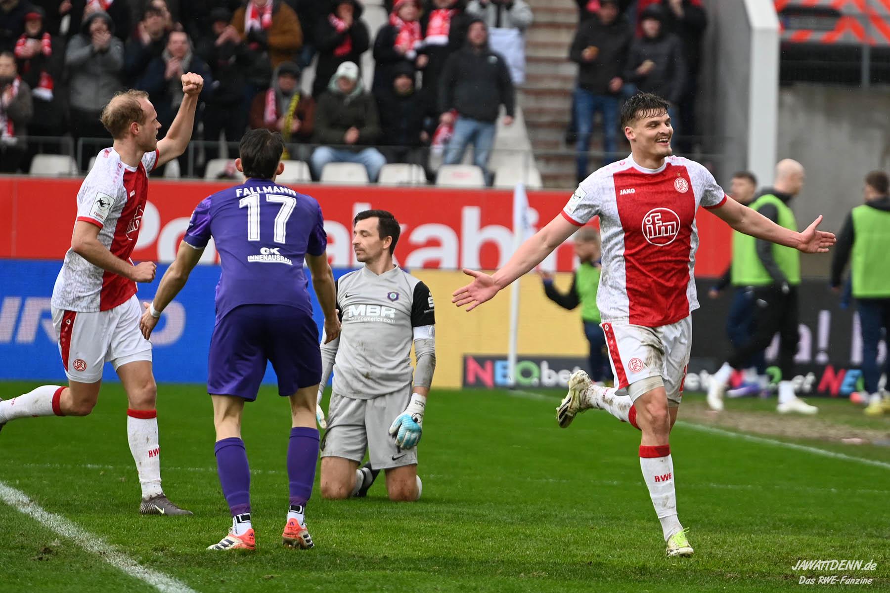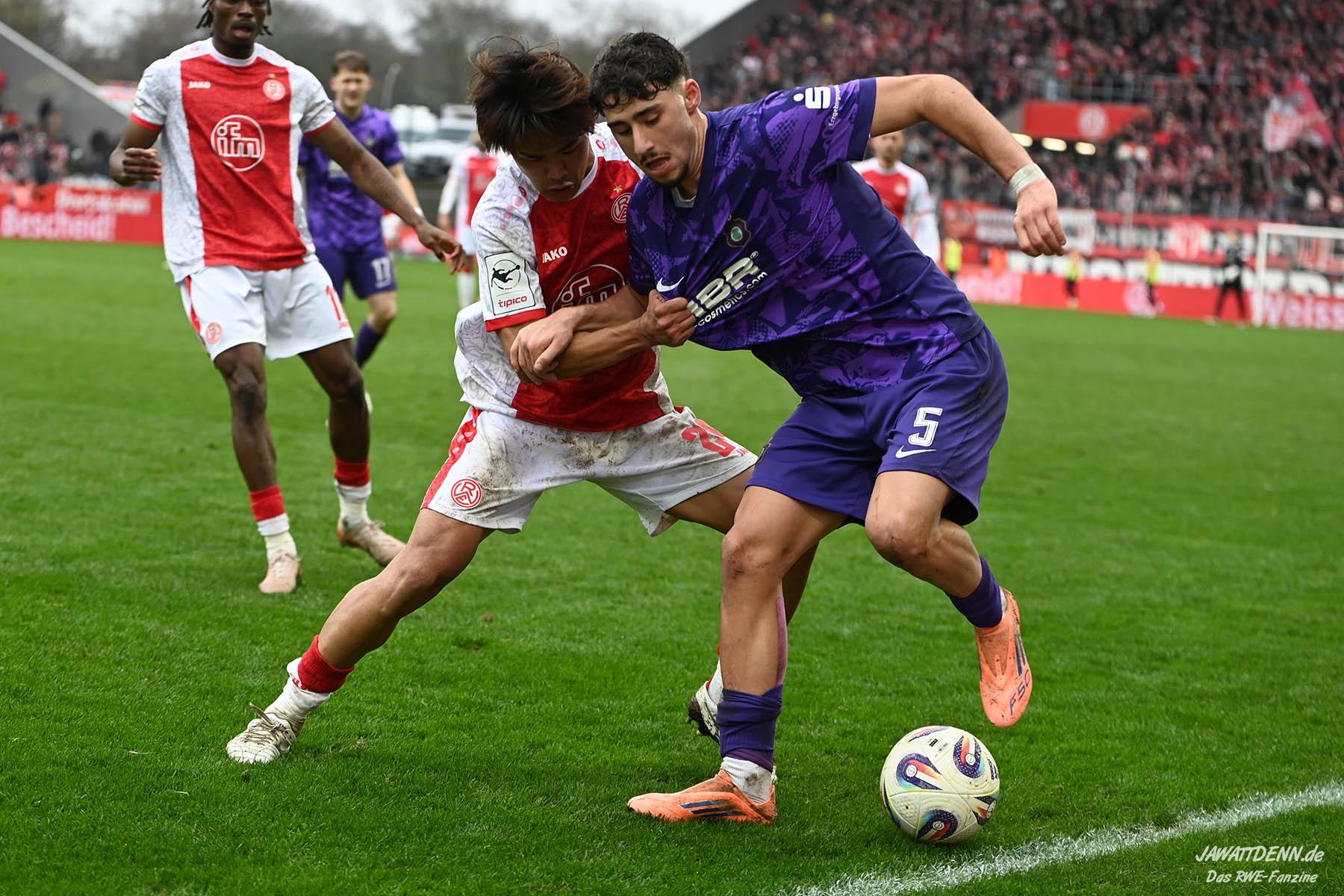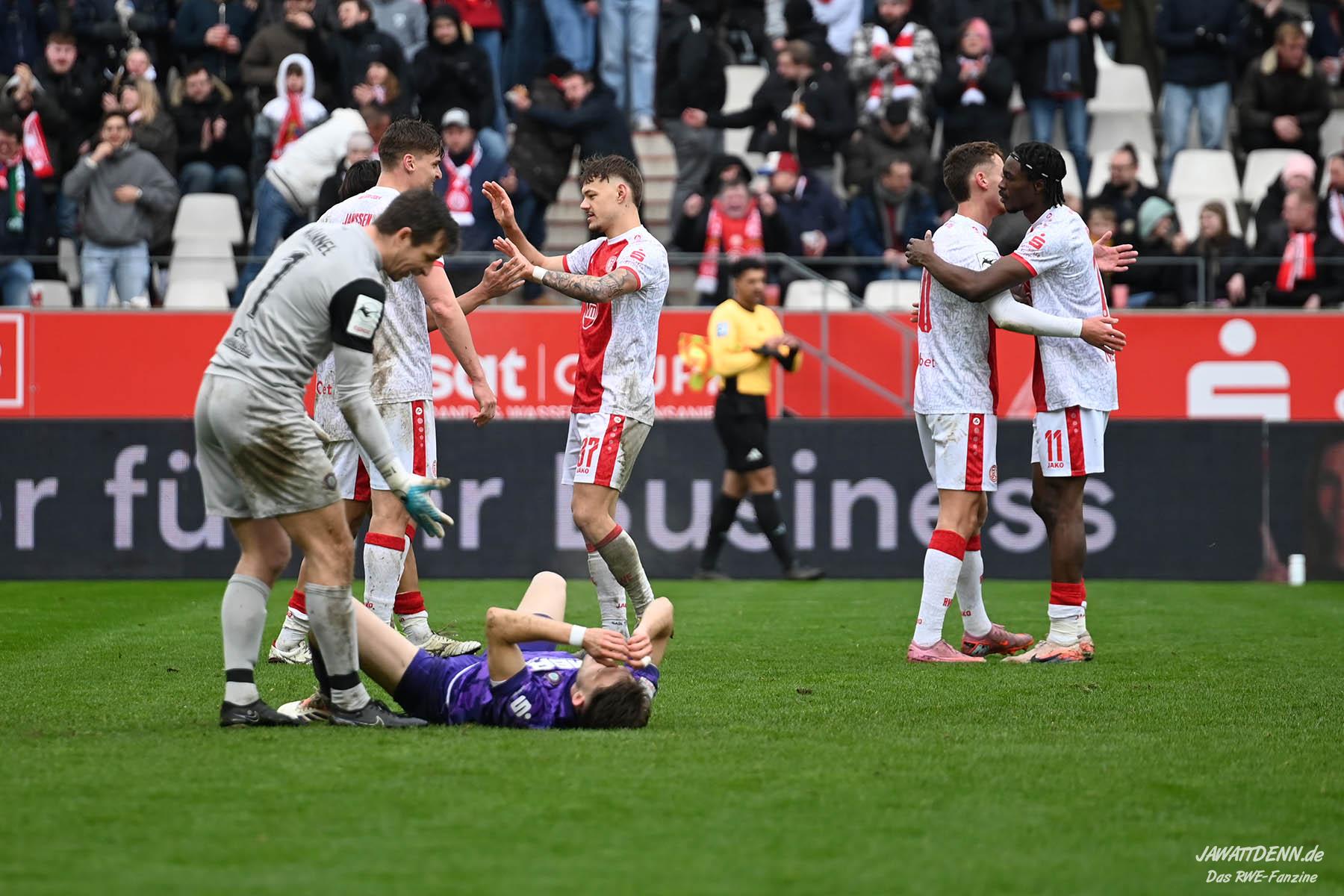 Aufstiegstraum vs. Abstiegsalbtraum – Am Ende siegt der Aufstiegstraum. Mit 4:2 gewinnt RWE gegen die von Christoph Dabrowski trainierten Auer. Neben Traumtoren auf RWE-Seite, gab es eine echt schwache zweite Halbzeit, ehe Mizuta mit dem 4:2 den Schlusspunkt setzte. Unsere Galerie und der Spielbericht sind online.