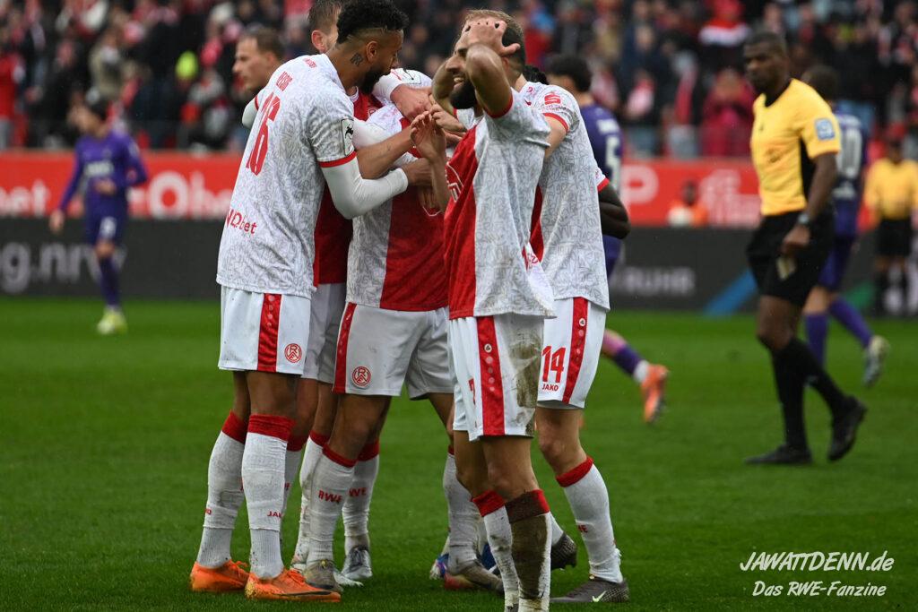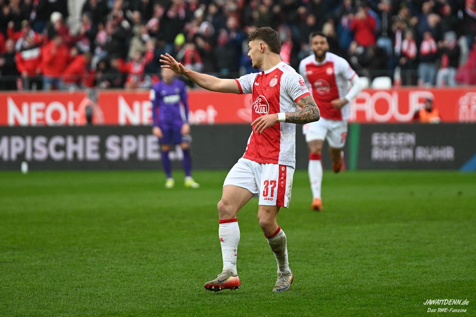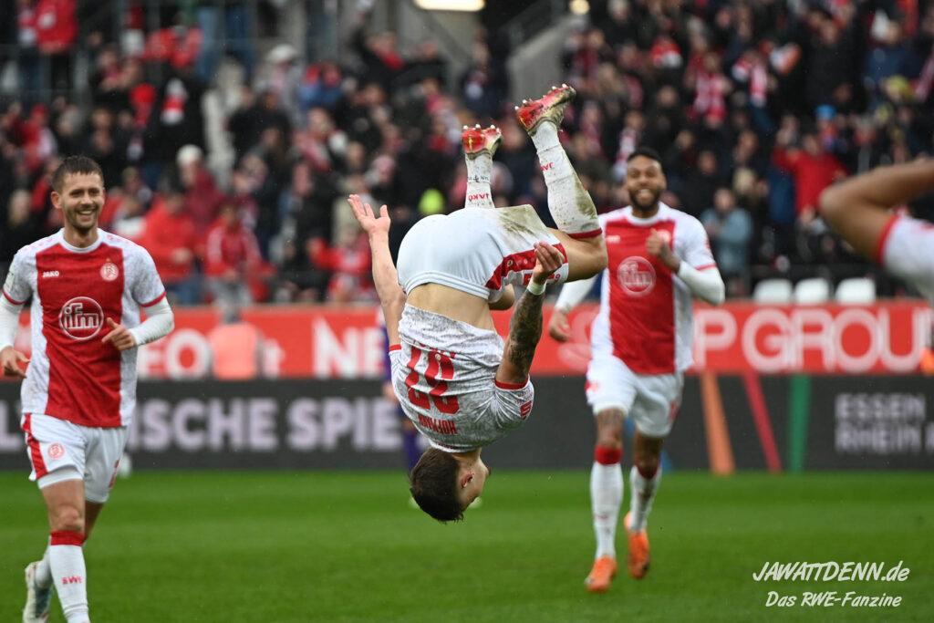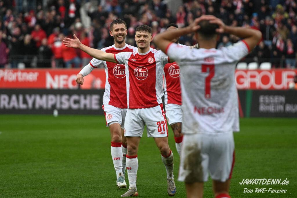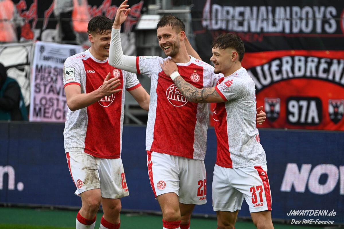 Erst furios, dann zittrig – RWE besiegt Kellerkind Aue mit 4:2