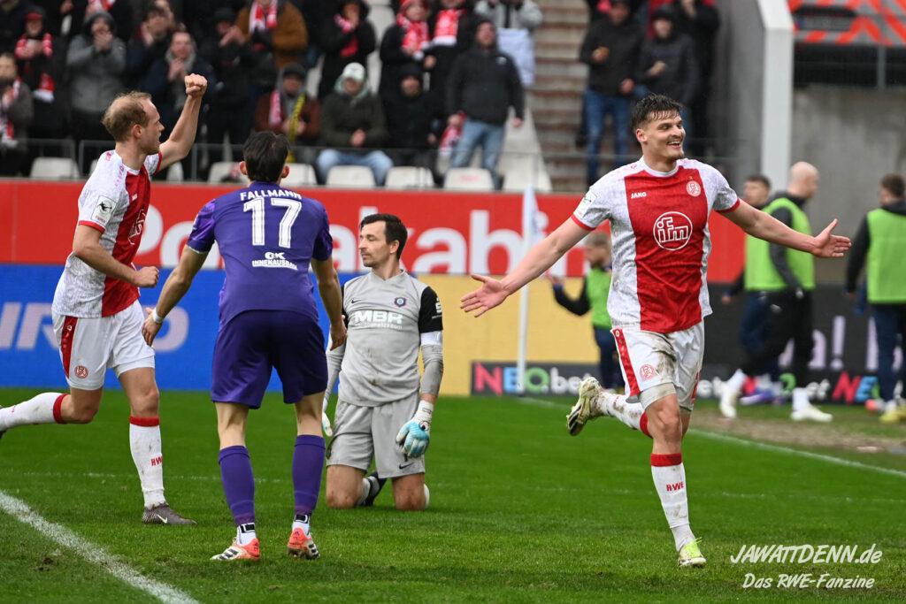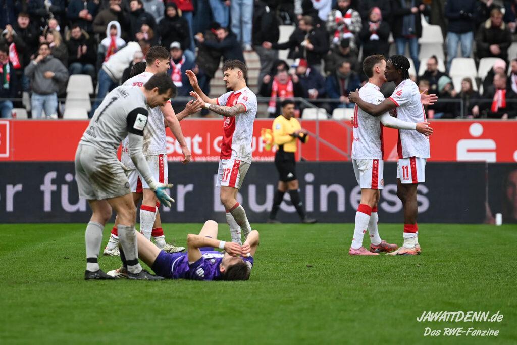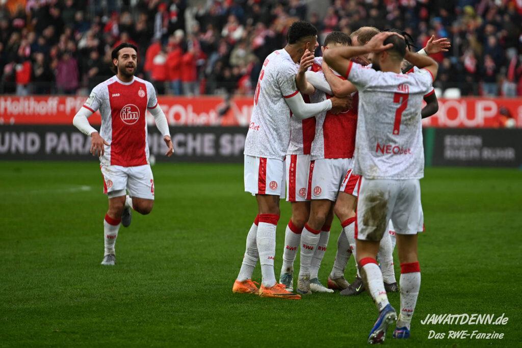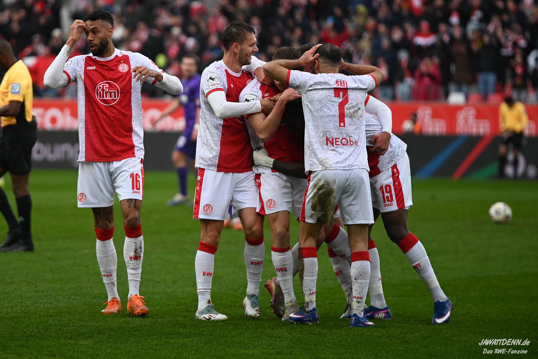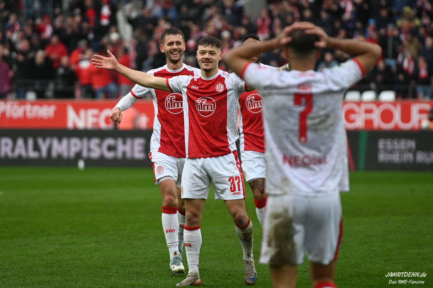 Erst furios, dann zittrig – RWE besiegt Kellerkind Aue mit 4:2