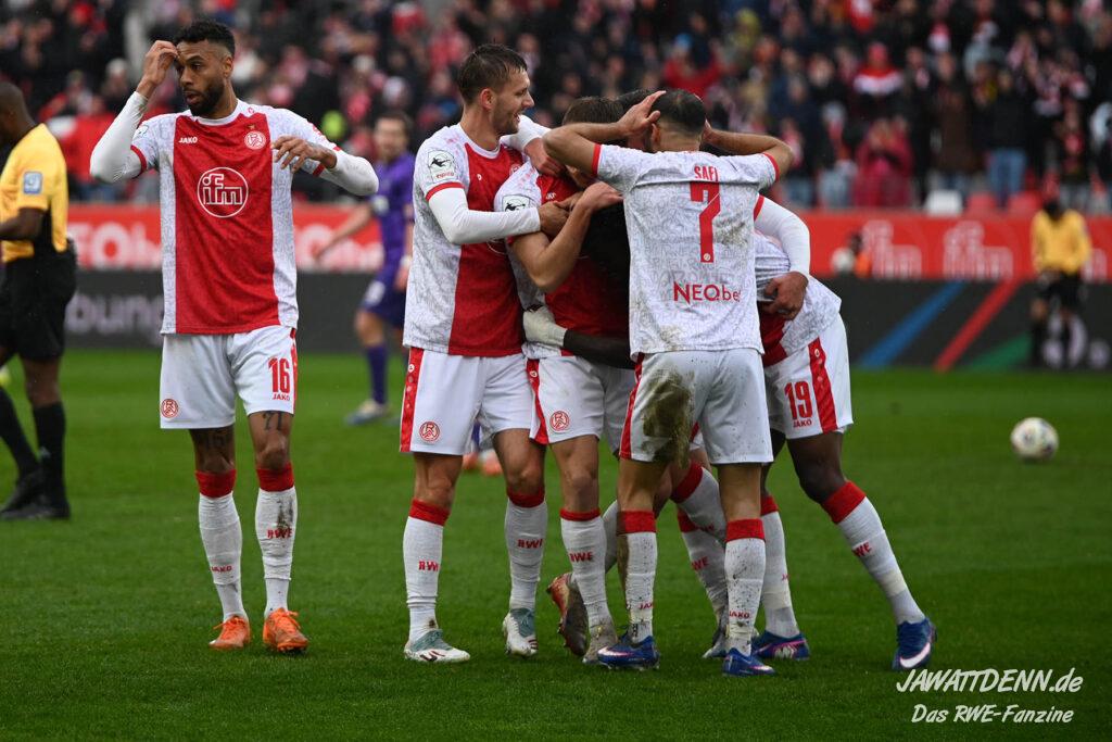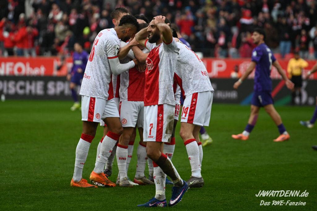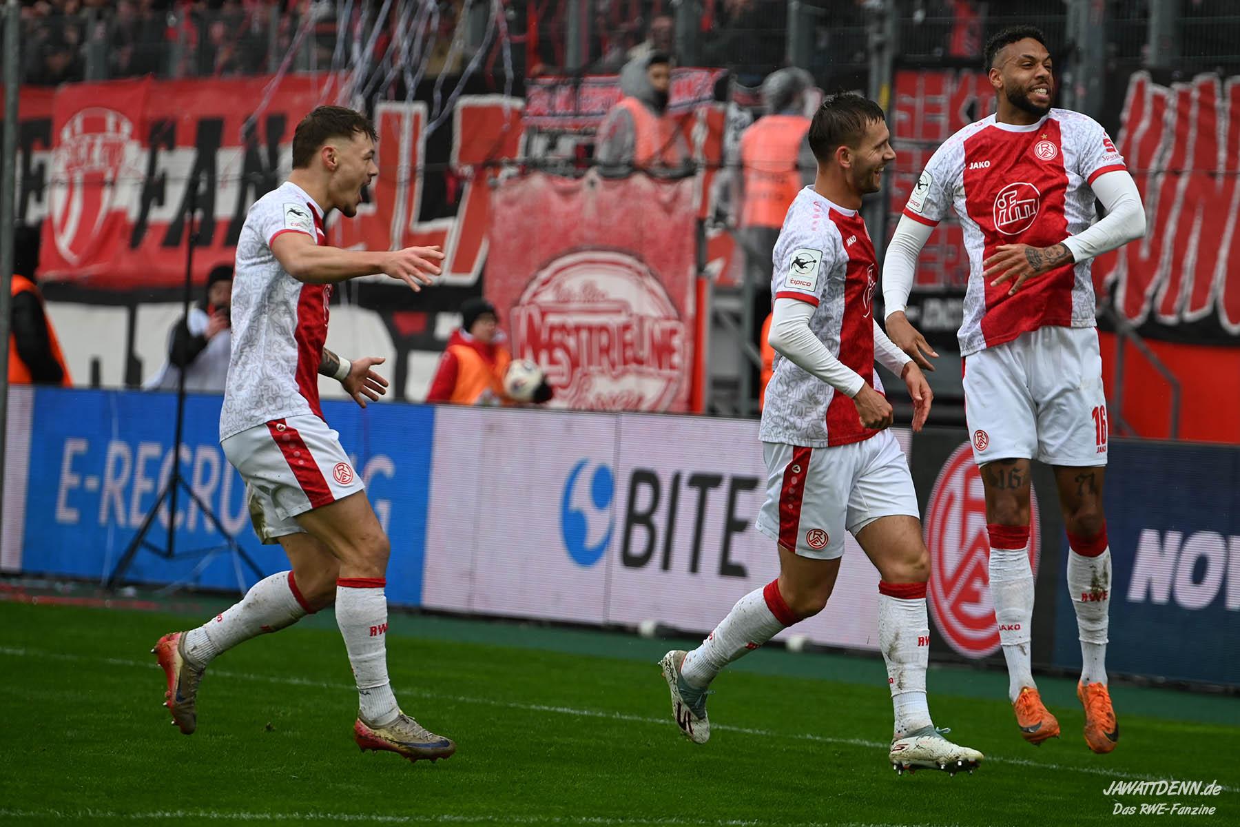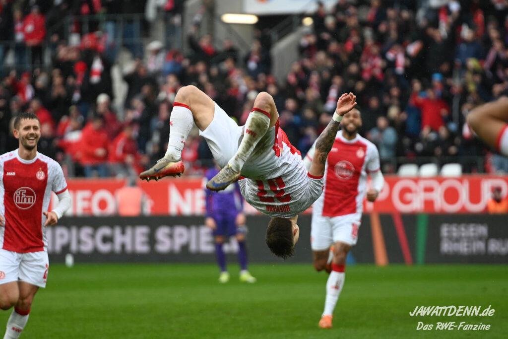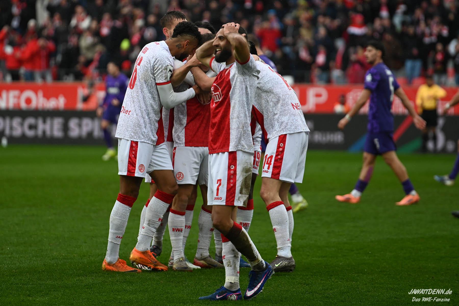 Erst furios, dann zittrig – RWE besiegt Kellerkind Aue mit 4:2