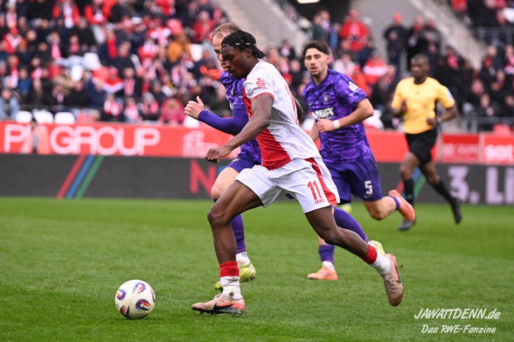So schnell kann es gehen in Liga 3. Nach den zwei Niederlagen in den Spitzenspielen gegen den VfL Osnabrück und Hansa Rostock sah es ganz danach aus, als ob sich RWE aus dem Aufstiegsrennen verabschieden würde. Doch die beiden Siege gegen Waldhof Mannheim und gegen Hoffenheim 2 lassen den Traum vom Aufstieg in Liga zwei noch am Leben. Die Mannschaft hat eindrucksvoll bewiesen, trotz enormer Stresssituationen wie dem widerlichen Böllerwurf und dem Rückstand bzw. Ausgleich in Hoffenheim jedem Druck standzuhalten. Diese Qualitäten sind im Kampf um den Aufstieg enorm wichtig.