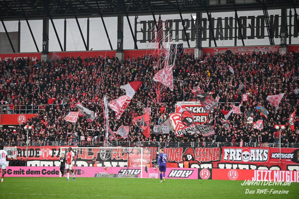 Damit schob sich RWE an die Konkurrenz aus Duisburg vorbei, die von der Kogge aus Rostock versenkt wurde. Angesichts des baldig steigenden Derbys eine sehr gute Ausgangsposition für die Essener, die mit einem derzeitigen Rückstand von nur einem Punkt auf den Tabellenzweiten Cottbus auch noch Druck auf einen direkten Aufstiegsplatz machen können. Leider bleibt die mangelnde Stabilität der Defensive über die gesamte Spieldauer von neunzig Minuten weiterhin ein Thema.
