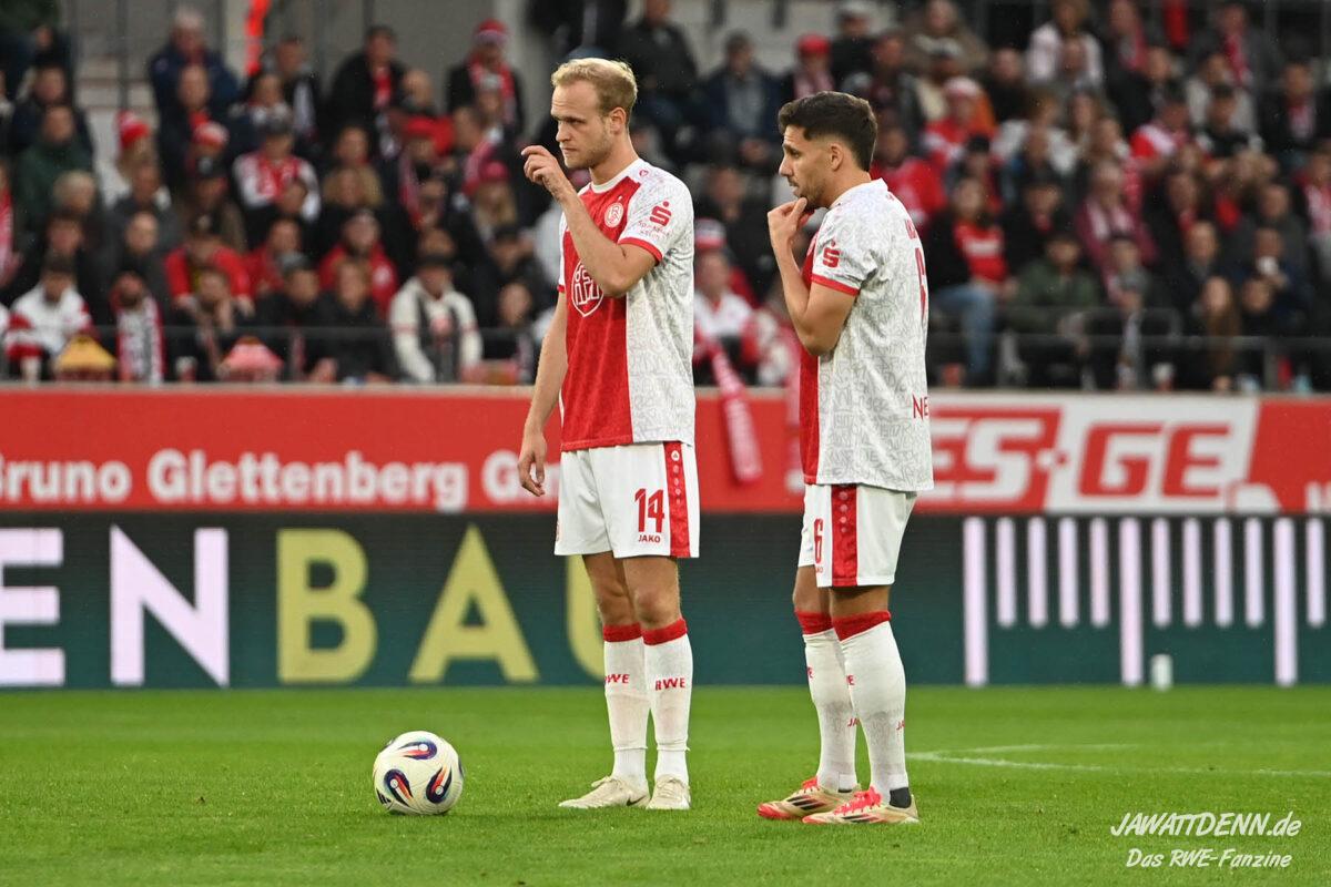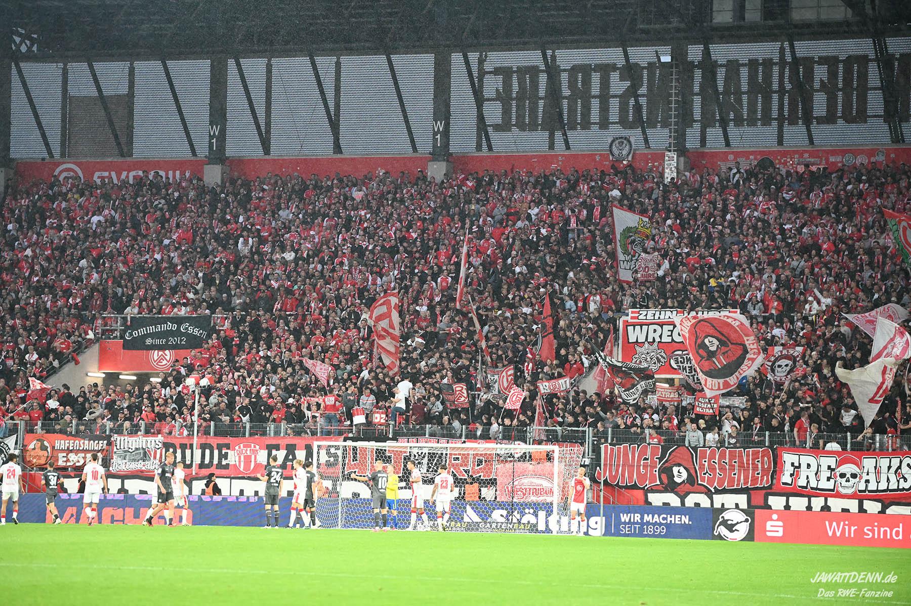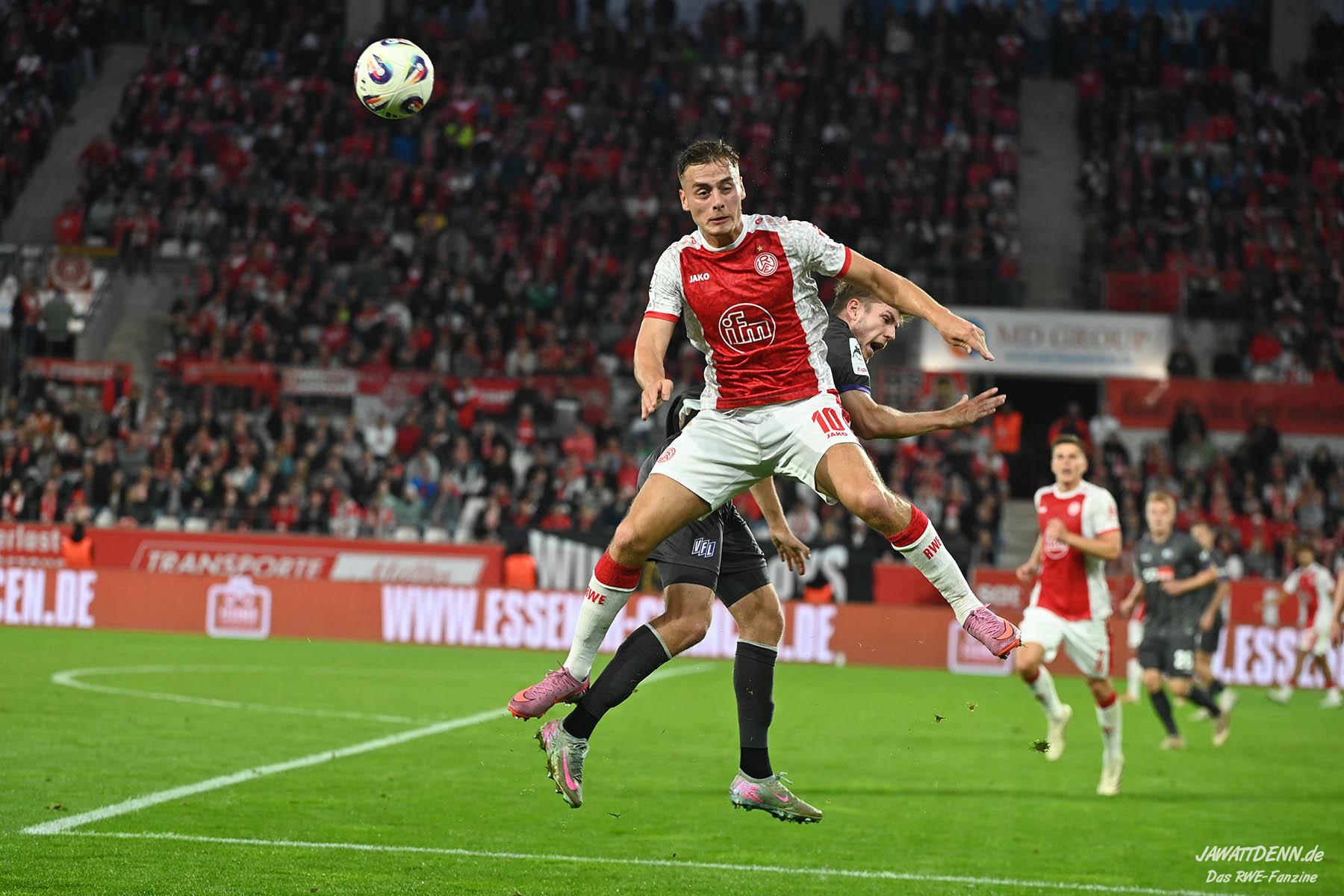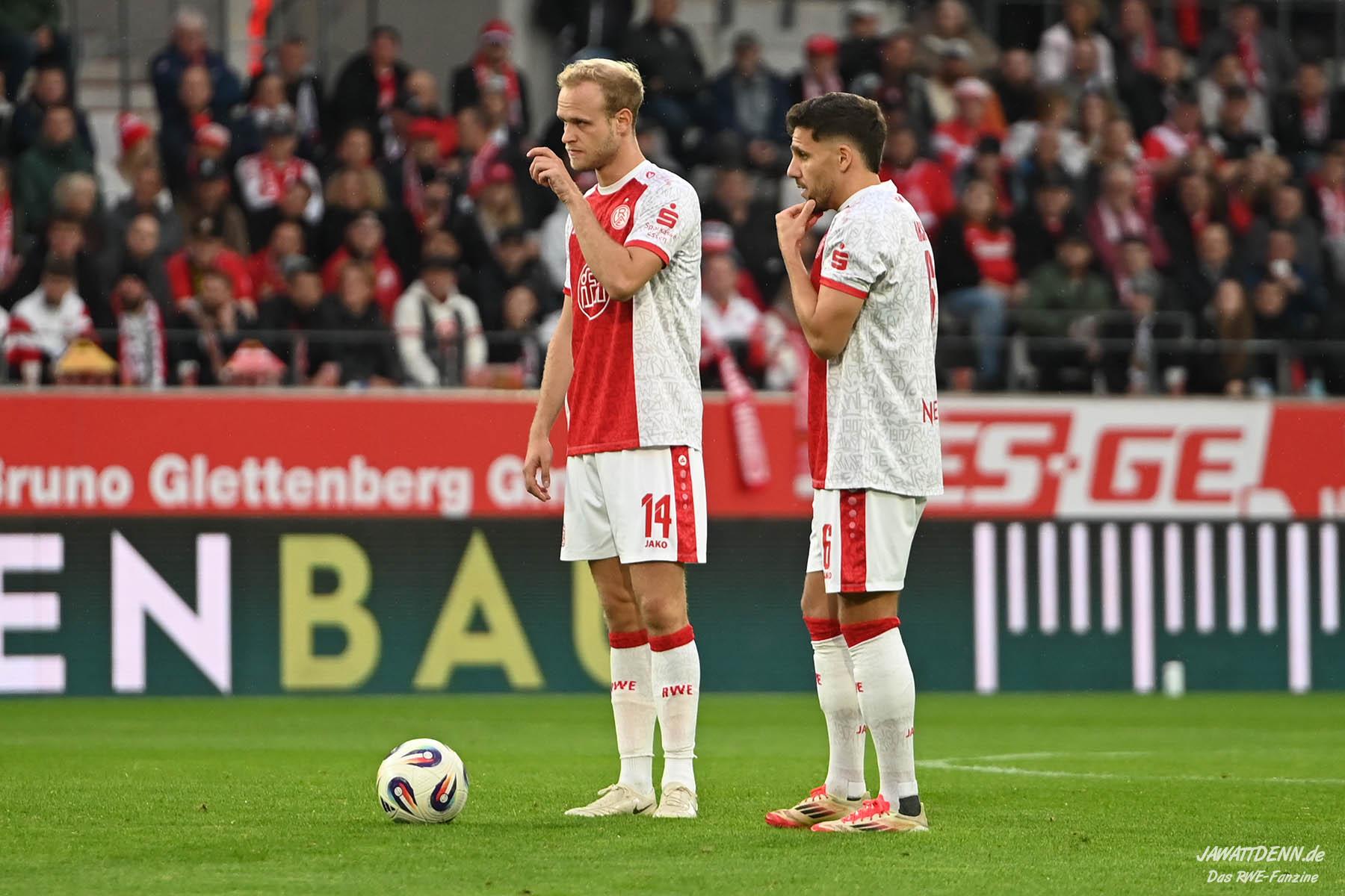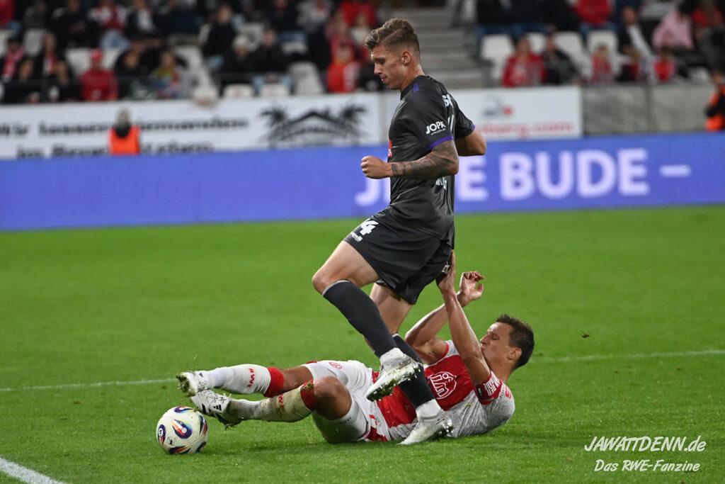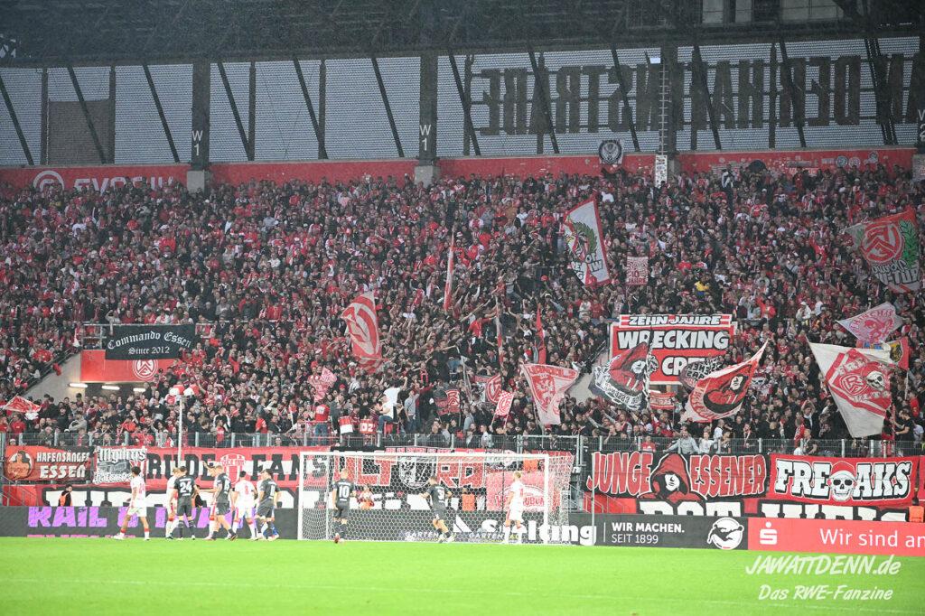 Alle kritischen Stimmen wären auch sicherlich verstummt, hätte RWE dieses Spiel mit einem eigenen Treffer gewonnen – doch obgleich der verursachte Elfmeter von Franci Bouebari sicherlich streitbar war, machte sich RWE erneut selbst das Leben schwer und brachte einen über weite Strecken offensiv abgemeldeten Gegner durch einen Elfmeter ins Spiel und sich selbst unter Druck. Vier verursachte Elfmeter in zwei Heimspielen sind rekordverdächtig und in den letzten fünf Pflichtspielen geriet RWE viermal in Rückstand. Im sechsten Saisonspiel gab es den zehnten Gegentreffer und in noch keinem Spiel behielt RWE die weiße Weste.