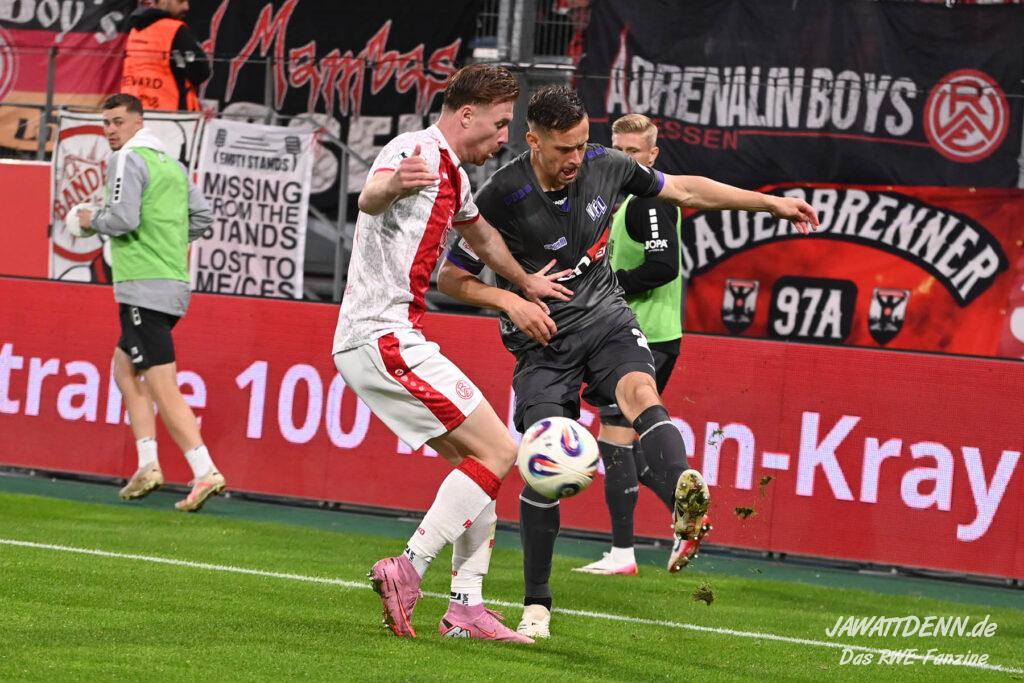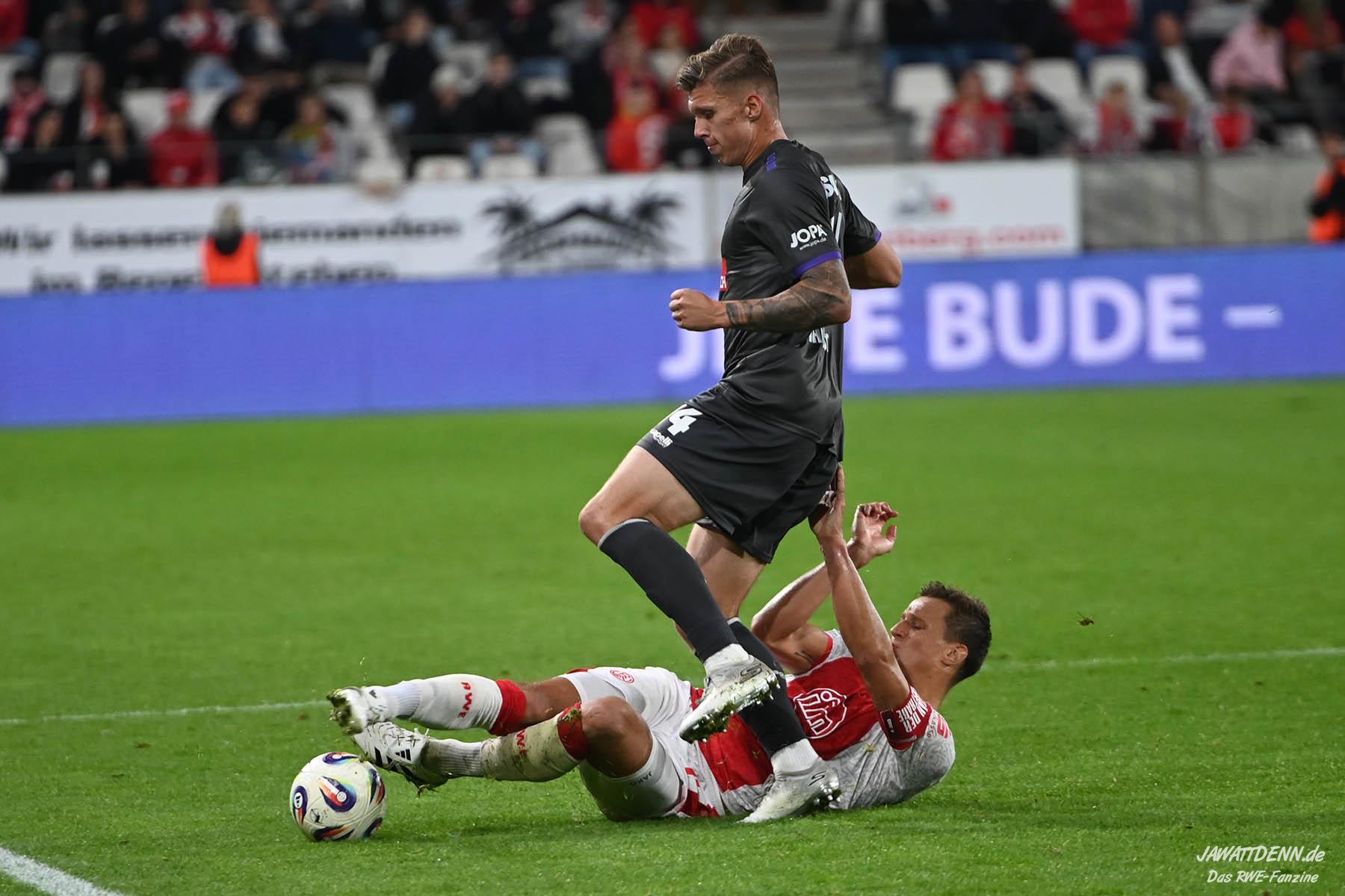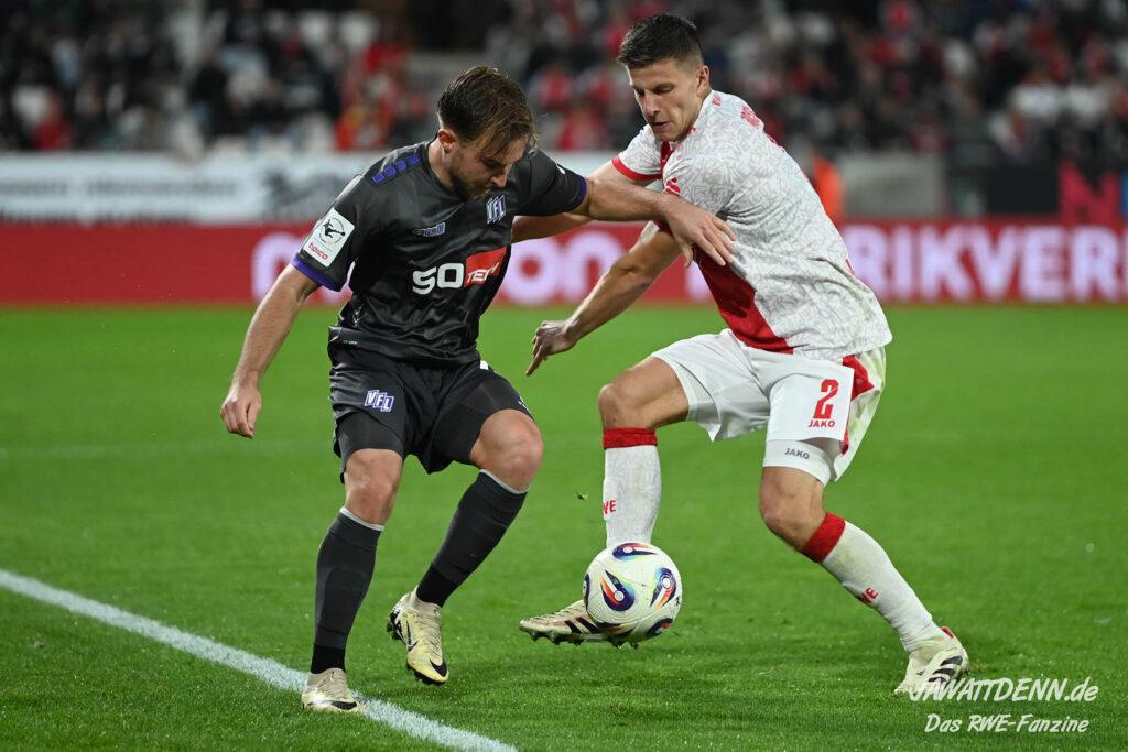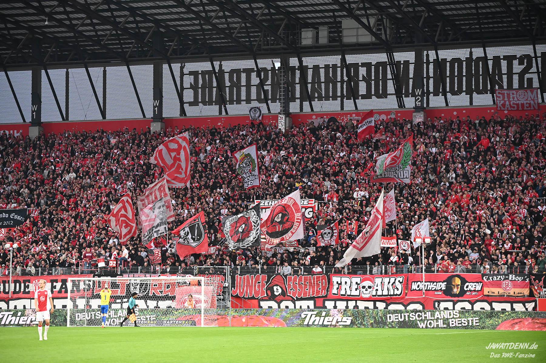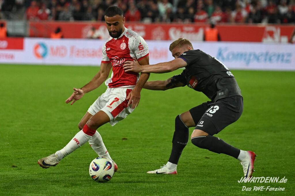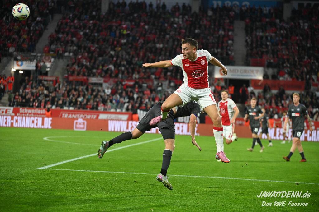 Alle kritischen Stimmen wären auch sicherlich verstummt, hätte RWE dieses Spiel mit einem eigenen Treffer gewonnen – doch obgleich der verursachte Elfmeter von Franci Bouebari sicherlich streitbar war, machte sich RWE erneut selbst das Leben schwer und brachte einen über weite Strecken offensiv abgemeldeten Gegner durch einen Elfmeter ins Spiel und sich selbst unter Druck. Vier verursachte Elfmeter in zwei Heimspielen sind rekordverdächtig und in den letzten fünf Pflichtspielen geriet RWE viermal in Rückstand. Im sechsten Saisonspiel gab es den zehnten Gegentreffer und in noch keinem Spiel behielt RWE die weiße Weste.