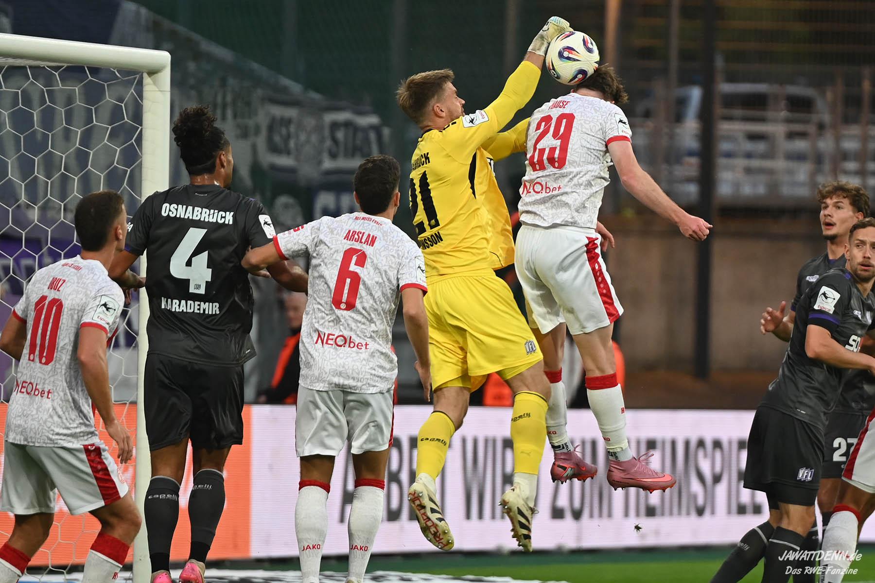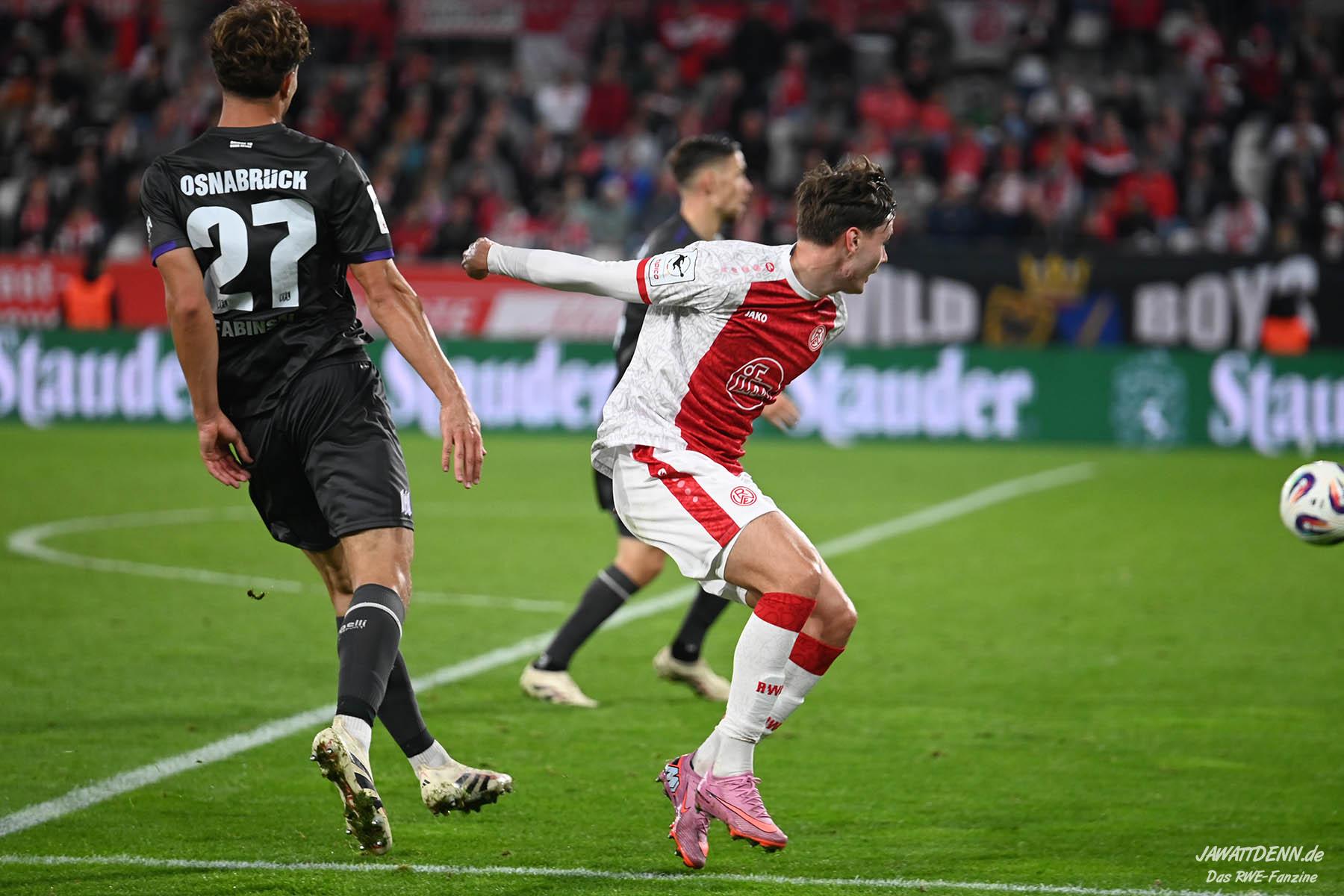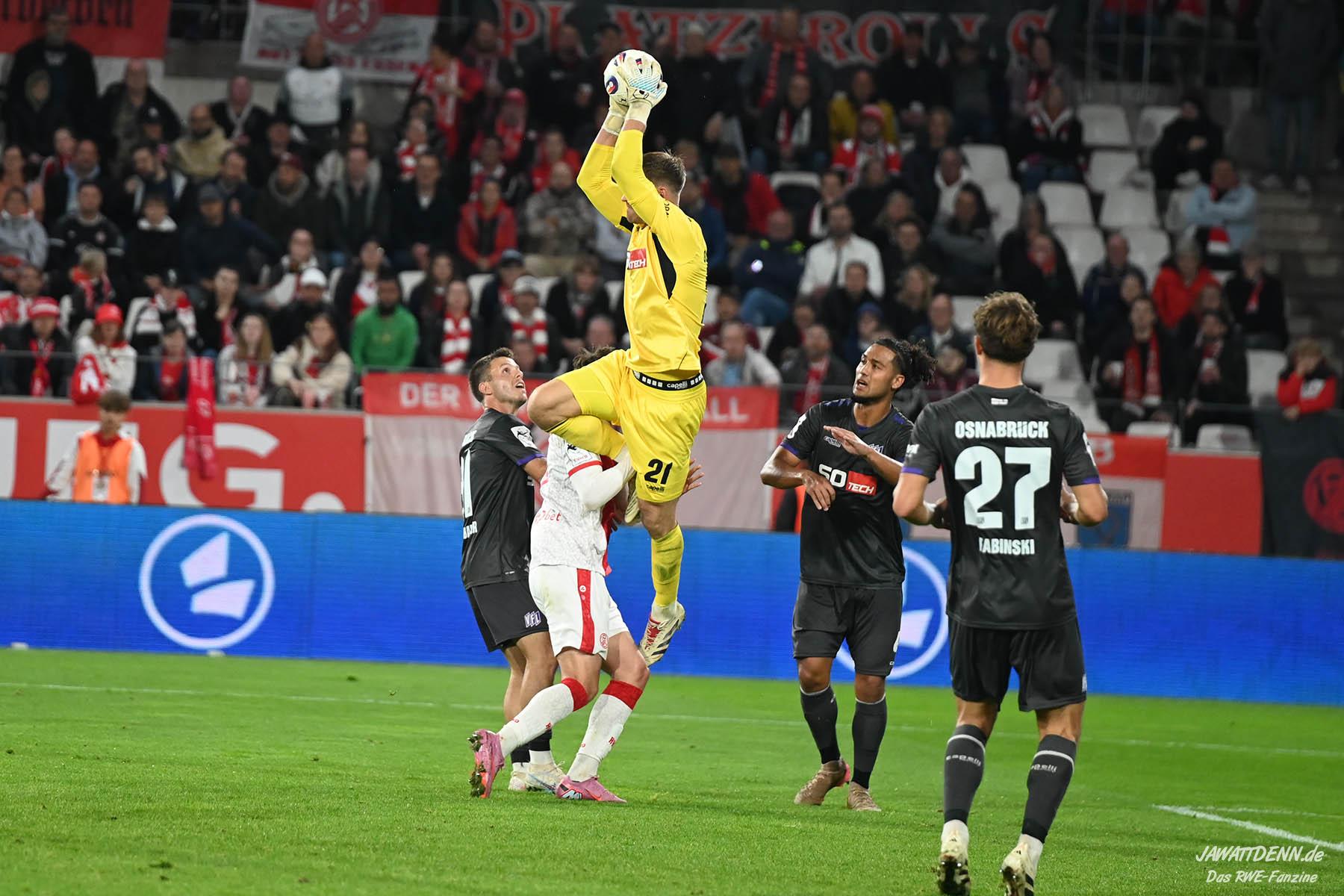 Auch im dritten Ligaheimspiel kann RWE keinen Dreier einfahren, zeigt sich jedoch defensiv stark verbessert und beweist nach Rückstand gegen den Osnabrücker Abwehrriegel eine tolle Moral.