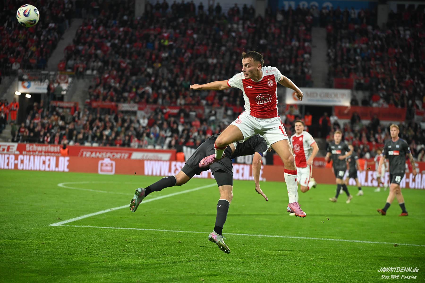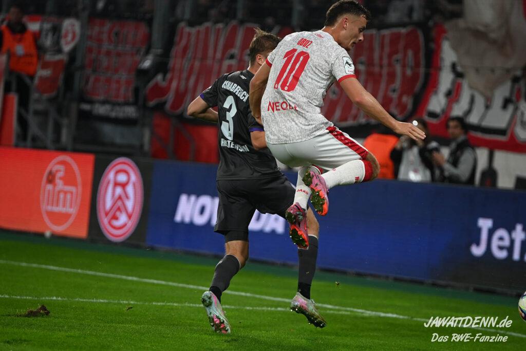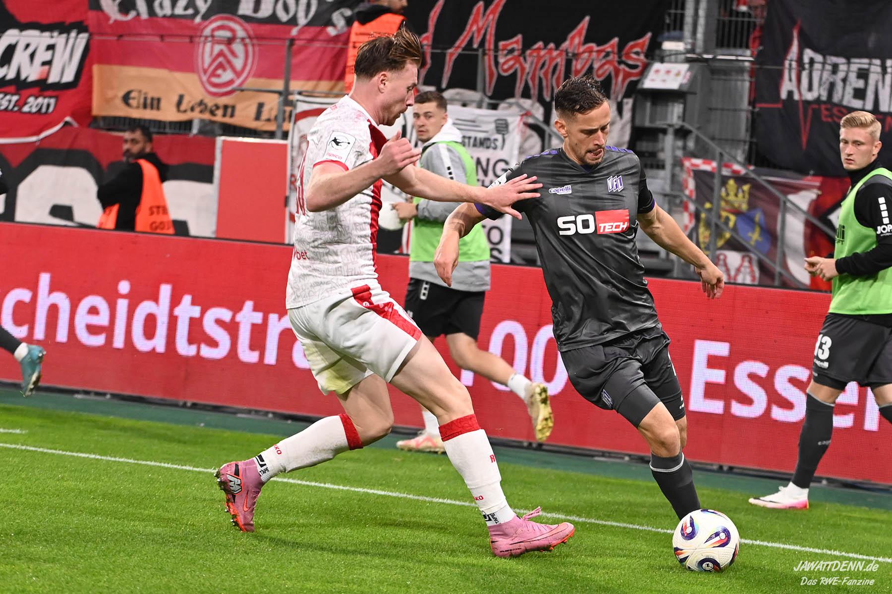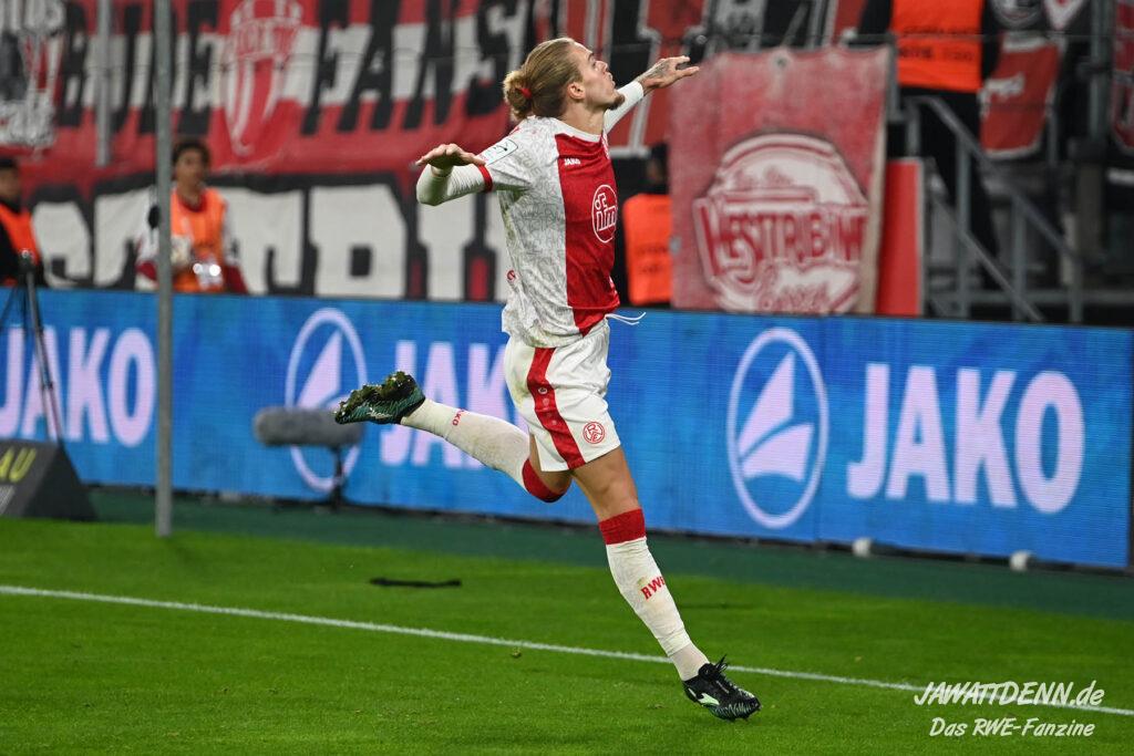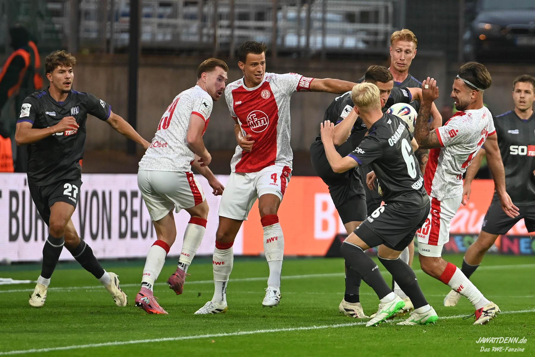 Das vierte Heimelfmetergegentor in Folge brachte RWE nur kurz auf die Verliererstraße, denn Tom Moustier antwortete zwei Minuten später, indem er eine verlängerte Ecke am langen Pfosten aufnahm und in die Maschen drosch – das zweite Saisontor für den Franzosen, der damit seine Vorjahresausbeute bereits verdoppeln konnte.