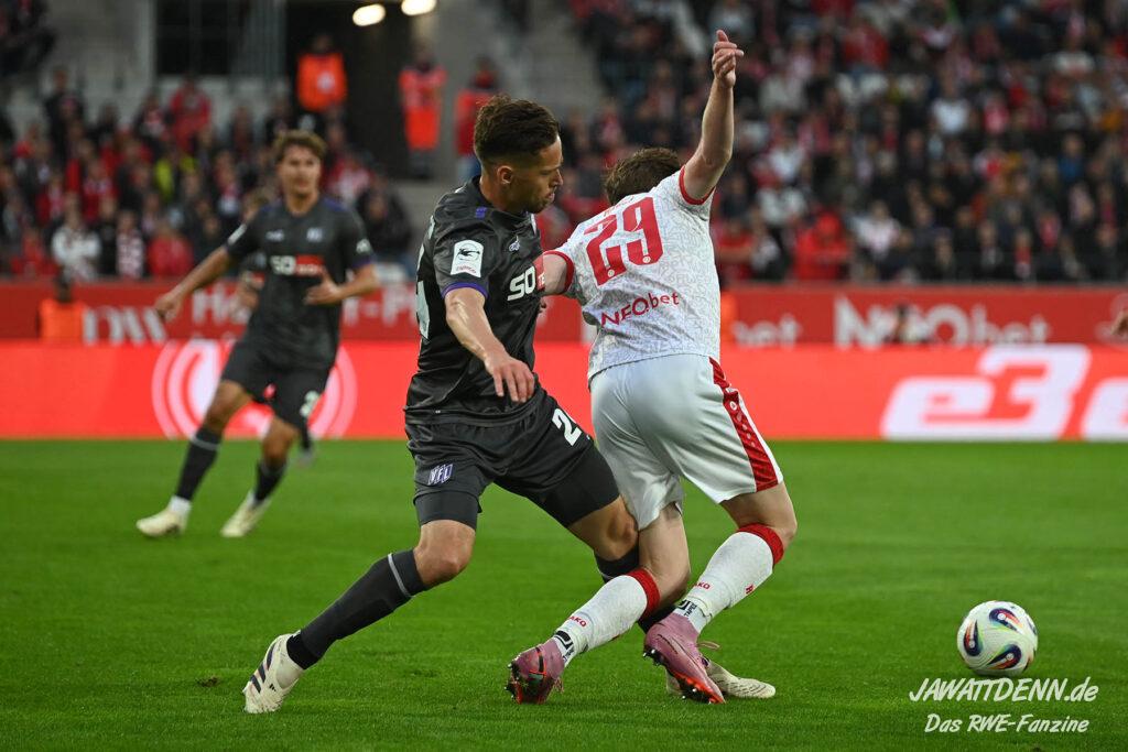 Es bleibt in Liga 3 mehr als eine Floskel, dass jeder jeden schlagen kann und genau das spiegelt sich auch Jahr für Jahr in der Tabelle wider. Für RWE heißt das, dass mit einem Sieg gegen Rostock wahrscheinlich von einem gelungenen Saisonstart gesprochen wird, während im Fall einer Niederlage der volle Krisenmodus eingeschaltet wird. Die Ausgangslage bei Gegner Hansa Rostock ist jedoch ganz ähnlich, sodass am Samstag eine Mannschaft an der Hafenstraße gastiert, die mit einem Unentschieden nicht zufrieden sein wird. Es wird daher Zeit für den ersten Heimsieg und das erste Spiel ohne Gegentor!