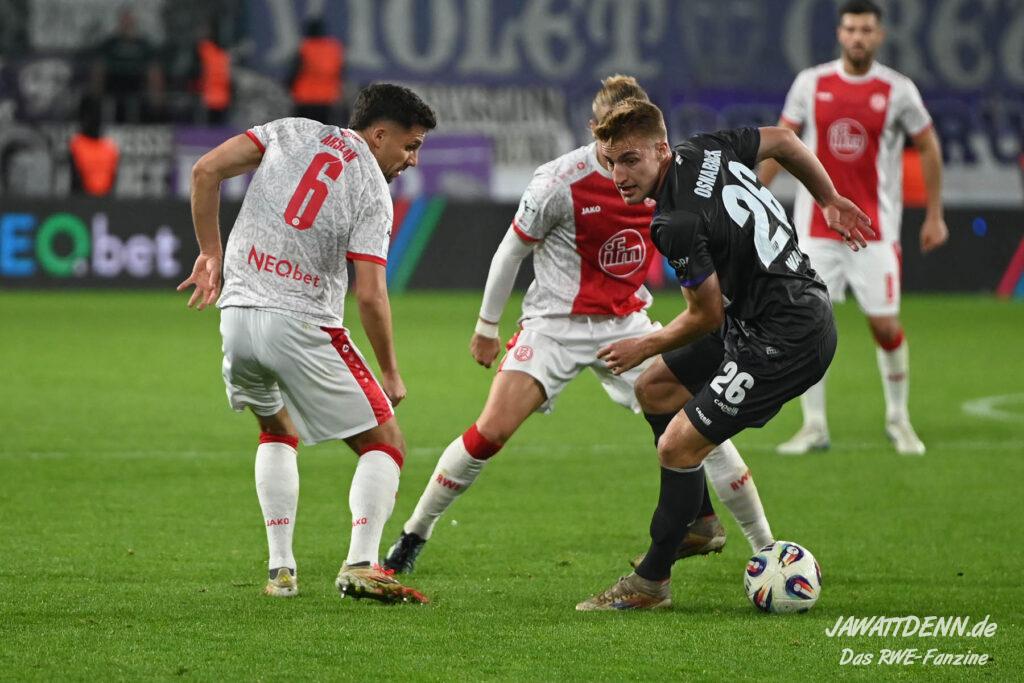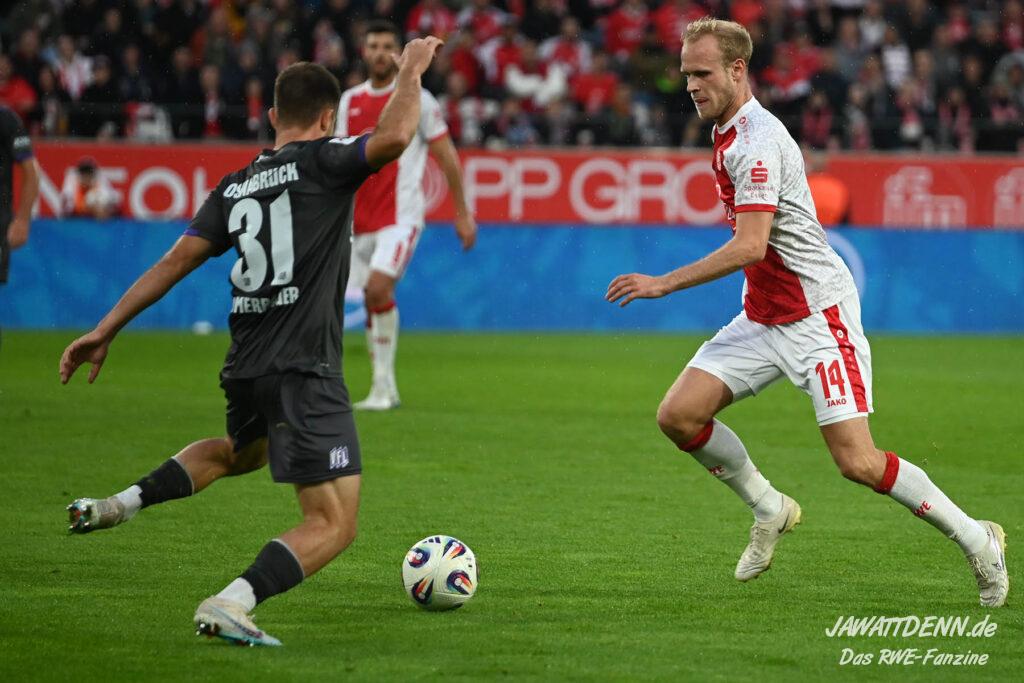 Der größte Pluspunkt trug die Rückennummer 8 und machte eines seiner besten Spiele im RWE-Trikot: Klaus Gjasula erstickte Osnabrücker Gefahr häufig schon im Ansatz und bereinigte viele Situationen, bevor es brenzlig werden konnte. Bezeichnend, dass RWE die Hälfte der bisherigen 10 Gegentore in den drei Halbzeiten kassierte, in denen der Sechser nicht auf dem Platz stand.