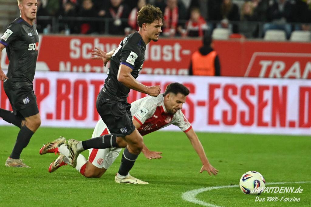 Die gesamte Essener Defensive zeigte sich gut organisiert und war im Vergleich zum letzten, desolaten Heimauftritt nicht mehr wiederzuerkennen. Osnabrücks Top-Zugänge Meißner und Pröger waren fast über die komplette Spielzeit abgemeldet. Rückkehrer Pröger machte nur durch einen Abschluss nach einer halben Stunde, bei dem er zu lange zögerte und von Brumme geblockt werden konnte, sowie ein Foul an Jakob Golz auf sich aufmerksam und wurde nach einer Stunde an seiner alten Wirkungsstätte ausgewechselt.