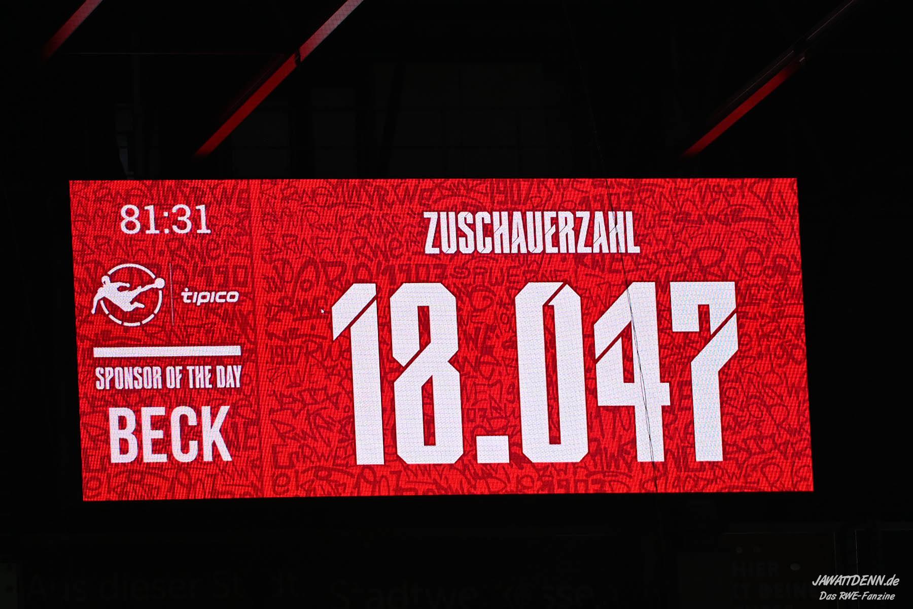 In der Schlussphase wollte kein Team dem Gegner ins offene Messer laufen, sodass sich in einem torchancenarmen Spiel wenige Höhepunkte entwickelten. Erst mit dem Schlusspfiff hätte ausgerechnet Torben Müsel wieder zum Last-Minute-Helden werden können, als er einen Kopfball knapp neben das Gehäuse setzte. RWE konnte die starke Osnabrücker Defensive zwar als erstes Team nach über fünf Stunden wieder überwinden, für einen weiteren Treffer reichte es gegen die im 5-4-1 sehr auf Sicherheit bedachten Gäste jedoch nicht.